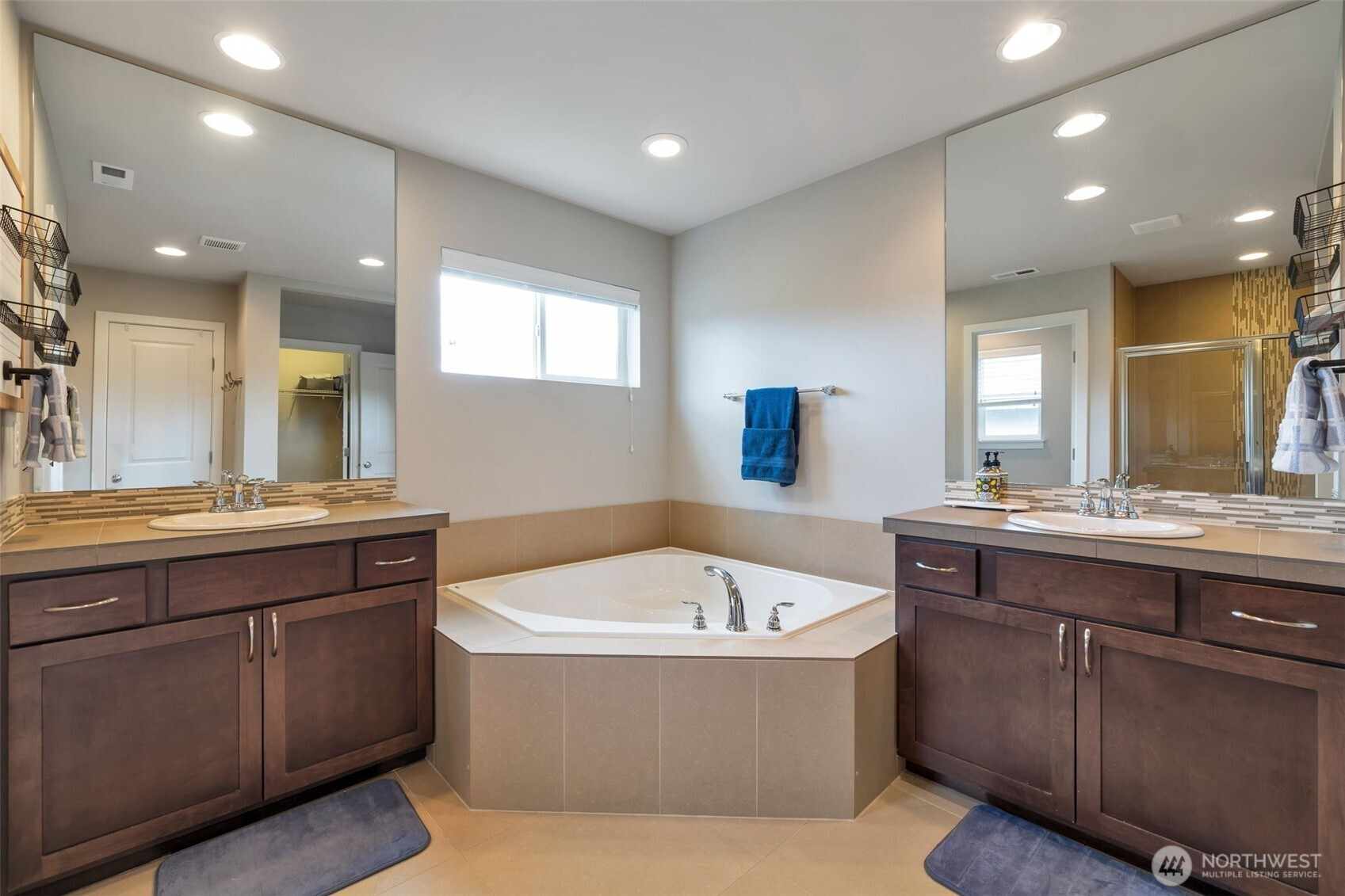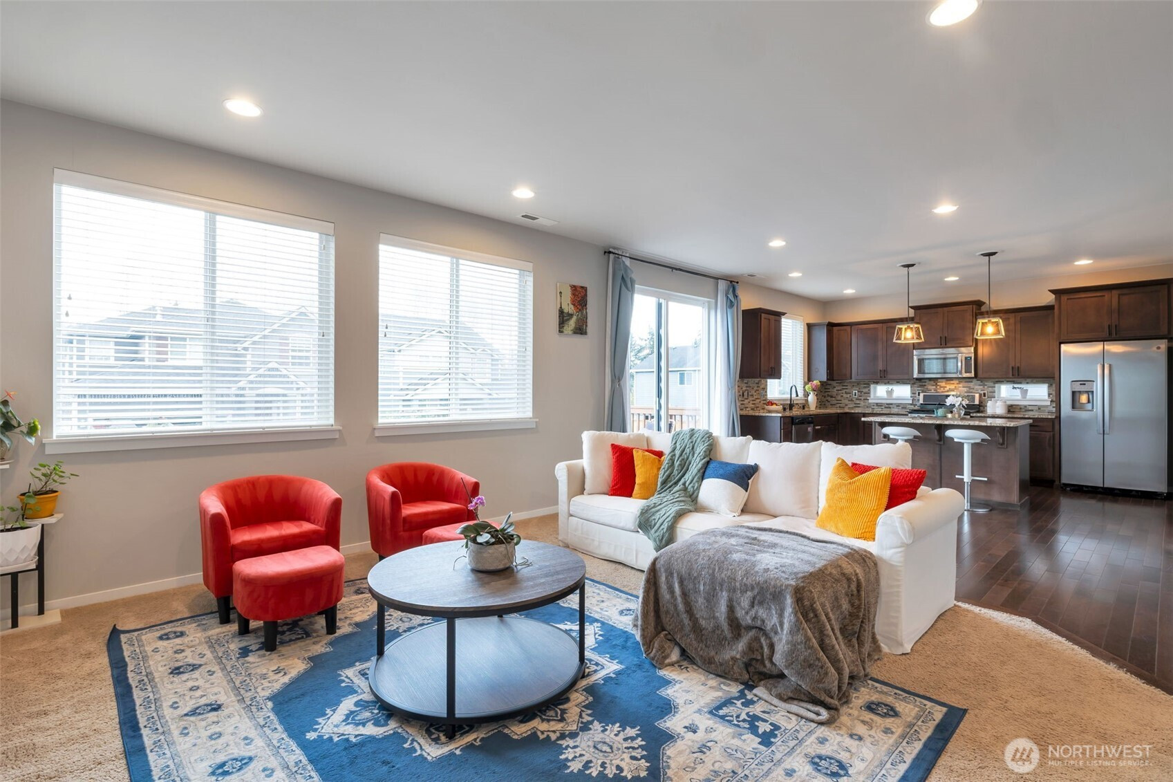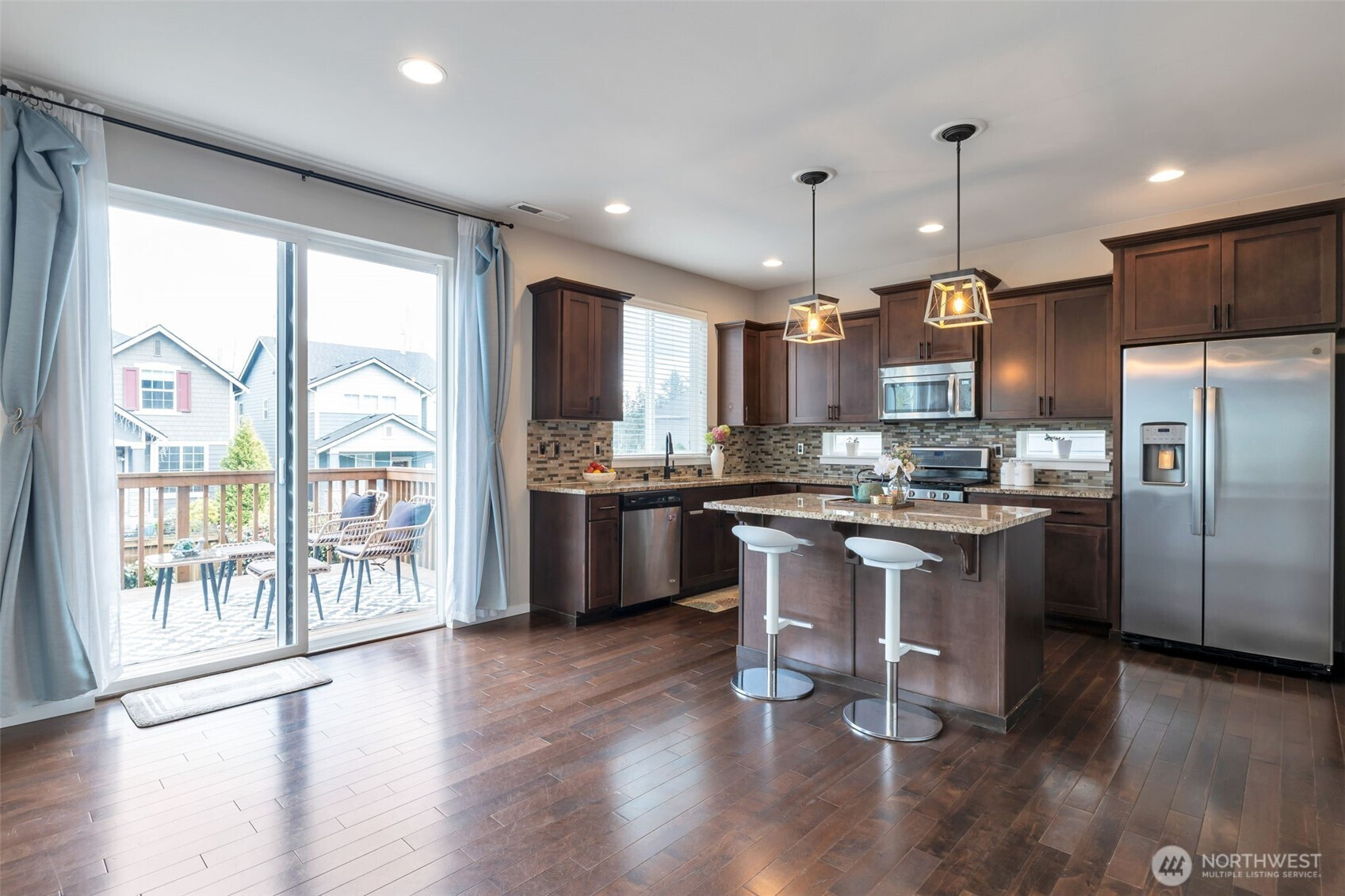 Nestled in a prime Bothell location near Mill Creek and Martha Lake, this beautifully upgraded Craftsman-style home offers a perfect blend of style, comfort, and functionality. Thoughtfully designed with a spacious and light-filled layout, the main level features an inviting family room, open-concept kitchen, dining area, and a versatile room with a full bath, ideal for guests, a home office, or multi-generational living. Designer finishes shine throughout, including custom built-ins, elegant paneled wall accents, a cozy gas fireplace, and rich hardwood flooring. The gourmet kitchen is a true centerpiece, showcasing premium stainless steel appliances, a walk-in pantry, and an expansive granite island perfect for both entertaining and everyday living.Upstairs, enjoy a generous bonus room or optional bedroom, along with three additional bedrooms & hall bathroom, including a tranquil primary suite complete with a sitting area, dual vanities, a soaking tub, a separate shower & walk-in-closet. Step outside to a spacious sun deck overlooking a fully finished backyard with a patio and room for a gazebo or garden, perfect for year-round enjoyment. Stay comfortable during warmer months with central A/C. Ideally located just minutes from Mill Creek Town Center, shopping, dining, and with easy access to I-5 and I-405. Situated within highly rated schools, this home truly has it all. Home is pre inspected for peace of mind.