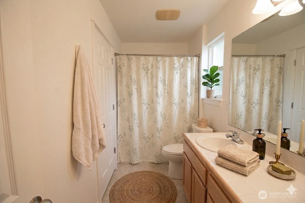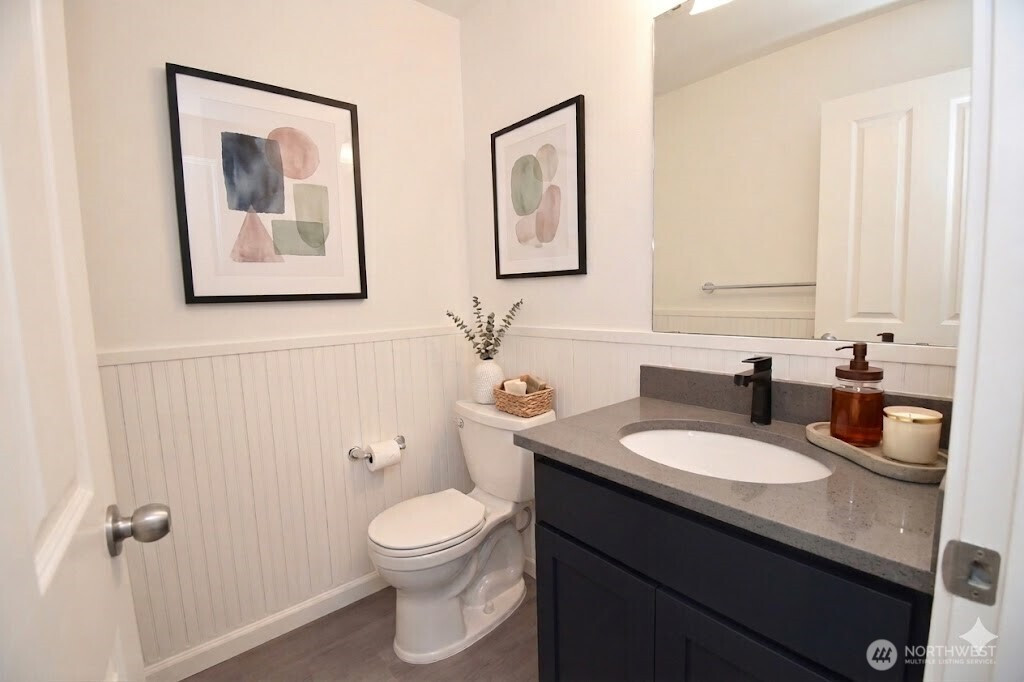 {Beautiful Mill Creek (End Unit) Town Home!} This refreshed townhome is turn key. new interior paint, new carpet, new garage door & more. Offering a shy 1700 sf, this 3 bedroom, 2.5 bath is a must see. Main floor is open concept featuring the kitchen, dining area & a cozy living room w/fireplace. Nice sized private deck off of the dining area. Bedroom & full bath on lower level offers flexibility for roommate, guest privacy, office space or other; garage entry allows private entrance to lower level. Primary bedroom w/ensuite & walk in closet on upper level, as well as a nicely sized guest room. Ideally located near the heart of Mill Creek w/easy access to I-5, shops, restaurants, medical & more. Attached 2 car garage & level driveway.