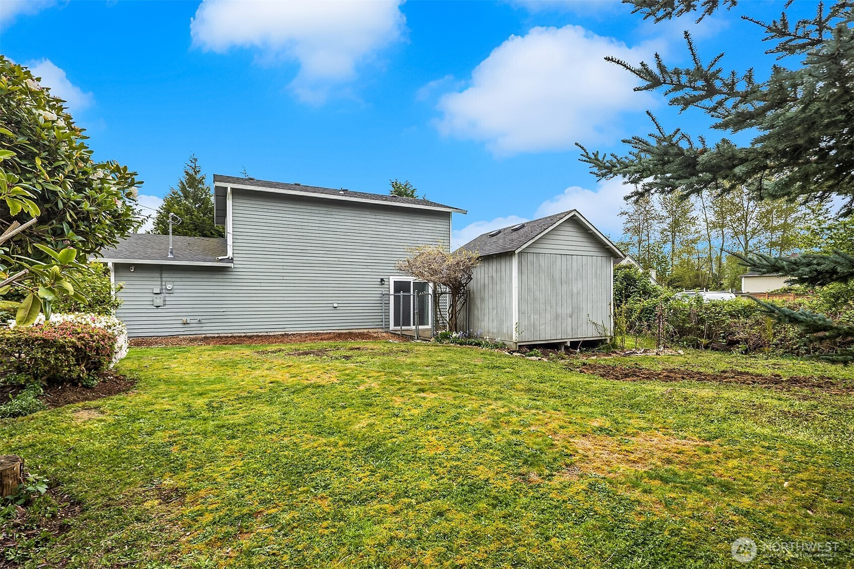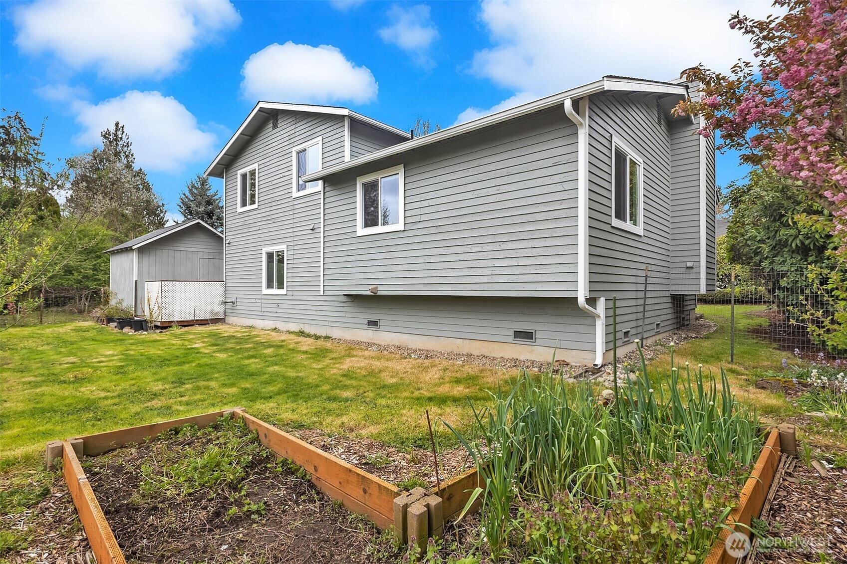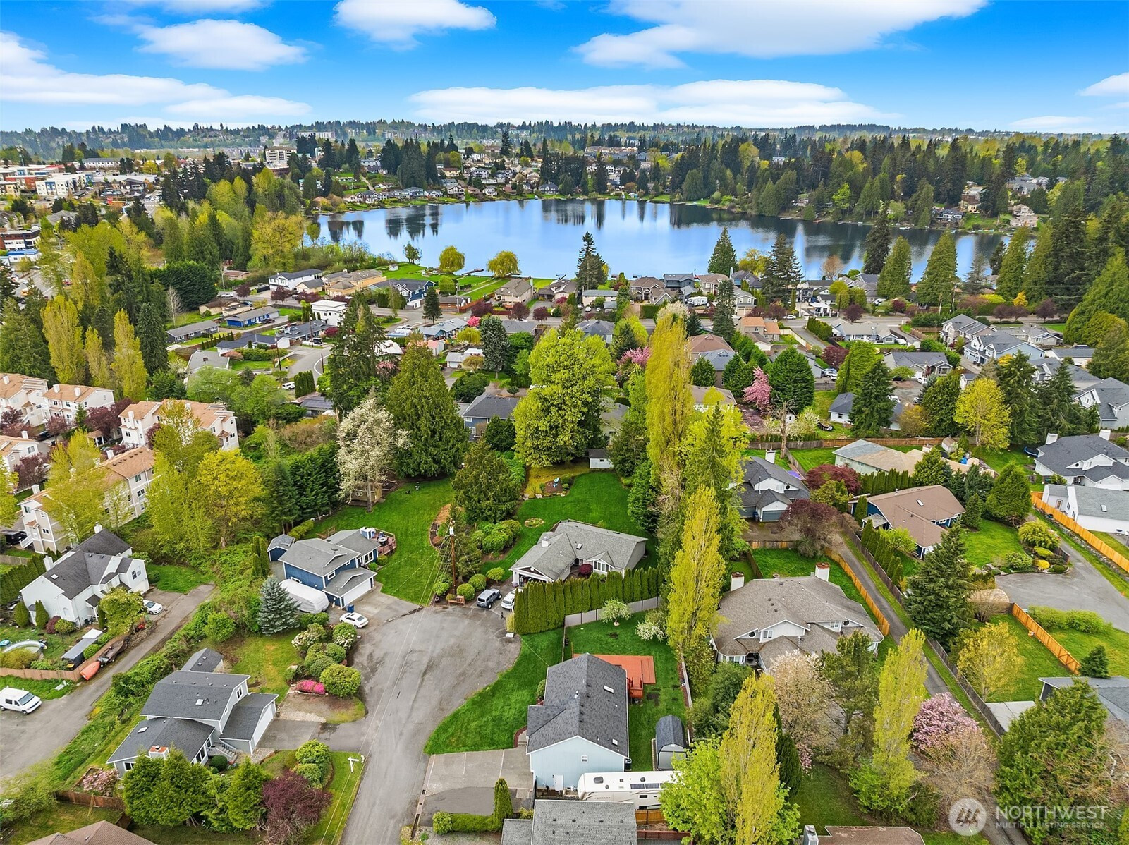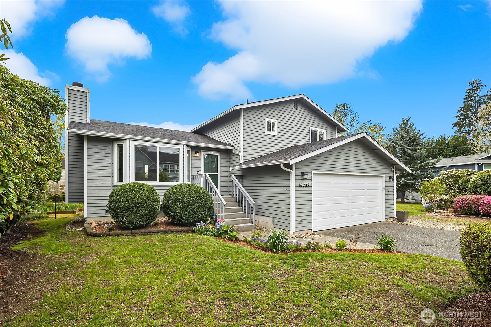 Tucked on a quiet cul-de-sac in Martha Lake, this 3-bed tri-level sits on a sprawling, nearly 14,000 sq ft lot. Vaulted ceilings and a bay window fill the living room with natural light, anchored by a classic wood-burning fireplace with brick surround. The open living and dining areas create an easy, connected flow, while the kitchen—complete with a skylight—overlooks the backyard for a bright, everyday backdrop. All bedrooms are upstairs for added privacy, including a comfortable primary suite with its own full bath. The lower-level rec room offers a warm, inviting retreat with a pellet stove and seamless access to the deck, ideal for indoor-outdoor living. Recent updates include a new garage door and motor (2023), Pella windows and patio door (2023), fresh exterior paint (2025), and a sump pump installed in 2026. Additional features include a 2-car garage and garden shed. Conveniently located near Mill Creek Town Center and Alderwood Mall, with quick access to I-5 and I-405, and within the Edmonds School District.