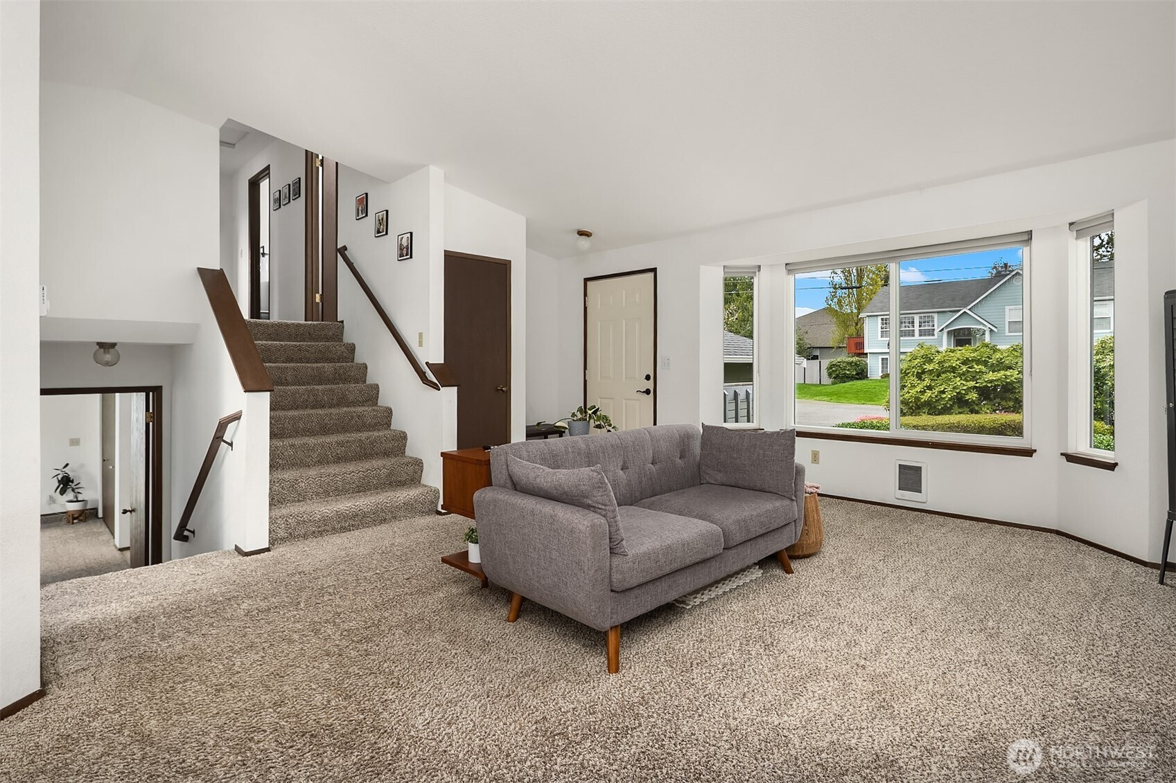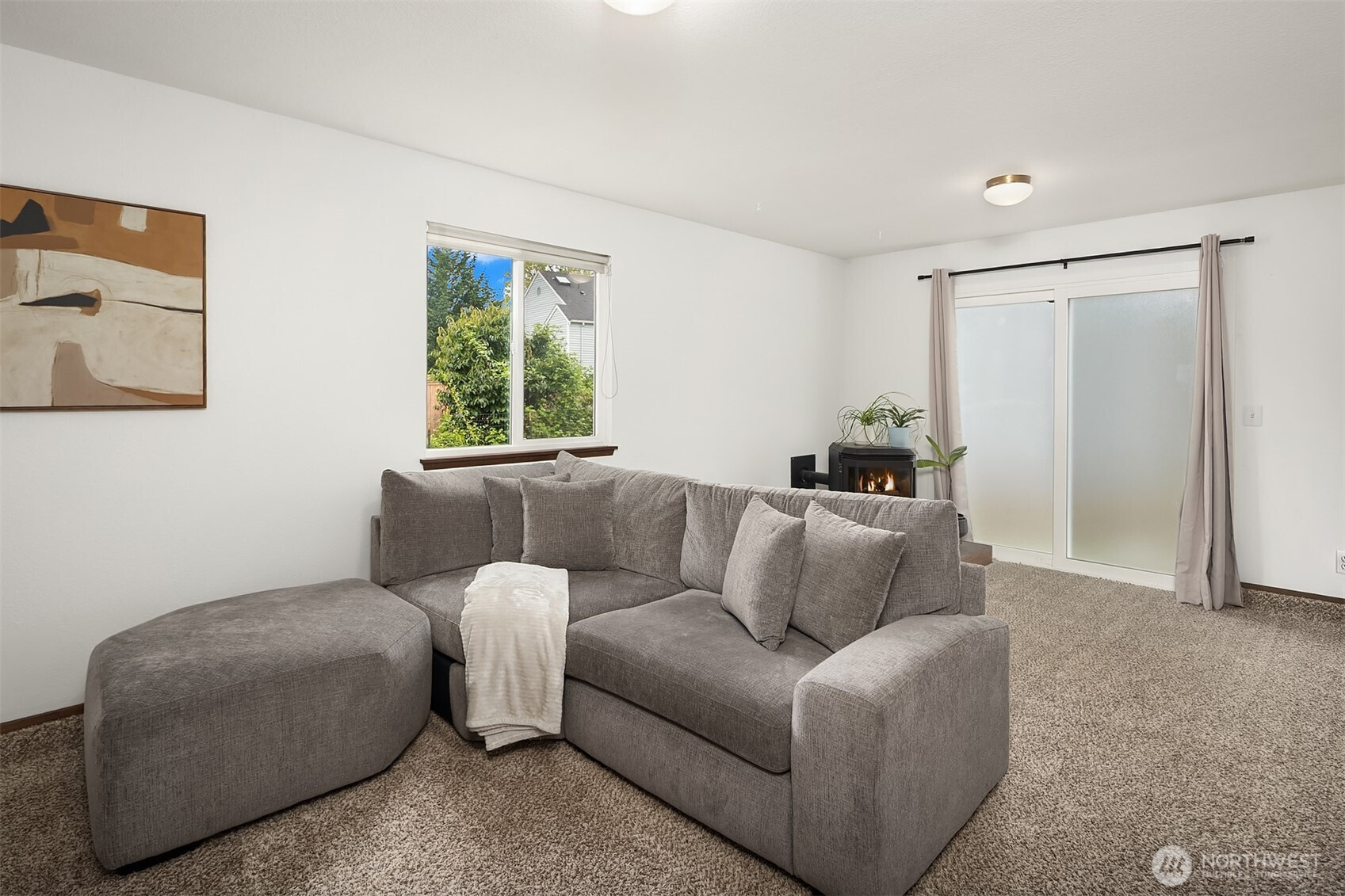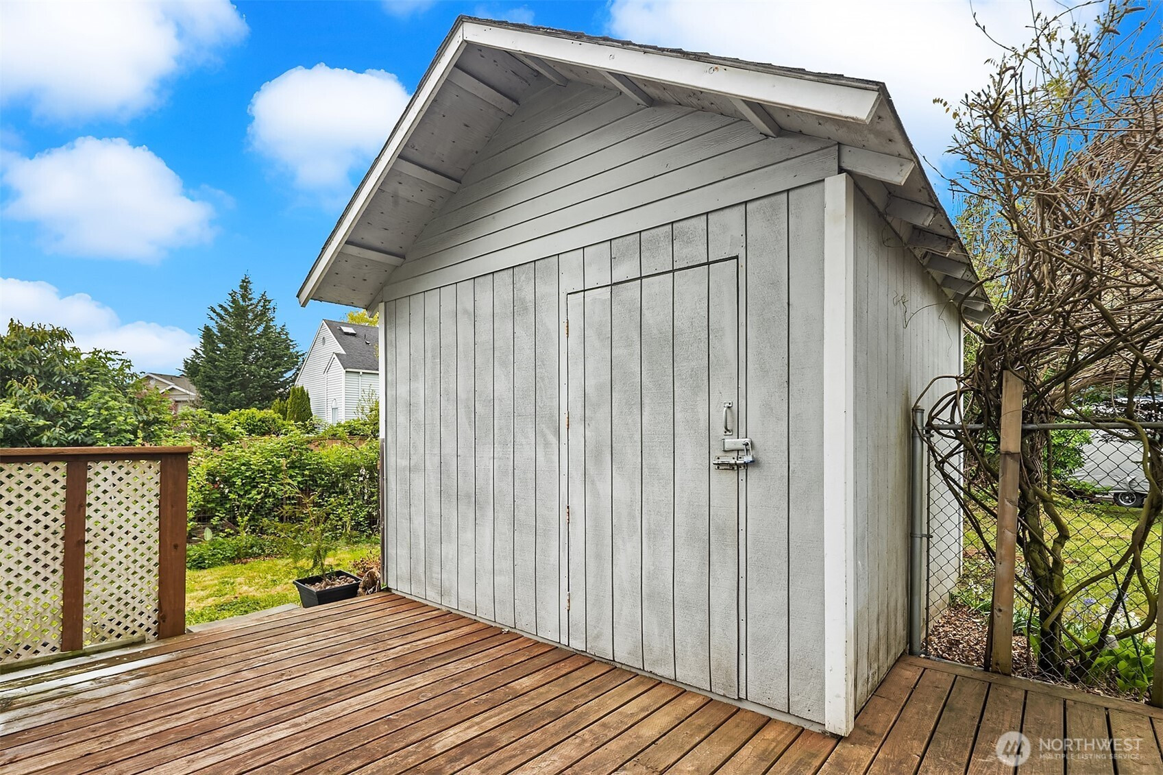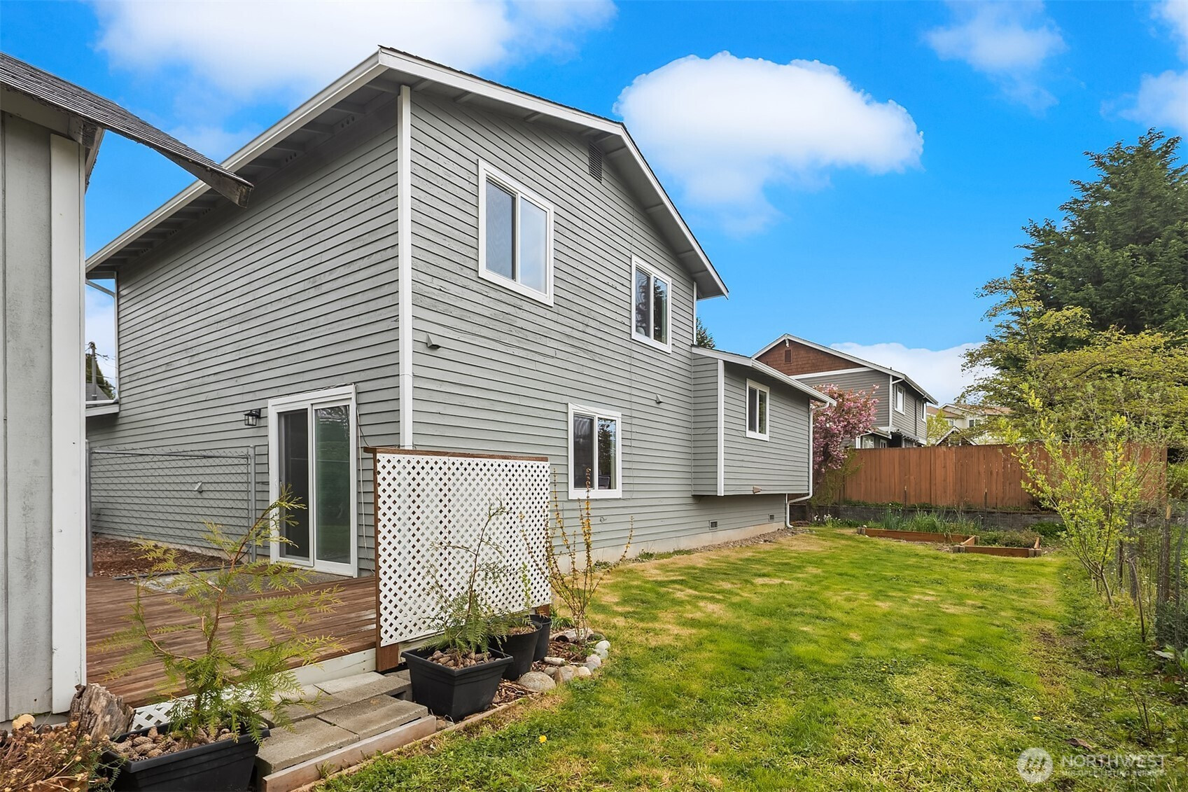 Tucked on a quiet cul-de-sac in Martha Lake, this 3-bed tri-level sits on a sprawling, nearly 14,000 sq ft lot. Vaulted ceilings and a bay window fill the living room with natural light, anchored by a classic wood-burning fireplace with brick surround. The open living and dining areas create an easy, connected flow, while the kitchen—complete with a skylight—overlooks the backyard for a bright, everyday backdrop. All bedrooms are upstairs for added privacy, including a comfortable primary suite with its own full bath. The lower-level rec room offers a warm, inviting retreat with a pellet stove and seamless access to the deck, ideal for indoor-outdoor living. Recent updates include a new garage door and motor (2023), Pella windows and patio door (2023), fresh exterior paint (2025), and a sump pump installed in 2026. Additional features include a 2-car garage and garden shed. Conveniently located near Mill Creek Town Center and Alderwood Mall, with quick access to I-5 and I-405, and within the Edmonds School District.