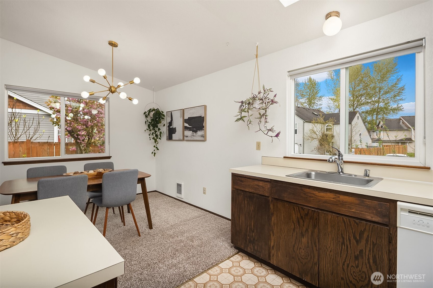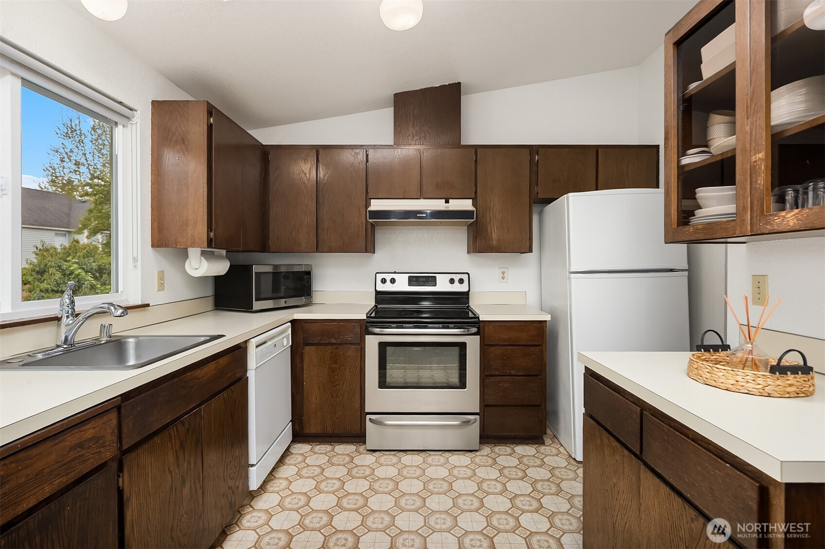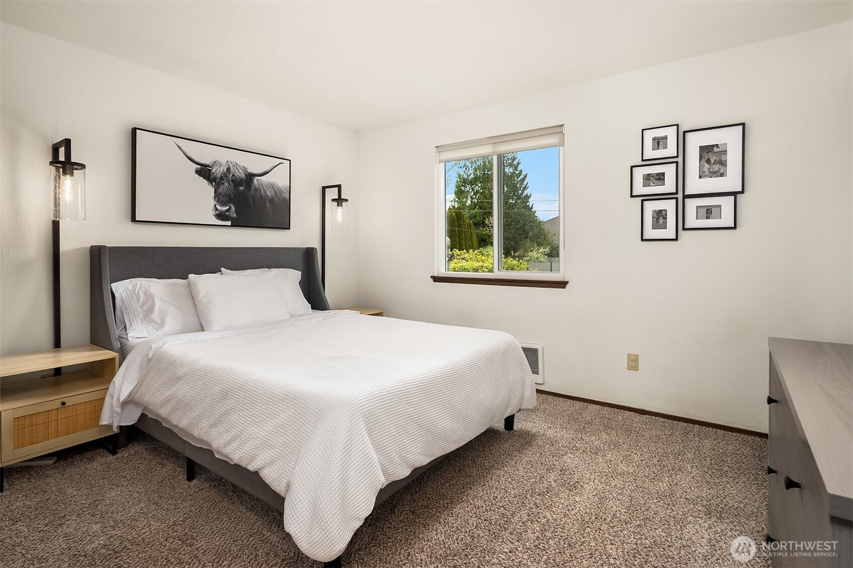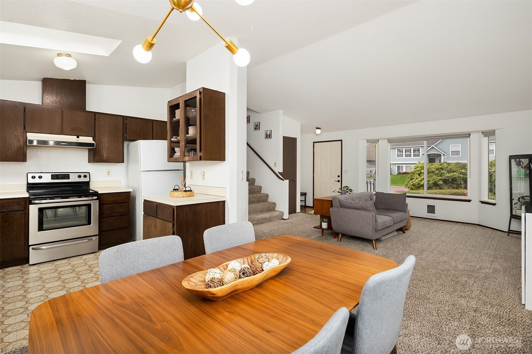Tucked on a quiet cul-de-sac in Martha Lake, this 3-bed tri-level sits on a sprawling, nearly 14,000 sq ft lot. Vaulted ceilings and a bay window fill the living room with natural light, anchored by a classic wood-burning fireplace with brick surround. The open living and dining areas create an easy, connected flow, while the kitchen—complete with a skylight—overlooks the backyard for a bright, everyday backdrop. All bedrooms are upstairs for added privacy, including a comfortable primary suite with its own full bath. The lower-level rec room offers a warm, inviting retreat with a pellet stove and seamless access to the deck, ideal for indoor-outdoor living. Recent updates include a new garage door and motor (2023), Pella windows and patio door (2023), fresh exterior paint (2025), and a sump pump installed in 2026. Additional features include a 2-car garage and garden shed. Conveniently located near Mill Creek Town Center and Alderwood Mall, with quick access to I-5 and I-405, and within the Edmonds School District.
