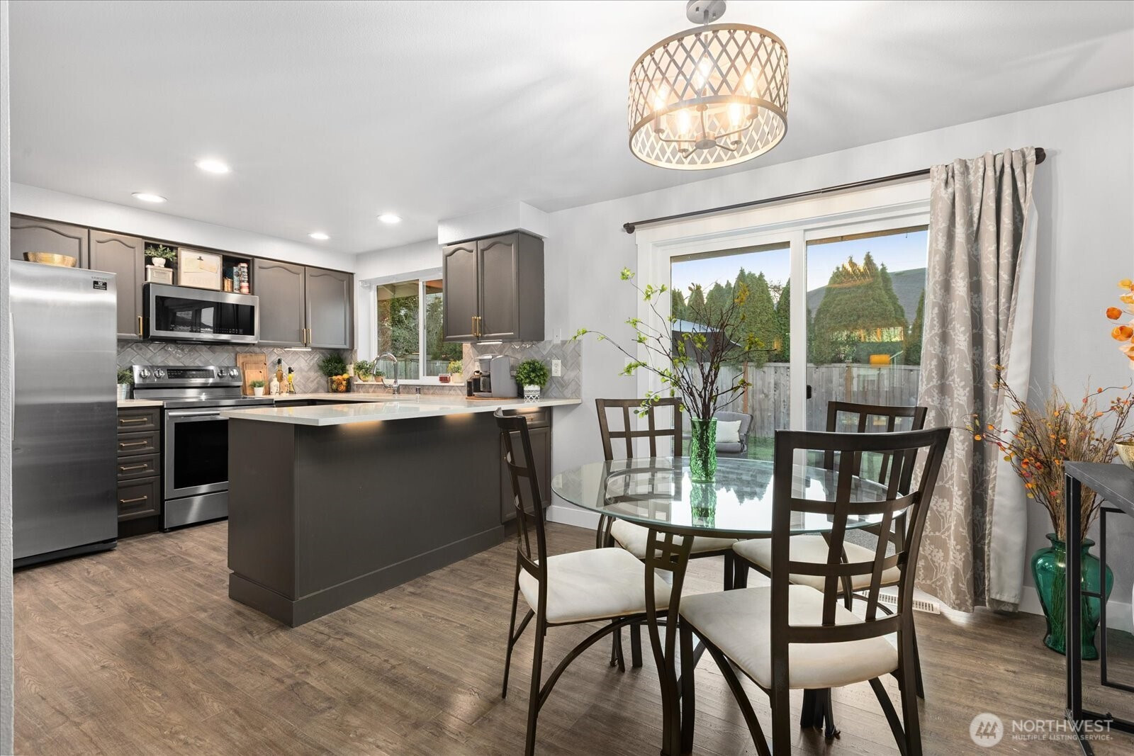 Stunning, extensively updated Lake Stevens rambler showcasing thoughtful upgrades and high-end finishes throughout. This 3-bedroom, 2-bath home offers a highly desirable single-level, open-concept layout ideal for comfortable everyday living and effortless entertaining. The chef-inspired kitchen features quartz countertops, updated cabinets in designer colors, tile backsplash, and stainless steel appliances, flowing seamlessly into the main living areas. Newer flooring, refreshed interior and exterior paint, updated doors and trim, rocker light switches, and stylish modern light fixtures create a cohesive, move-in-ready feel. The spacious primary suite includes a private en-suite bath and walk-in closet, offering a relaxing retreat. Recent major improvements include new windows and a sliding door, a new garage door, and fresh landscaping. A pre-inspection has already been completed, providing buyers added confidence and peace of mind. Step outside to enjoy a fully fenced, west-facing backyard that captures afternoon and evening sun, along with an extended patio ideal for entertaining, dining, or unwinding. The expanded driveway provides ample parking for multiple vehicles, a boat, or small RV. Ideally located near parks, walking trails, shopping, and everyday conveniences, and served by highly regarded Lake Stevens schools, this beautifully maintained rambler blends style, function, and location into one exceptional opportunity. There will be an open house over the weekend