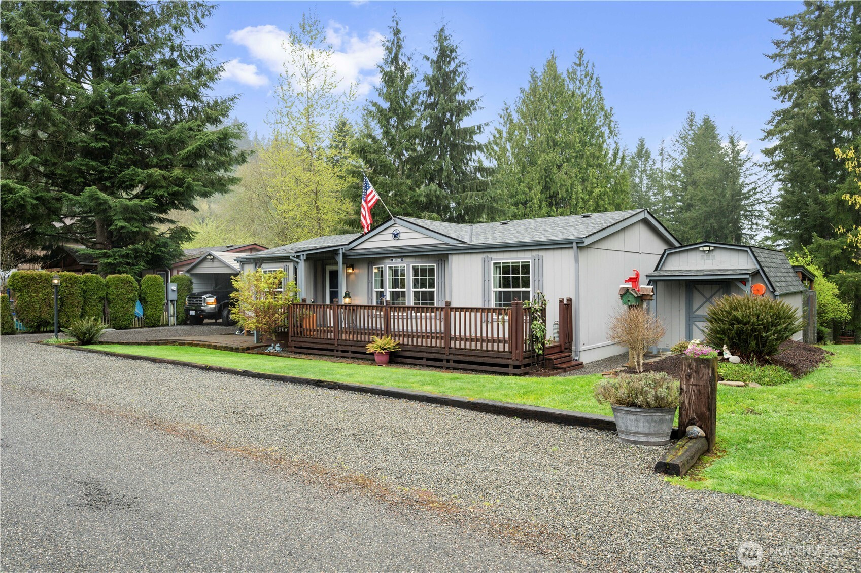 Charming home nestled in the sought-after Jordan River Trails community, just minutes from the Stillaguamish River and scenic trails. This 3 bed, 1.75 bath home sits on a spacious .24-acre lot with room to relax or entertain. Primary bedroom with ensuite bath and walk in closet plus two additional bedrooms and shared full bath. Recent updates include a new exterior paint job plus a new roof. Upgraded bath with tile shower, and custom water feature. Additional highlights include RV parking, a large shed, and a lower parking area that can be accessed by separate entrance. Recreational lot next door. Enjoy the Community pool right behind the house. Quiet setting with easy access to nature, fishing, and outdoor living. Welcome home!