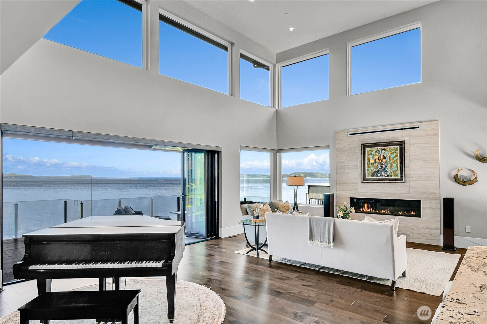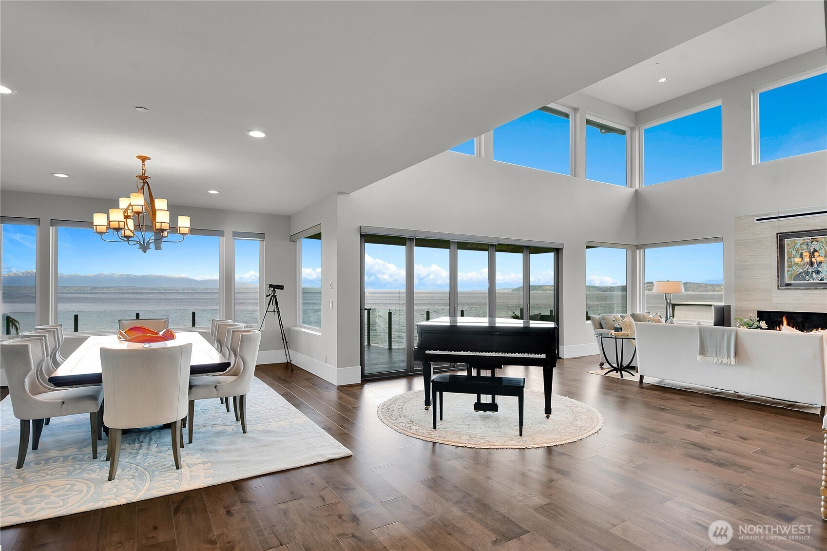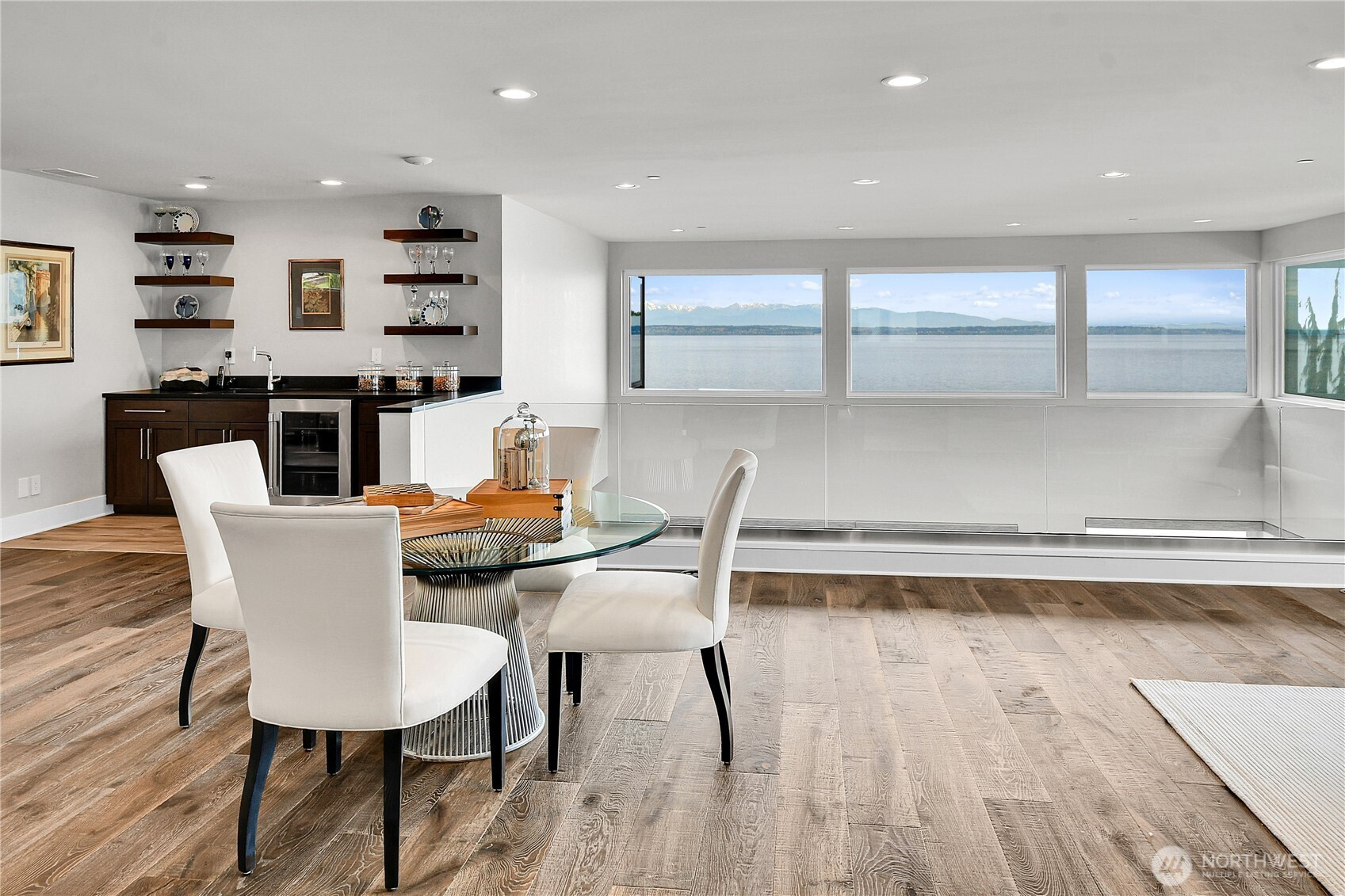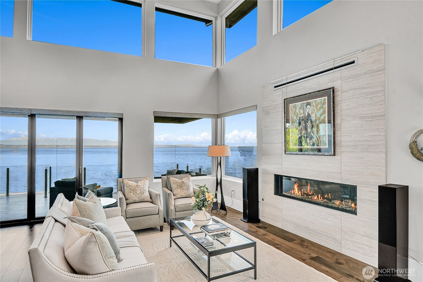 Set behind gates along the shores of Puget Sound, this architecturally refined waterfront estate delivers a front row seat to one of the Pacific Northwest’s most captivating panoramas—Olympic Mountain sunsets, island silhouettes, passing vessels, and the rhythmic presence of marine life below. Custom built in 2018, the 8,100+ sq ft residence is a study in precision and restraint, where curated materials, bespoke millwork, and designer lighting create a timeless yet contemporary aesthetic. Expansive walls of glass dissolve the boundary between indoors and out, framing the scenery as living art. The home balances grand scale with refined livability, every space is designed to impress—yet feels effortlessly inviting. Five sumptuous bedrooms, (primary on each floor) 4.5 spa inspired baths, epicurean kitchen, an entertainers dream of grand scale spaces flooded with Western light, media room, flex space for music/game/Zoom, wine cellar, workout space, personal sauna, two laundry rooms, a gated motor court, and four car garage complete this rare offering—an exceptional expression of luxury waterfront living in one of Edmonds’ most coveted enclaves known as Meadowdale Beach.