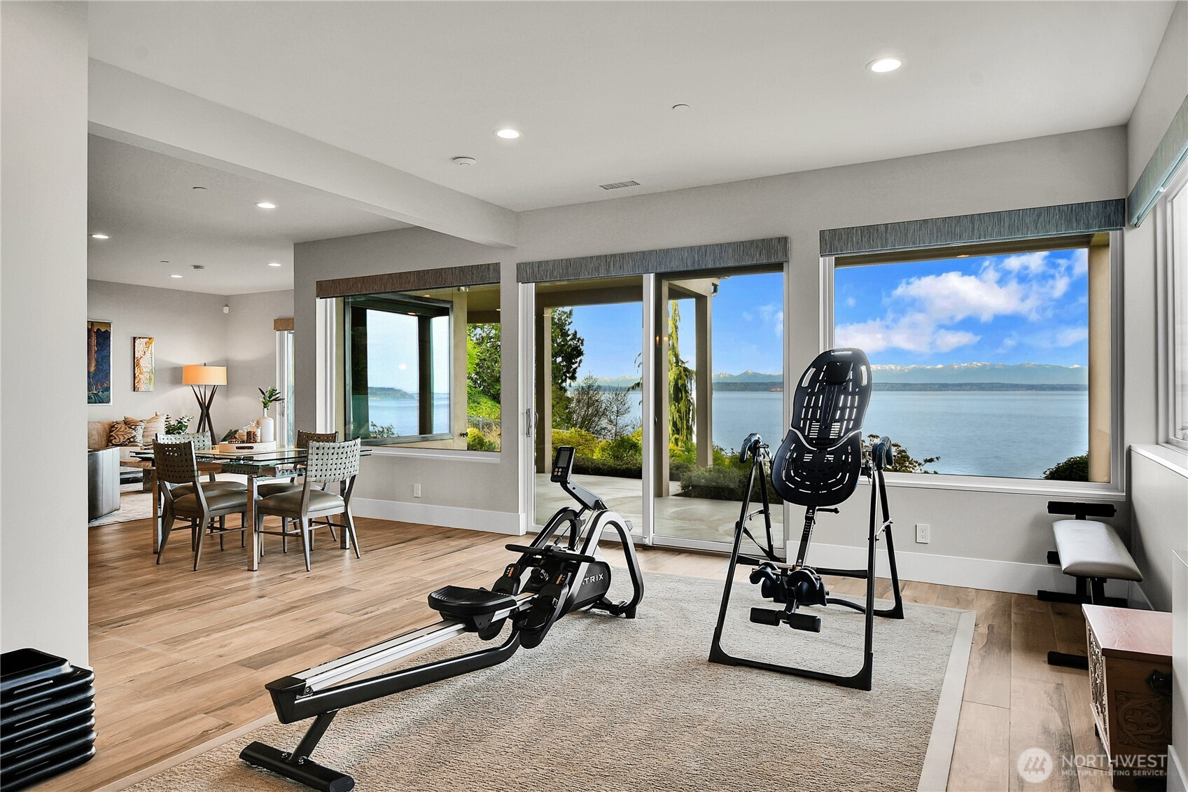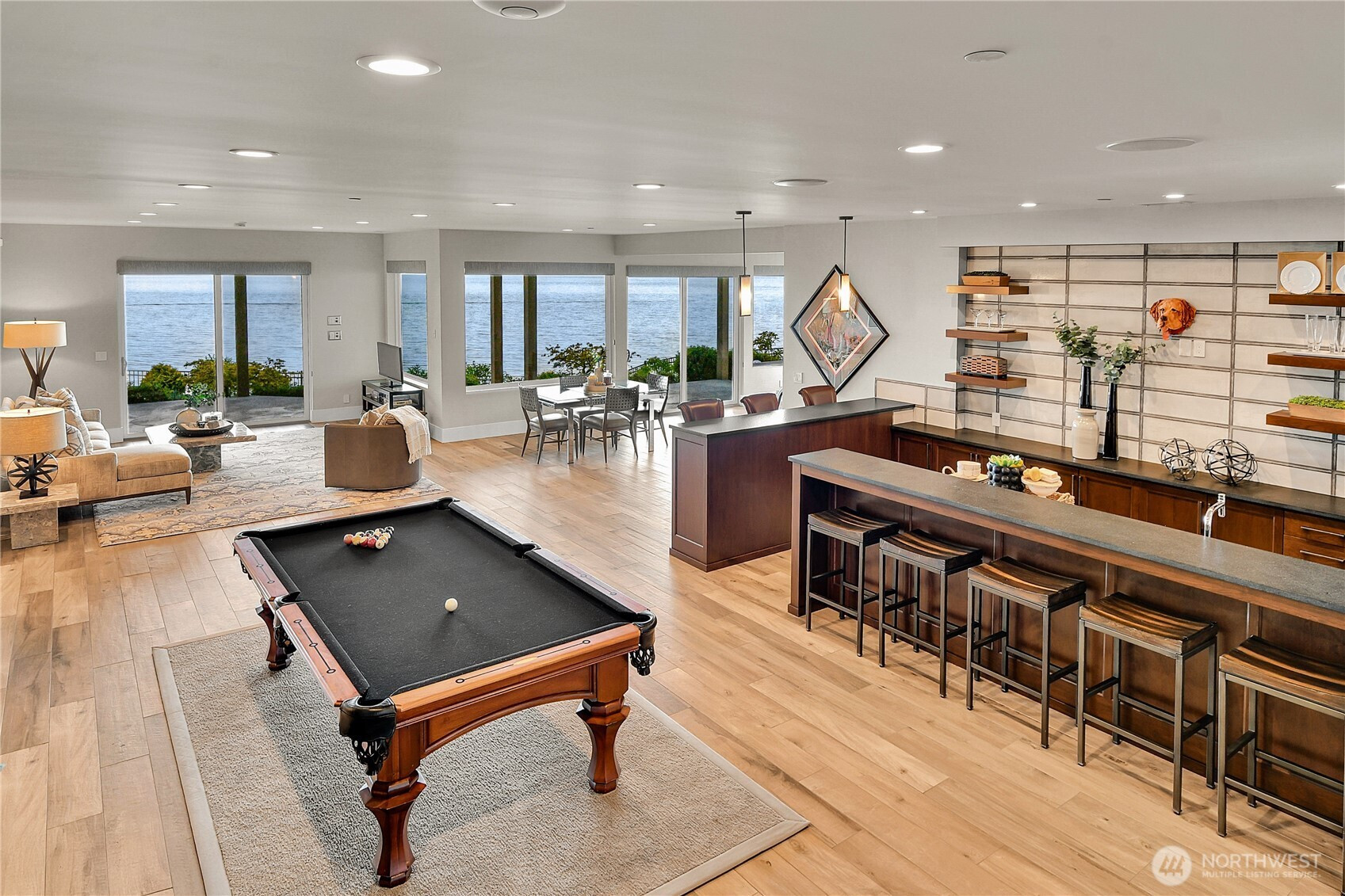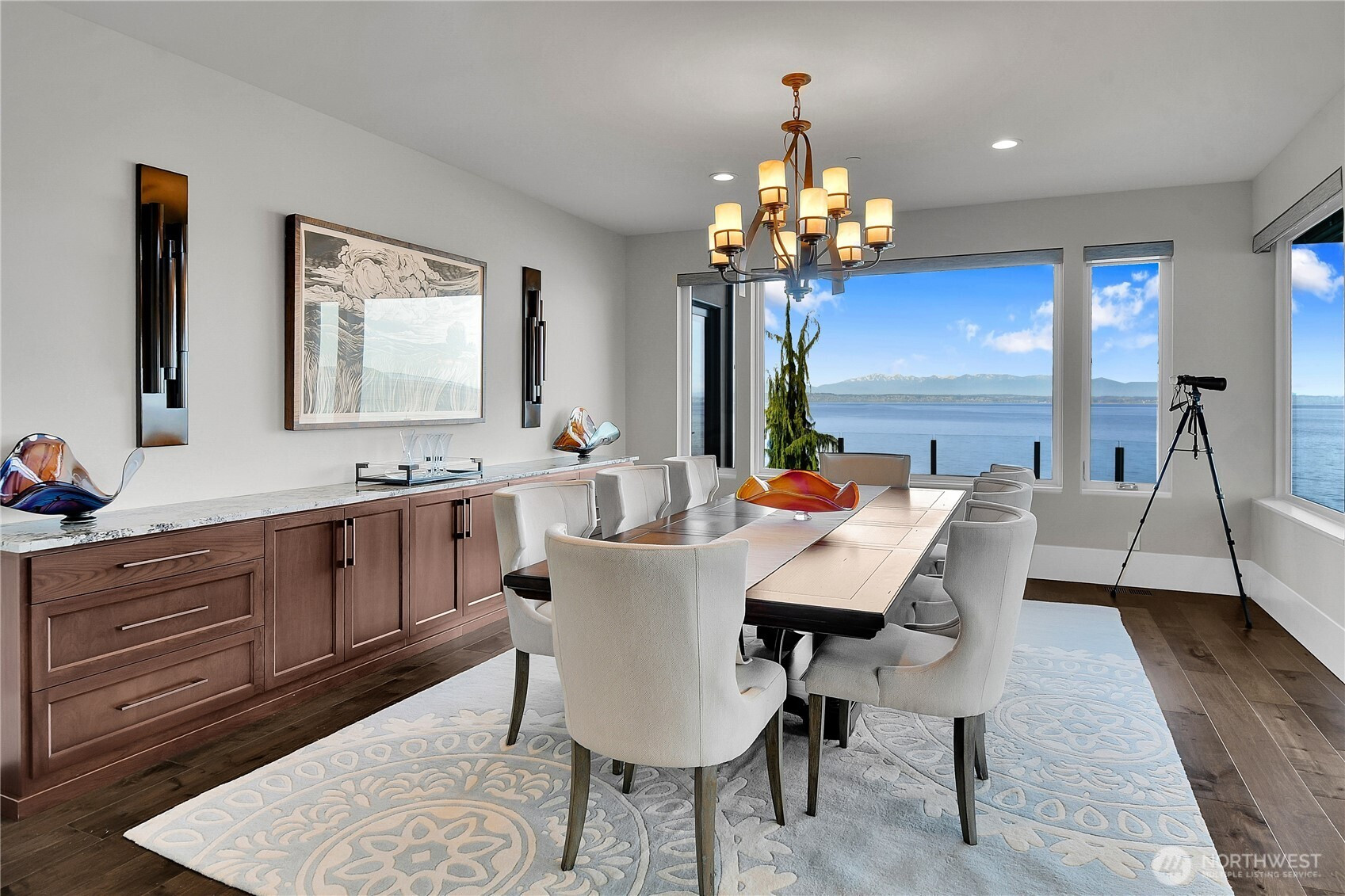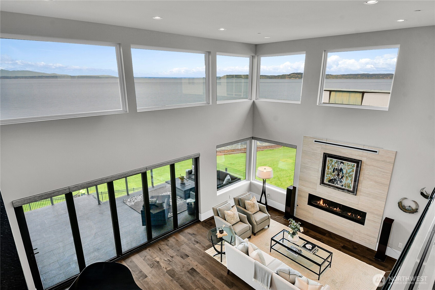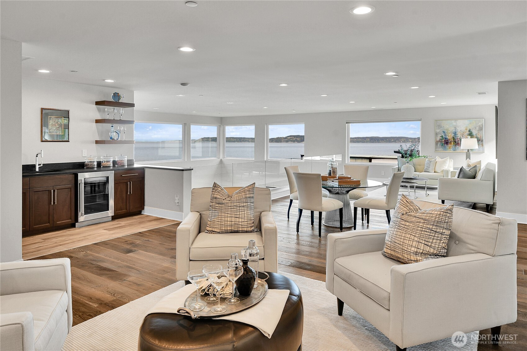 Set behind gates along the shores of Puget Sound, this architecturally refined waterfront estate delivers a front row seat to one of the Pacific Northwest’s most captivating panoramas—Olympic Mountain sunsets, island silhouettes, passing vessels, and the rhythmic presence of marine life below. Custom built in 2018, the 8,100+ sq ft residence is a study in precision and restraint, where curated materials, bespoke millwork, and designer lighting create a timeless yet contemporary aesthetic. Expansive walls of glass dissolve the boundary between indoors and out, framing the scenery as living art. The home balances grand scale with refined livability, every space is designed to impress—yet feels effortlessly inviting. Five sumptuous bedrooms, (primary on each floor) 4.5 spa inspired baths, epicurean kitchen, an entertainers dream of grand scale spaces flooded with Western light, media room, flex space for music/game/Zoom, wine cellar, workout space, personal sauna, two laundry rooms, a gated motor court, and four car garage complete this rare offering—an exceptional expression of luxury waterfront living in one of Edmonds’ most coveted enclaves known as Meadowdale Beach.