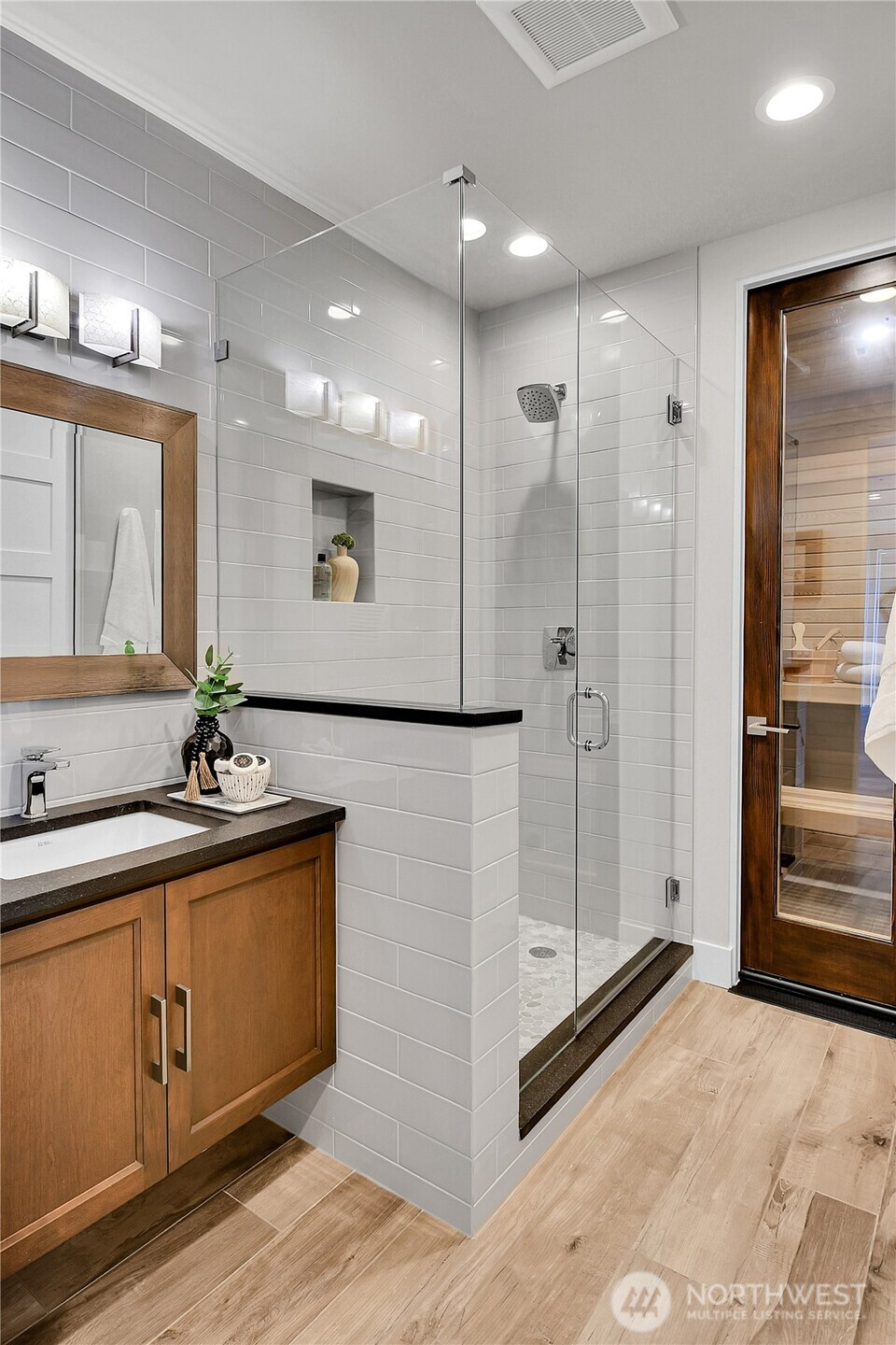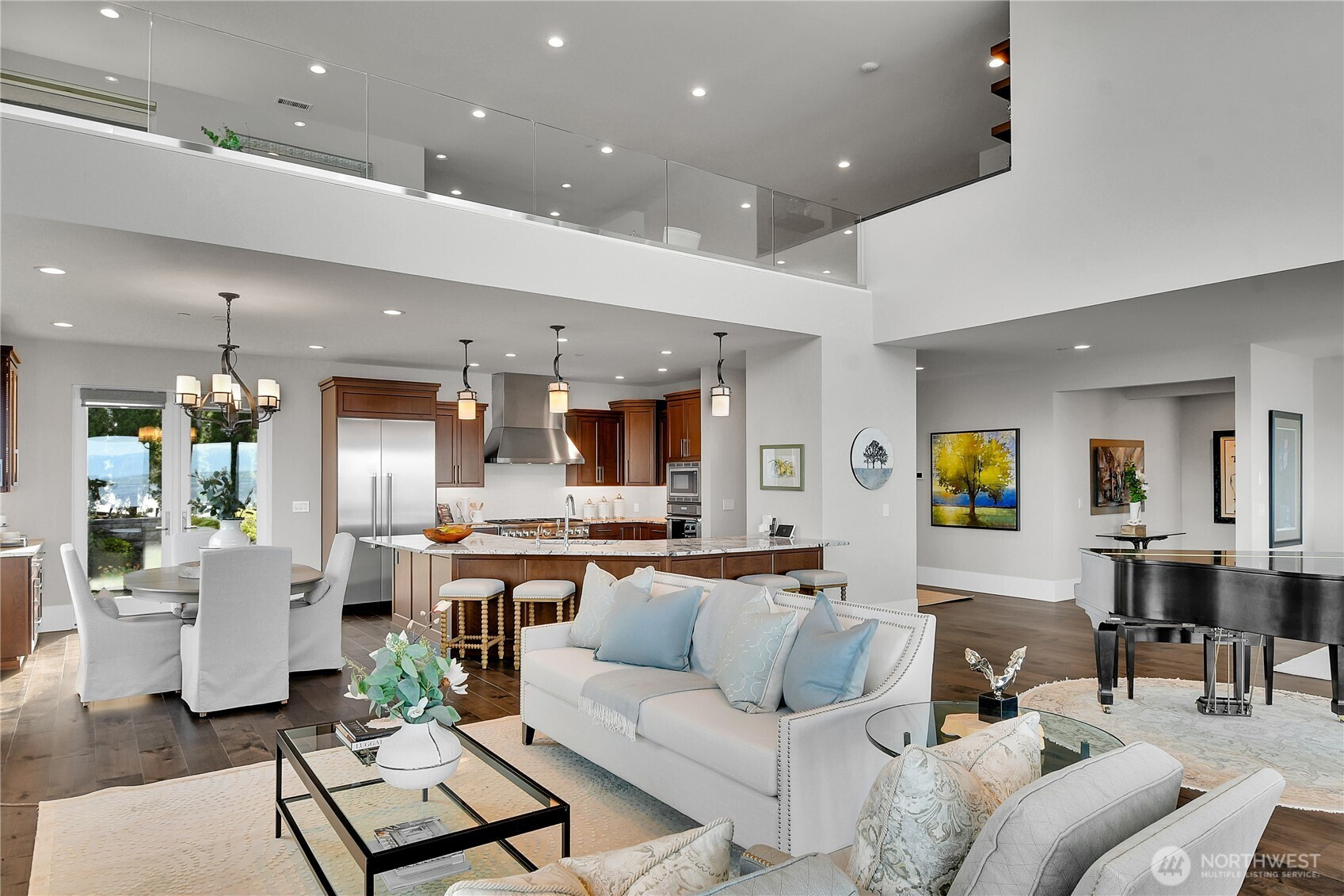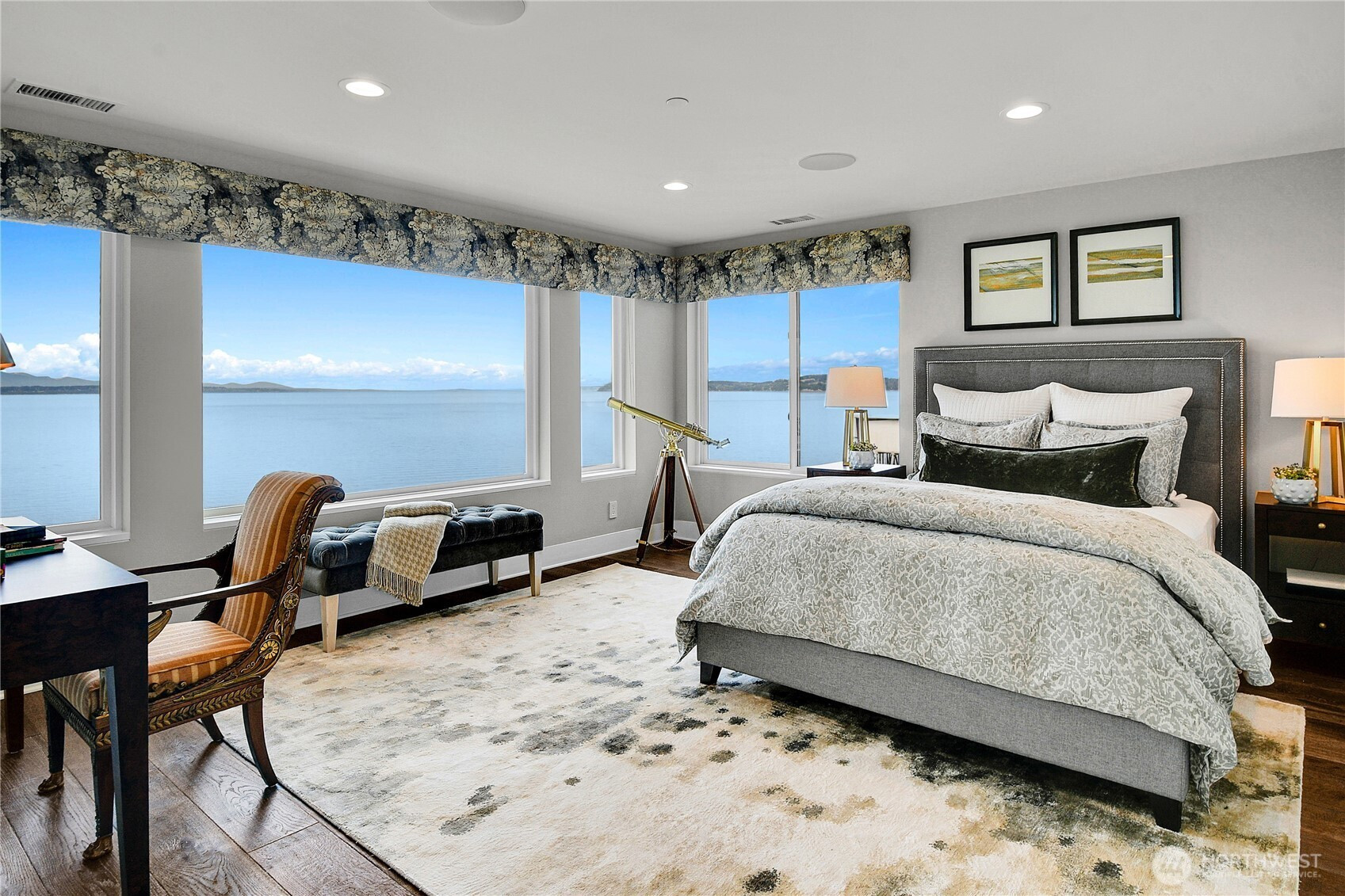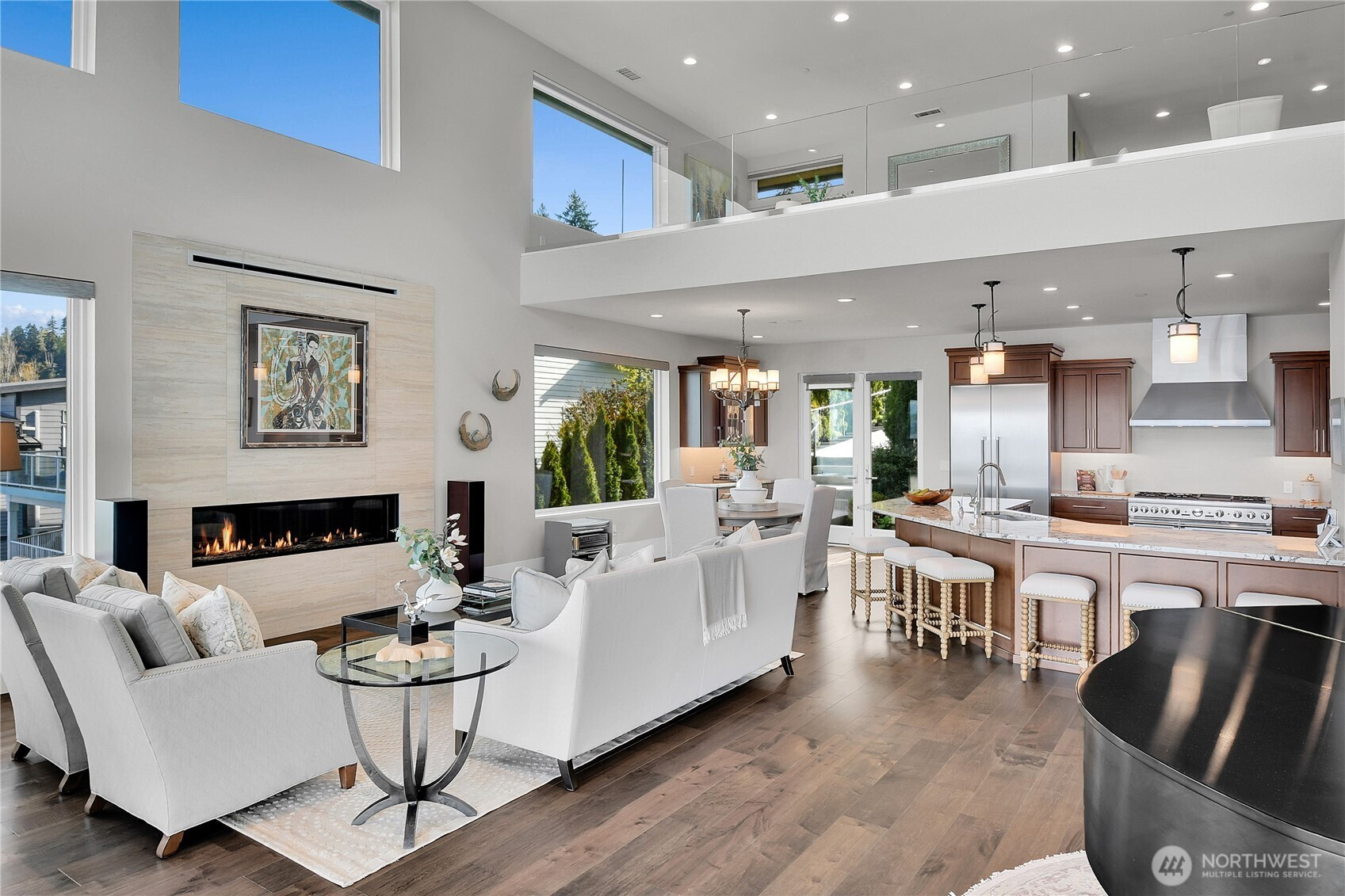 Set behind gates along the shores of Puget Sound, this architecturally refined waterfront estate delivers a front row seat to one of the Pacific Northwest’s most captivating panoramas—Olympic Mountain sunsets, island silhouettes, passing vessels, and the rhythmic presence of marine life below. Custom built in 2018, the 8,100+ sq ft residence is a study in precision and restraint, where curated materials, bespoke millwork, and designer lighting create a timeless yet contemporary aesthetic. Expansive walls of glass dissolve the boundary between indoors and out, framing the scenery as living art. The home balances grand scale with refined livability, every space is designed to impress—yet feels effortlessly inviting. Five sumptuous bedrooms, (primary on each floor) 4.5 spa inspired baths, epicurean kitchen, an entertainers dream of grand scale spaces flooded with Western light, media room, flex space for music/game/Zoom, wine cellar, workout space, personal sauna, two laundry rooms, a gated motor court, and four car garage complete this rare offering—an exceptional expression of luxury waterfront living in one of Edmonds’ most coveted enclaves known as Meadowdale Beach.