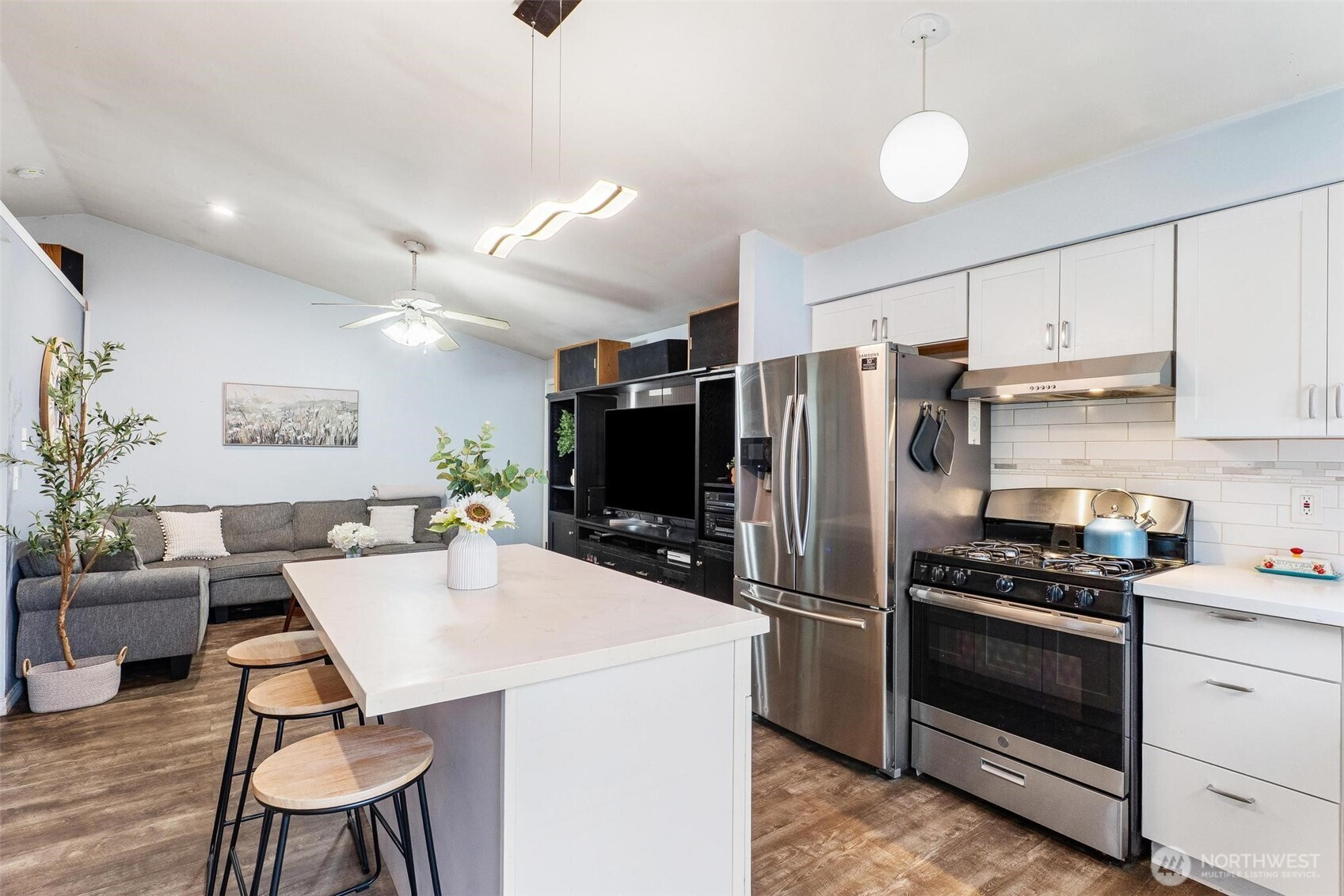 RAMBLER ALERT! Beautiful rambler featuring 3 bedrooms and 1 bath with a spacious, light-filled living room perfect for everyday living and entertaining. The kitchen is a standout with stainless steel appliances, quartz countertops, a center island, and modern finishes throughout. Vaulted ceilings create an open and airy feel, adding to the home’s charm. Step outside to a private, fully fenced backyard complete with a storage shed—ideal for relaxing or hosting. Major updates include a new roof in 2021 and new garage doors in 2022. Conveniently located near shopping, restaurants, parks, trails, and just minutes from Amazon. A fantastic opportunity for a primary residence or a great investment property!