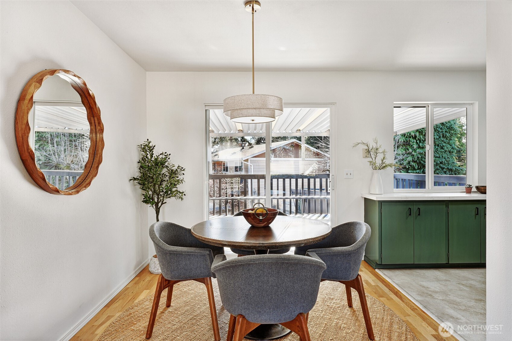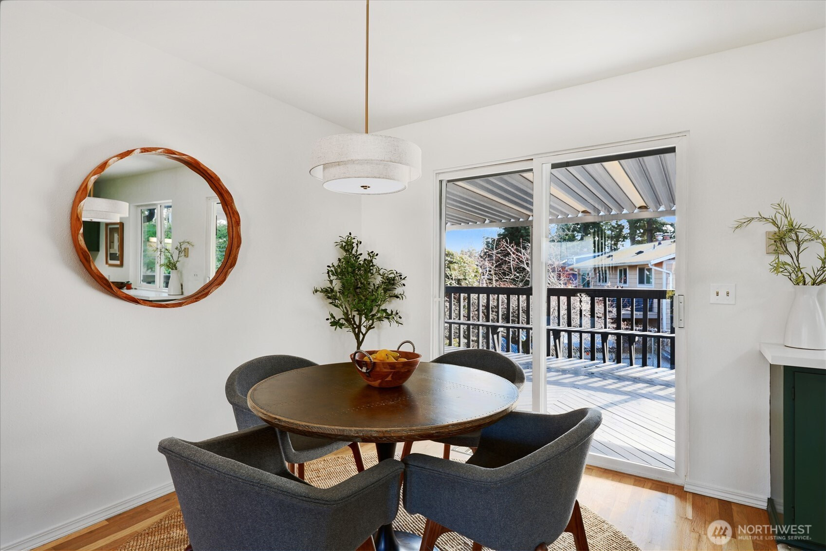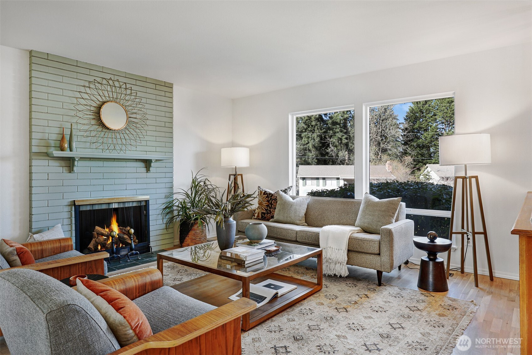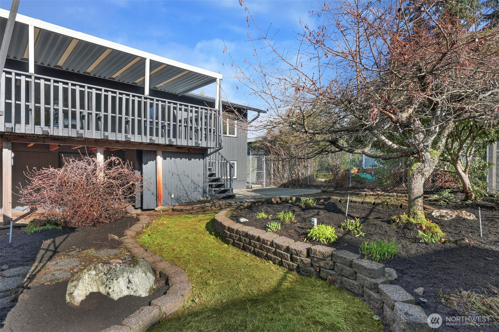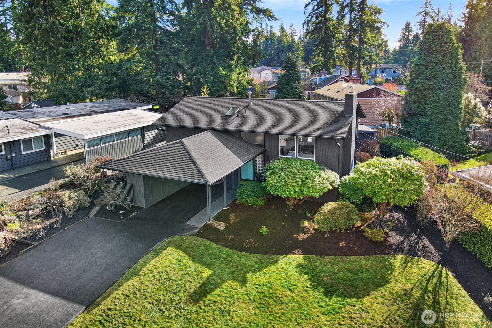Idyllically located in Meadowdale, first time on the market in over 60 years. This home has been thoughtfully updated while preserving & celebrating the design details of the coveted 1960s “Golden Era.” Each room is sun-filled displaying beautiful views of the large 8,000+ sq ft fenced garden, deck, & entertaining spaces, along w/ a garden house in the backyard next to the lower brick-paved patio. Sliding glass doors open to a large covered deck w/ built-in seating just off the kitchen & dining room, allowing for expanded entertaining space & seamless indoor-outdoor living. Updates include: vinyl windows, roof, refinished hardwoods, exterior & interior painting, carpet, vinyl flooring, door/cabinet hardware, updated lighting, Quartz counters in kitchen & landscaping. The main floor features 3 bedrooms, full bathroom & a large living room w/ a cozy fireplace & expansive windows overlooking the spacious front yard. Versatile layout on lower level w/ a bonus living/recreation room, a ¾ bath & a laundry room, along w/ a hobby/flex space filled w/ storage cabinets, workbench & the potential to add a 4th bedroom. The large carport includes multiple storage spaces & plenty of driveway parking, adjacent to raised garden beds filled w/ heirloom rose bushes. Located across the street from Meadowdale Playfields, w/in one mile of top-rated & in-boundary schools, Meadowdale Park & to Haines Wharf Park to enjoy the Edmonds waterfront. Four miles from Lynnwood City Center Light Rail & I-5.