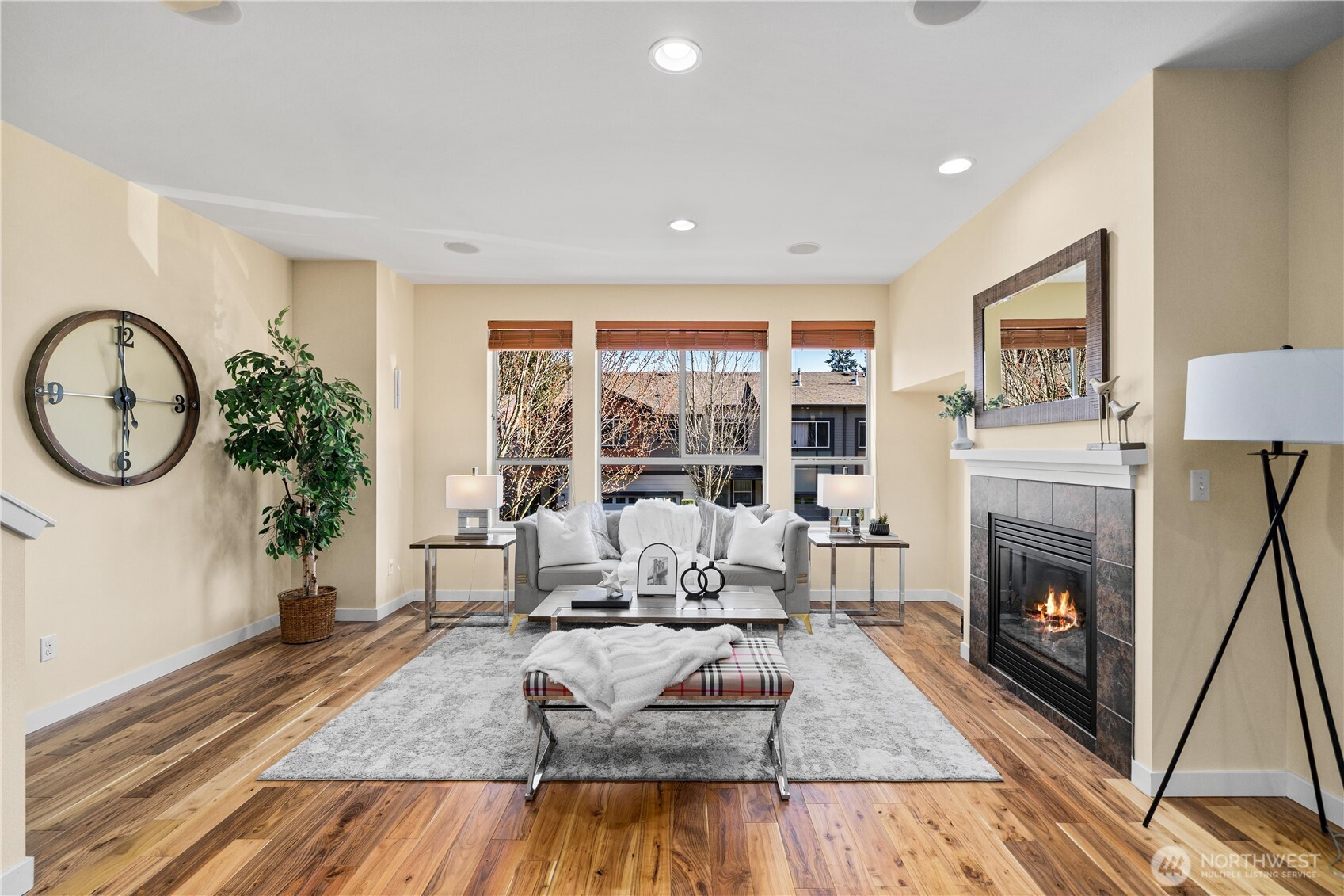 Light-filled townhouse with an ideal layout and fresh updates throughout. Enjoy new interior paint and carpet, spacious bedrooms, and abundant natural light. Main floor enjoys beautiful wood flooring, Chef’s kitchen with great storage, abundant counter space, and great room living with 9-foot ceilings and gas fireplace. Bedrooms are conveniently located upstairs, with primary featuring vaulted ceilings and custom walk-in closet. The lower-level bonus space offers flexibility for a home office, gym, media room, or guest area. One+ car garage adds everyday convenience and lots of extra storage. Easy access to I-5 makes commuting simple. Minutes to shopping, restaurants, and parks. Move-in ready and beautifully refreshed—this home offers comfort, location, and versatility. PET FRIENDLY!