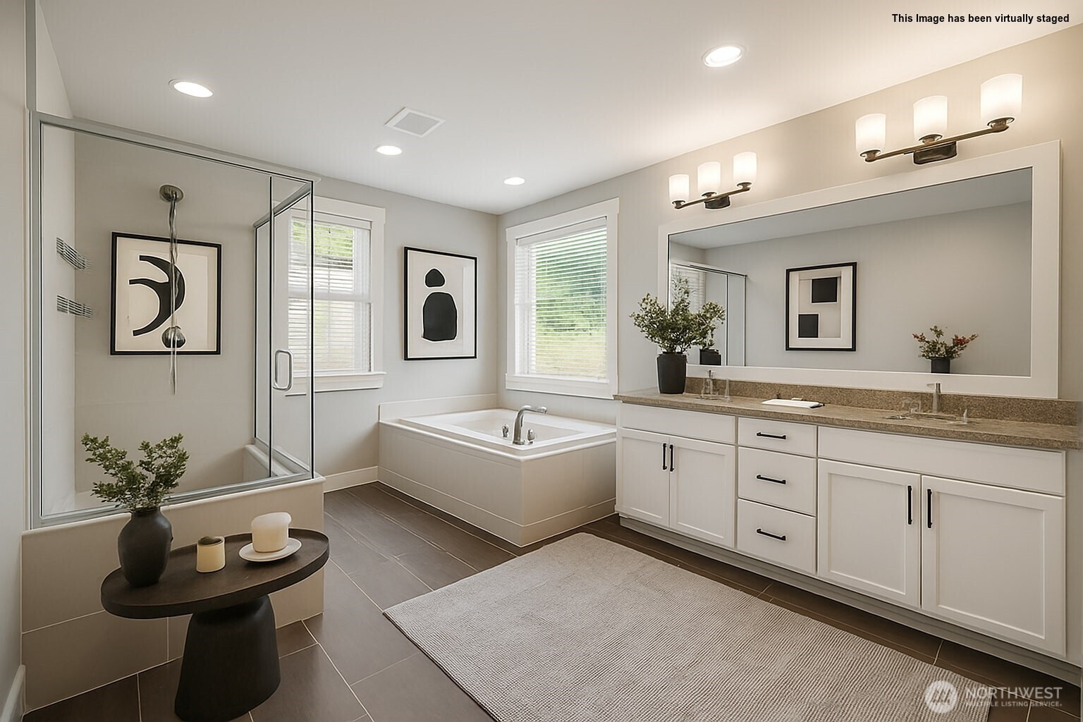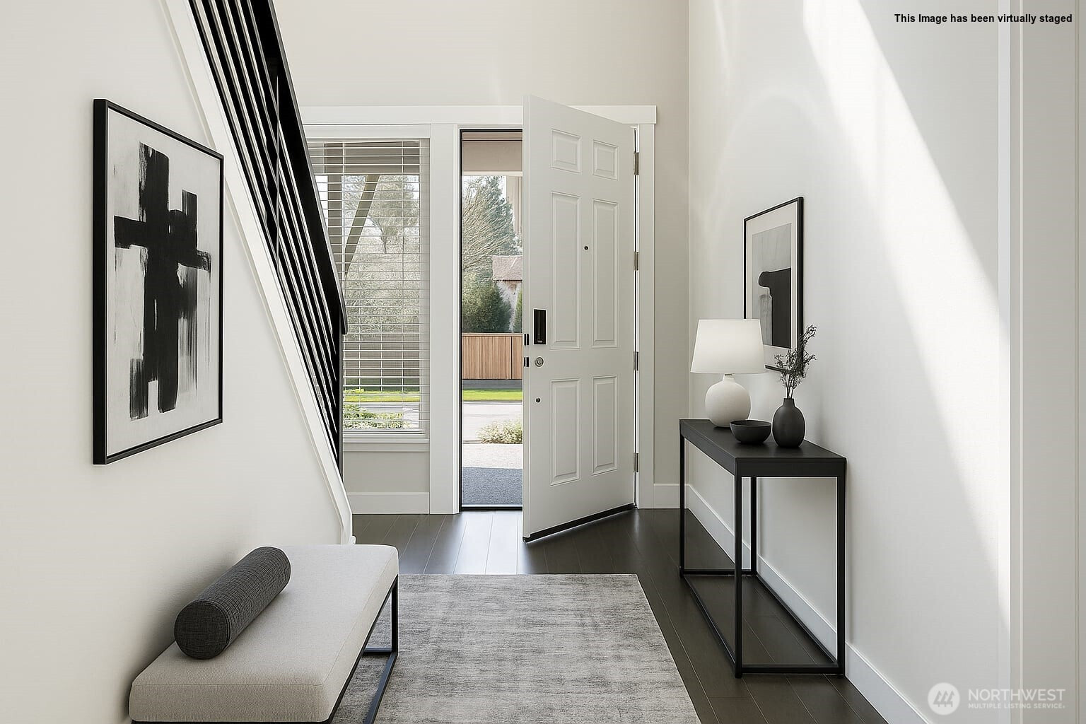 Welcome to a sanctuary of elegance & comfort nestled in the heart of one of Monroe's most inviting neighborhoods. Step inside this beautiful & functional home to discover a blend of sophistication & warmth. The soaring 10-foot ceilings & rich hardwood floors lead you through spaces designed for both relaxation & entertainment. The striking gas fireplace, adorned with Florentine matte Carrara tile, adds a touch of luxury to every gathering. The heart of this home, the chef's kitchen, is a masterpiece of design. Stainless steel appliances gleam alongside quartz countertops, while the expansive island invites culinary creativity & lively conversation. The seamless flow into the living areas makes hosting a delight, & the walk-in pantry ensures everything is always at your fingertips. The thoughtful layout includes a main-level bedroom with a ¾ bath, ideal for guests or multi-generational living. An adjacent office, complete with built-in cabinets & a desk, offers a perfect setting for productivity or quiet reflection. Upstairs, you'll find a spacious bonus room & an impressive primary suite that delivers tranquility & modern convenience. Additional highlights include a mudroom, upstairs laundry, high-efficiency tankless water heater, central A/C, spacious garage, & a fully fenced yard. Enjoy easy access to a community playground, parks, schools, dining, shopping, & more. Schedule a private showing today! Virtually Staged.