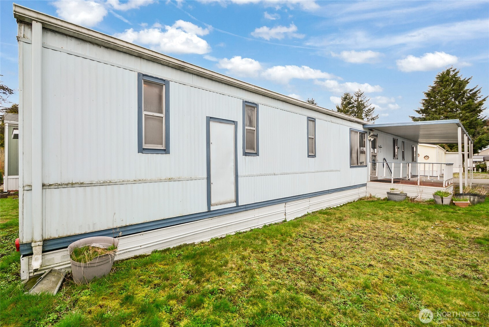 This 55+ Senior Park Living needs a new neighbor! This Singlewide is 2 Bedroom & 2 Bathroom that has a good 924 sq feet that is ready to be your place to call home. New carpet. Large kitchen. This home just needs some easy tune ups to really get personalized! It does need some new windows. Comes with carport parking. two covered decks and your own grassy area to add your character to! Cull de sac location is on a nice dead end within the park, but still close to the Clubhouse. There is a seasonal Swimming Pool at the Clubhouse for all residents, that has monthly and holiday activity calendars if you want to check those out! Pets ok, subject to some restrictions. Shed on lot is included for additional storage. Rv/ Boat parking for small fee monthly. One of the lowest park leases in Snohomish County that includes water and sewer in the fee. Close to all kinds of shopping and conveniences, I-5. Buyer must make application to the park to purchase.