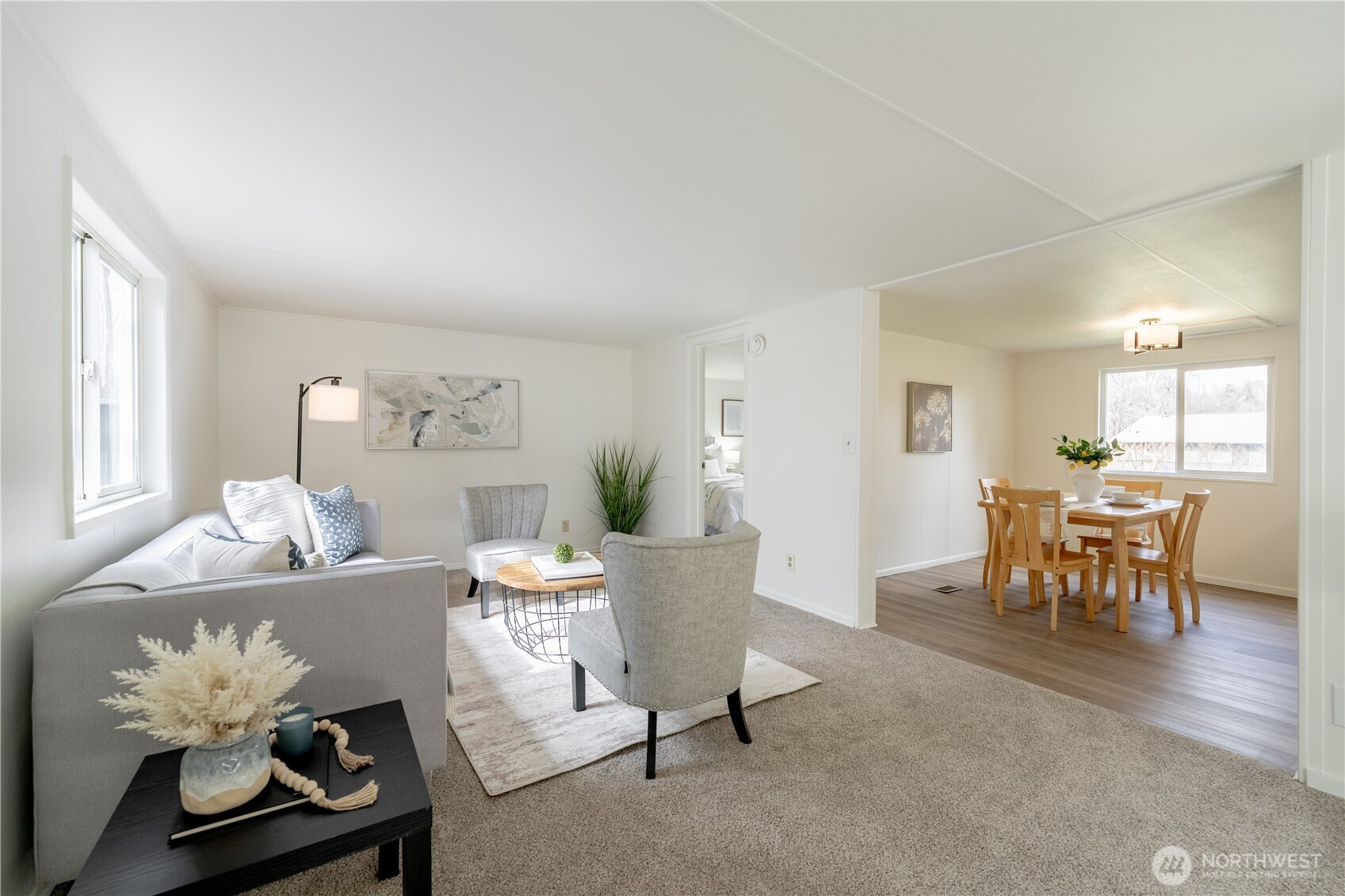 Nicely Updated 3 BD 1.75 BA Home on .42 acre lot. Large Living and Family Rooms. Primary Bedroom with 3/4 Bathroom. Renovated Kitchen includes New Soft Close Cabinets, SS Appliances, and Quartz Countertops W/ Workstation Sink. New Interior & Exterior Paint, New Carpet and LVP Flooring. New Faucets, New Plumbing, New Tub in Hall Bathroom with custom Tile Surround. New LED Lighting, New Furnace & Ducting, New Composition Roof, and New Hot Water Tank. New Insulation and Vapor Barrier in the Crawlspace. Covered Front Breezeway with access to a dog run. Fenced Pasture for small animals. 2 Car Garage. Fully Permitted Updates through Labor & Industries. New Well equipment!