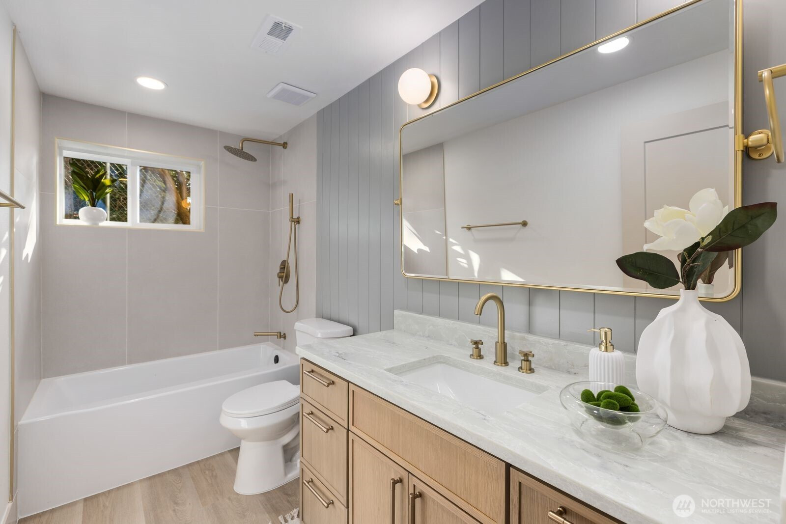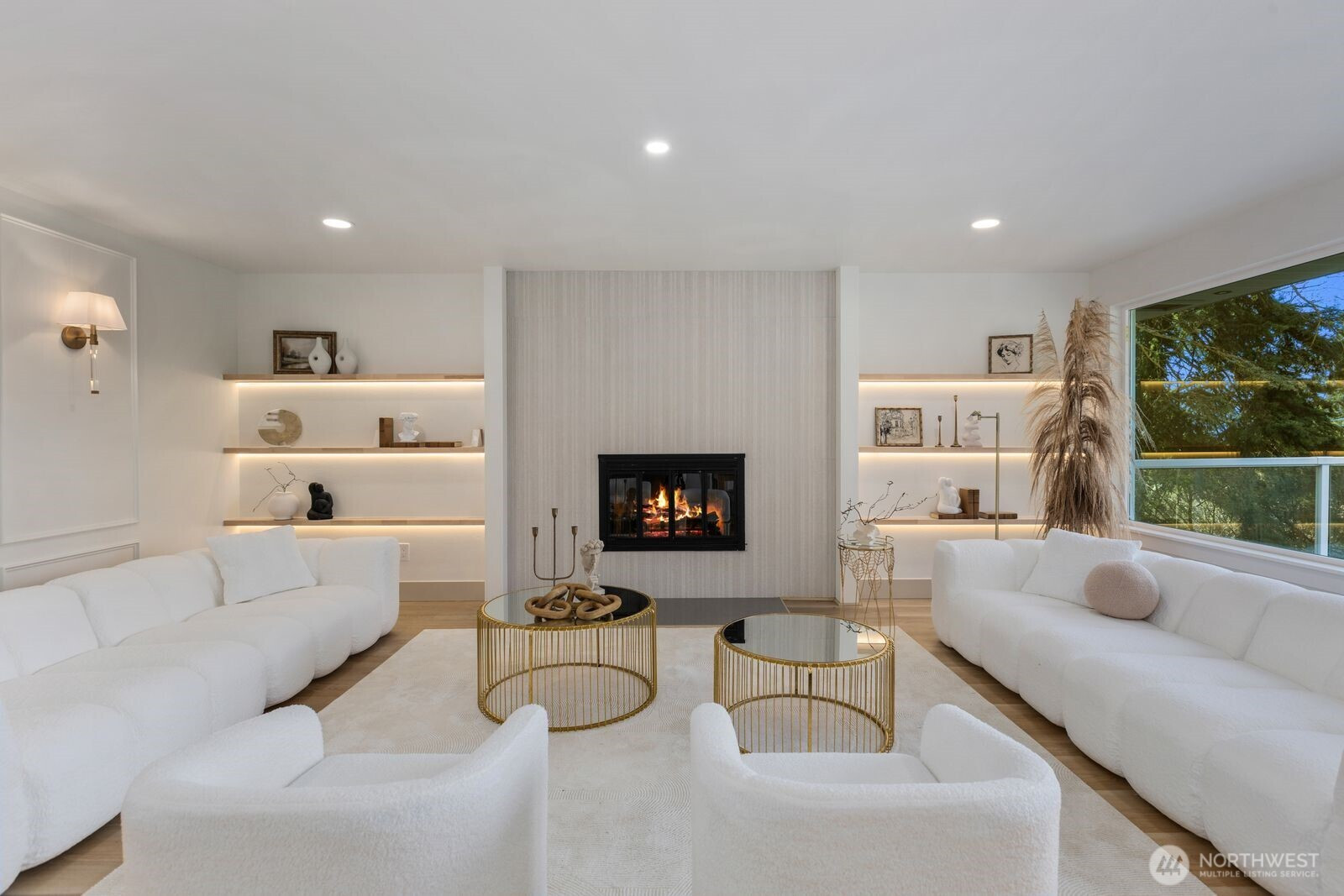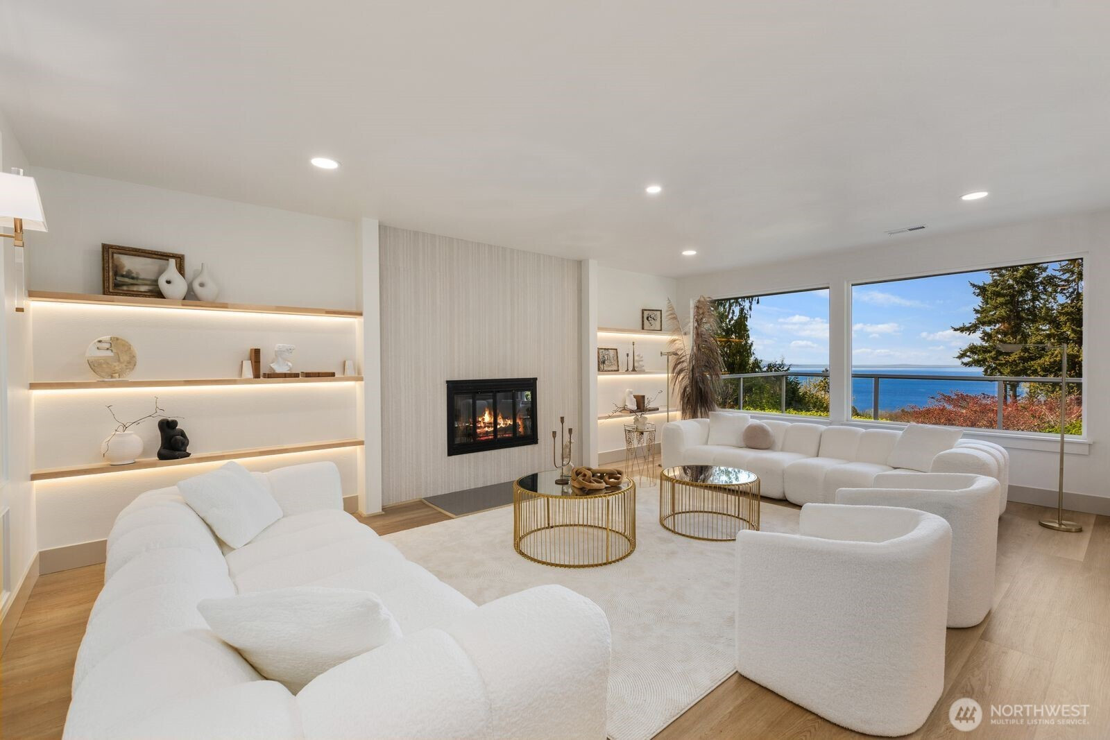 Breathtaking Panoramas. This extraordinary 5-bedroom, 3-bathroom fully remodeled oasis captures sweeping Puget Sound and Olympic Mountain vistas, offering unobstructed beauty and unforgettable sunsets. Designed for both entertaining and everyday living, the home features expansive gathering spaces, seamless flow, and exquisite designer finishes throughout. The chef-inspired kitchen is a showpiece, with custom cabinetry, rare luxury countertops, premium appliances, and refined detailing. The living room is anchored by a striking custom accent wall with floating shelves and integrated lighting, blending warmth and style. The primary suite is a serene retreat with a walk-in closet and spa-inspired bathroom showcasing a dramatic custom “arch shower” with sophisticated tile and fixtures. The main level also includes two additional bedrooms and a beautifully appointed guest bath. The lower level offers two more bedrooms, an expansive family room with a wood-burning fireplace, and flexible space for guests or multi-generational living. Upgrades include a brand-new roof, new electrical panel, high-efficiency furnace, heat pump, water heater, custom stair lighting, and extra parking with a rare roundabout driveway. Every detail exudes luxury and comfort—this is an elevated lifestyle in a home that truly takes your breath away. Welcome home.