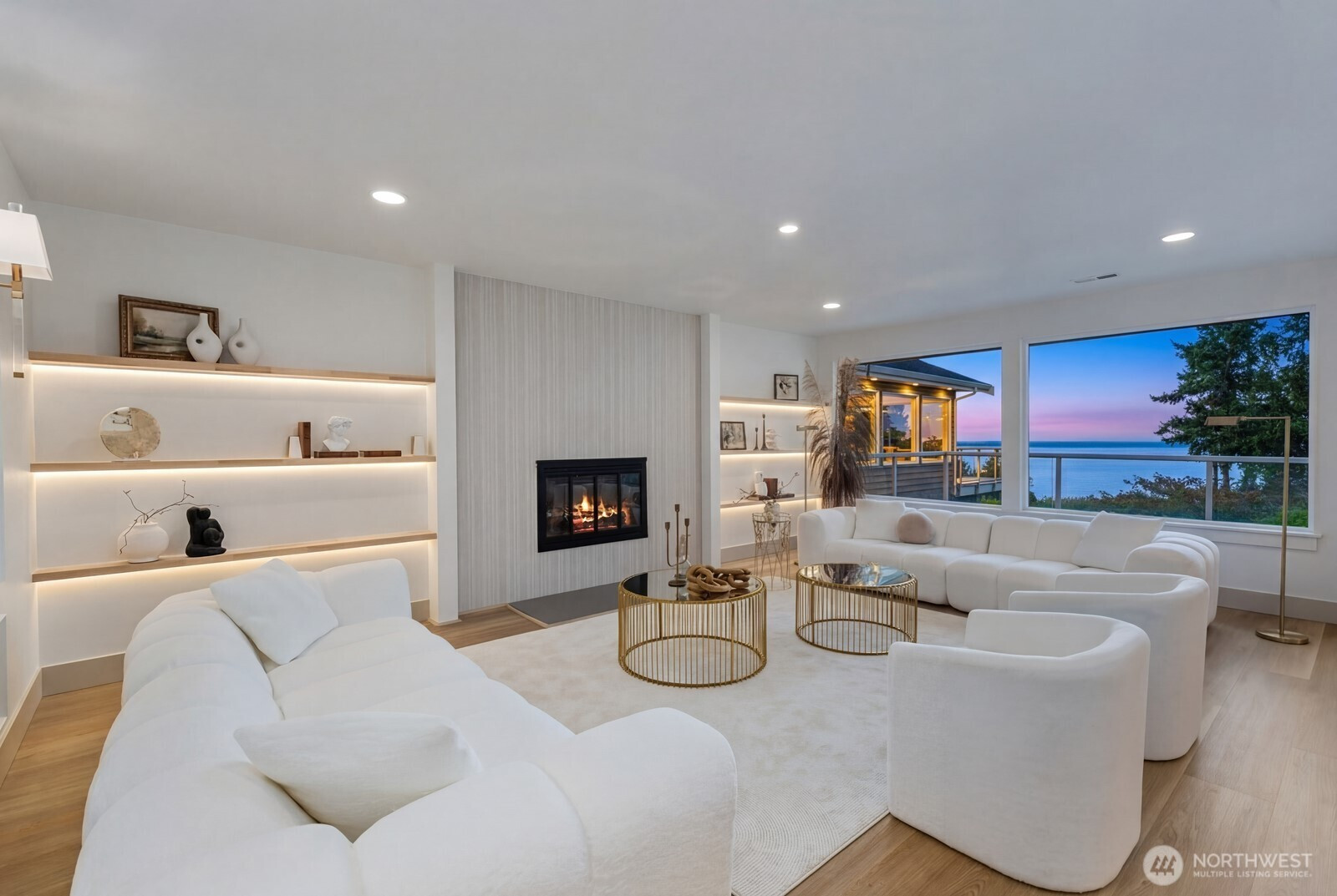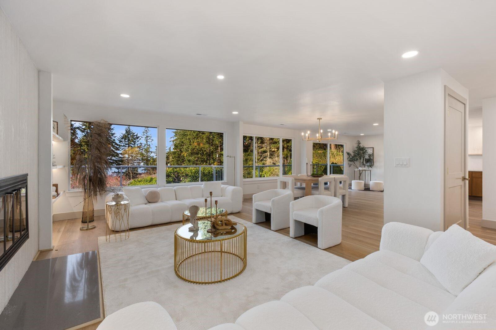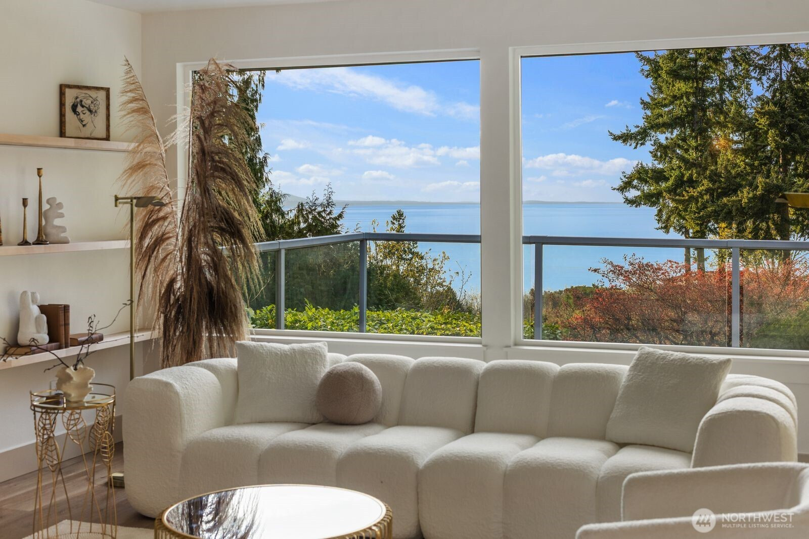 (503) 893-8874Perched for panoramic Puget Sound and Olympic Mountain views, this fully reimagined luxury residence defines elevated Pacific Northwest living. Spanning 5 bedrooms and 3 baths, the home offers expansive, light-filled interiors with impeccable flow, marrying modern sophistication with timeless elegance. The chef’s kitchen is a statement of refinement, featuring bespoke cabinetry, rare premium surfaces, and high-end appliances—all thoughtfully curated for both style and function. The living room impresses with a custom designer accent wall, floating shelving, and integrated lighting, creating an inviting yet contemporary ambiance.The primary suite is a private sanctuary, complete with a spacious walk-in closet and a spa-inspired bath showcasing a dramatic arched shower, elevated tilework, and designer finishes. Two additional bedrooms and a beautifully appointed guest bath complete the main level.The lower level is ideal for versatile living, with two bedrooms, a generous family room with wood-burning fireplace, and flexible space perfect for entertaining or multi-generational living.Premium upgrades include a new roof, upgraded electrical panel, high-efficiency furnace, heat pump, water heater, custom stair lighting, and a rare roundabout driveway with ample parking. Luxury, comfort, and iconic views converge in this extraordinary estate.