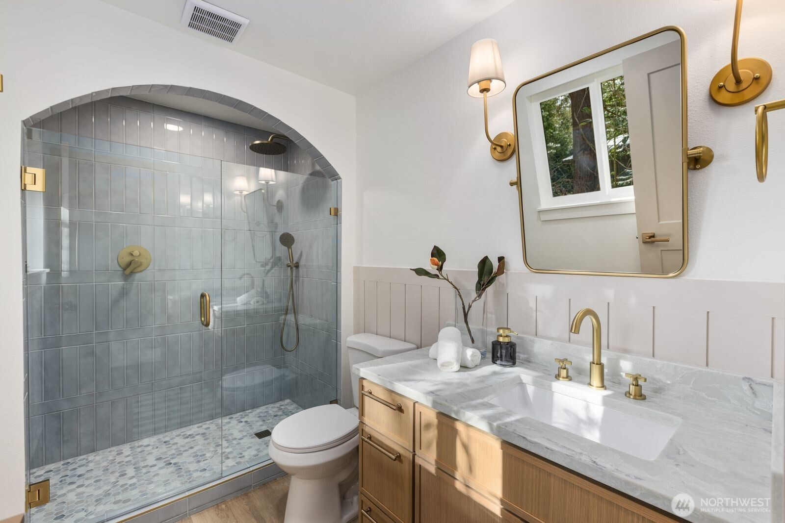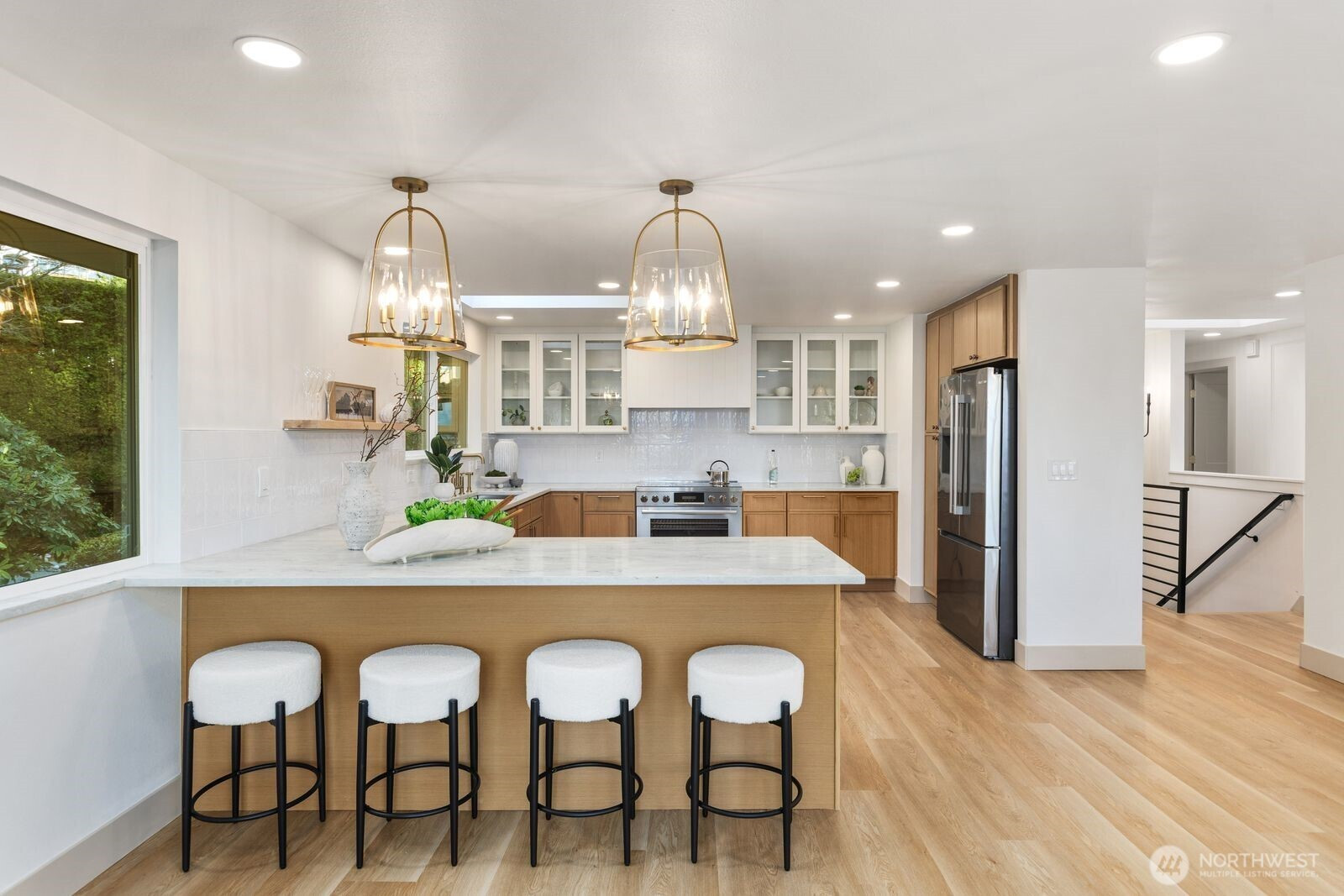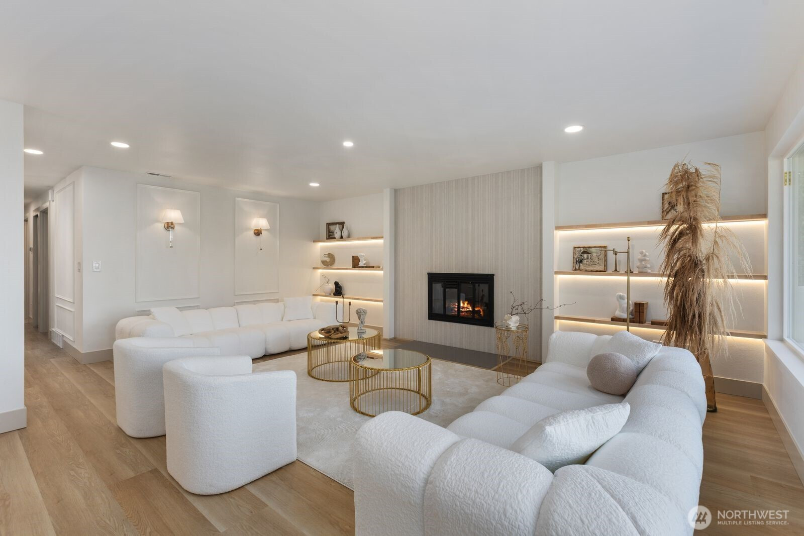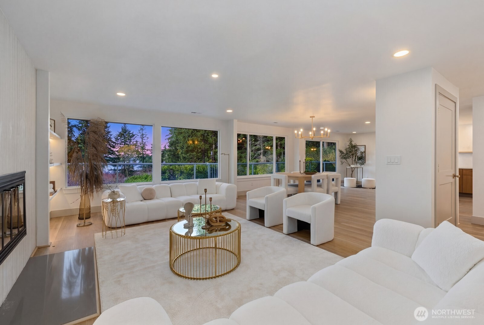 (503) 893-8874Perched for panoramic Puget Sound and Olympic Mountain views, this fully reimagined luxury residence defines elevated Pacific Northwest living. Spanning 5 bedrooms and 3 baths, the home offers expansive, light-filled interiors with impeccable flow, marrying modern sophistication with timeless elegance. The chef’s kitchen is a statement of refinement, featuring bespoke cabinetry, rare premium surfaces, and high-end appliances—all thoughtfully curated for both style and function. The living room impresses with a custom designer accent wall, floating shelving, and integrated lighting, creating an inviting yet contemporary ambiance.The primary suite is a private sanctuary, complete with a spacious walk-in closet and a spa-inspired bath showcasing a dramatic arched shower, elevated tilework, and designer finishes. Two additional bedrooms and a beautifully appointed guest bath complete the main level.The lower level is ideal for versatile living, with two bedrooms, a generous family room with wood-burning fireplace, and flexible space perfect for entertaining or multi-generational living.Premium upgrades include a new roof, upgraded electrical panel, high-efficiency furnace, heat pump, water heater, custom stair lighting, and a rare roundabout driveway with ample parking. Luxury, comfort, and iconic views converge in this extraordinary estate.