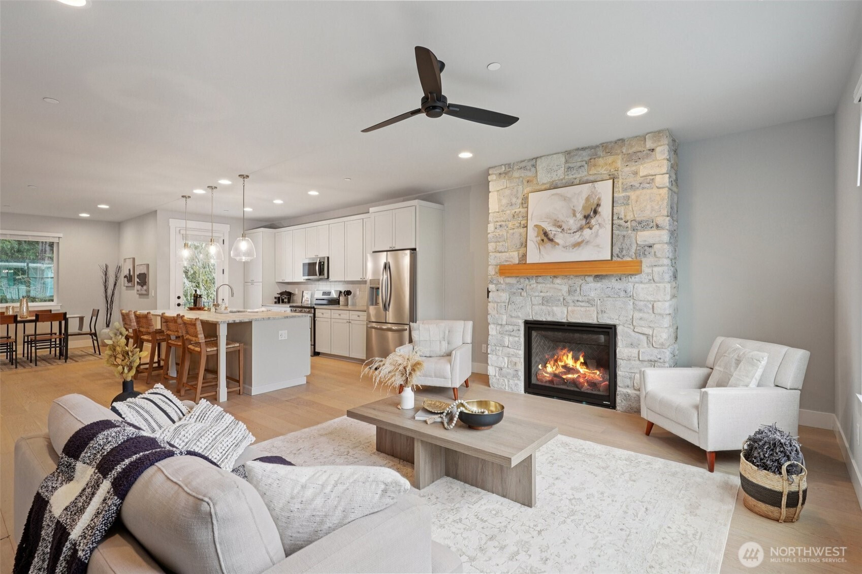 BUILDER INCENTIVES! 4.75% with 50K buydown. NEW construction 4-bed by Glen Eagle Homes. Modern farmhouse meets coastal. Enjoy spaciousness & a thoughtful layout. Main living offers open-concept design, wide-plank hardwoods & gas fireplace w/ floor-to-ceiling stone surround. Views of the Cascades. Covered deck for yr-round use. Kitchen has a huge island w/ seating & storage, shaker Aristokraft cabinetry, buffet w/ wine storage + bev fridge + walk-in pantry. All SS appl. Oversized windows throughout. Powder bath & den on main. Generous Primary Suite w/ ¾ en-suite & WIC. Flex space could be 4th bed, rec-room w/ wet bar or MIL. Ideal commuter location.