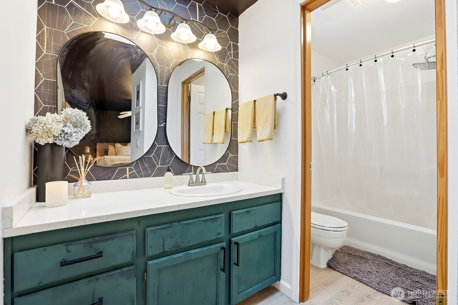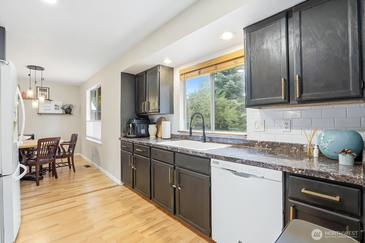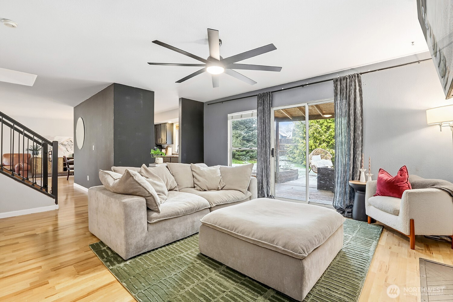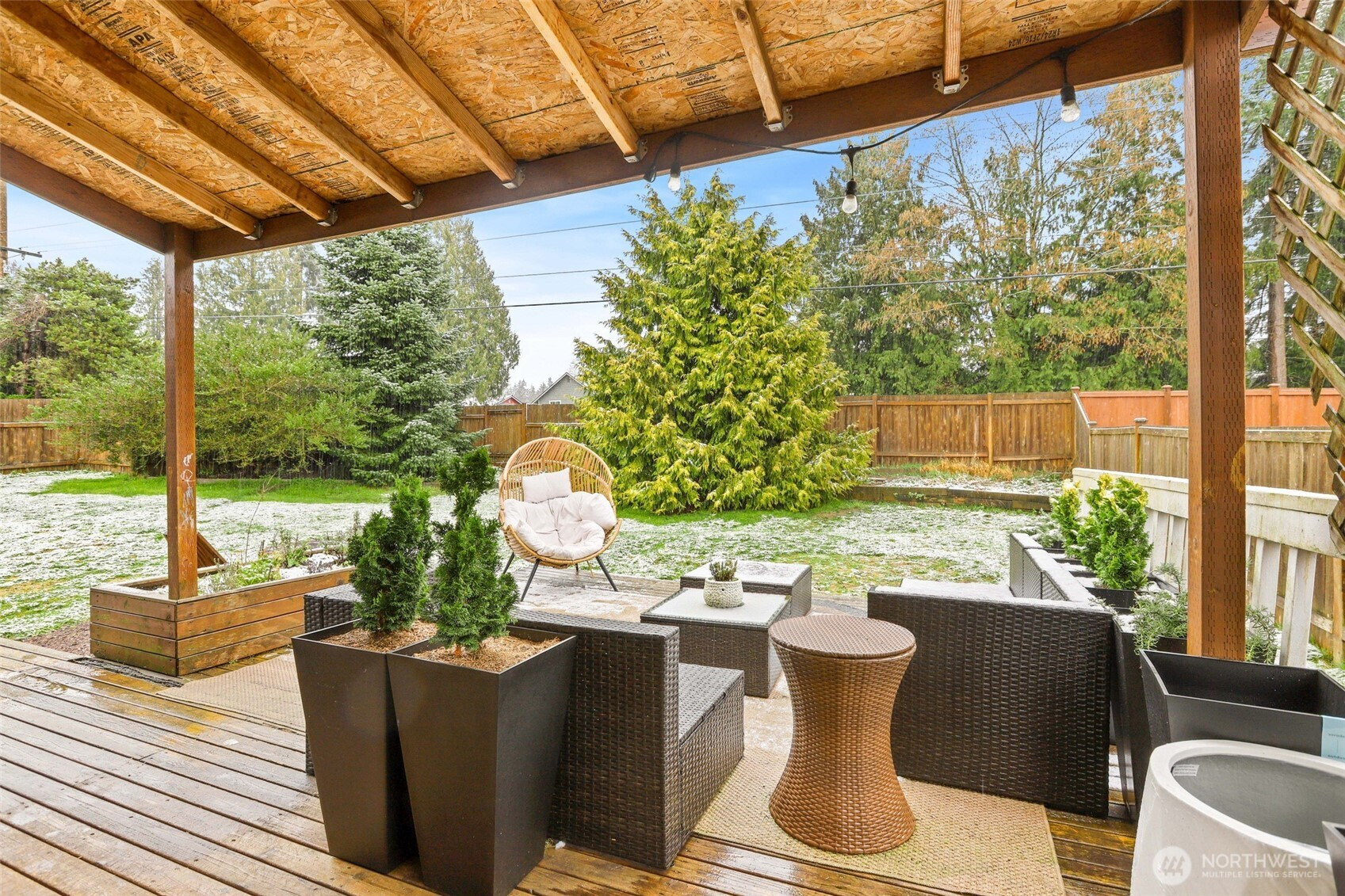 Fantastic opportunity to own in Lake Stevens, and with NO HOA! This 3 bedroom, 2.25 bathroom home is perfectly situated on a spacious corner lot in prime, central location close to everything you need. Enjoy outdoor living with a fully fenced backyard, garden shed, and a relaxing deck—your own private oasis to unwind. Step through your covered country porch, and the interior greets you with vaulted ceilings, a versatile layout featuring a bright living room, dining room, and a cozy family room with a wood-burning fireplace. The kitchen is ideally positioned between the dining and family rooms, making it perfect for both everyday living and entertaining. The living room showcases a beautiful bay window overlooking the front porch, while the generously sized primary suite offers two closets, a full bath, and a vanity area with a skylight that fills the space with natural light. Additional bedrooms are spacious and comfortable, providing flexibility for guests, work, or hobbies. This home blends comfort, functionality, and outdoor enjoyment—don’t miss this opportunity!