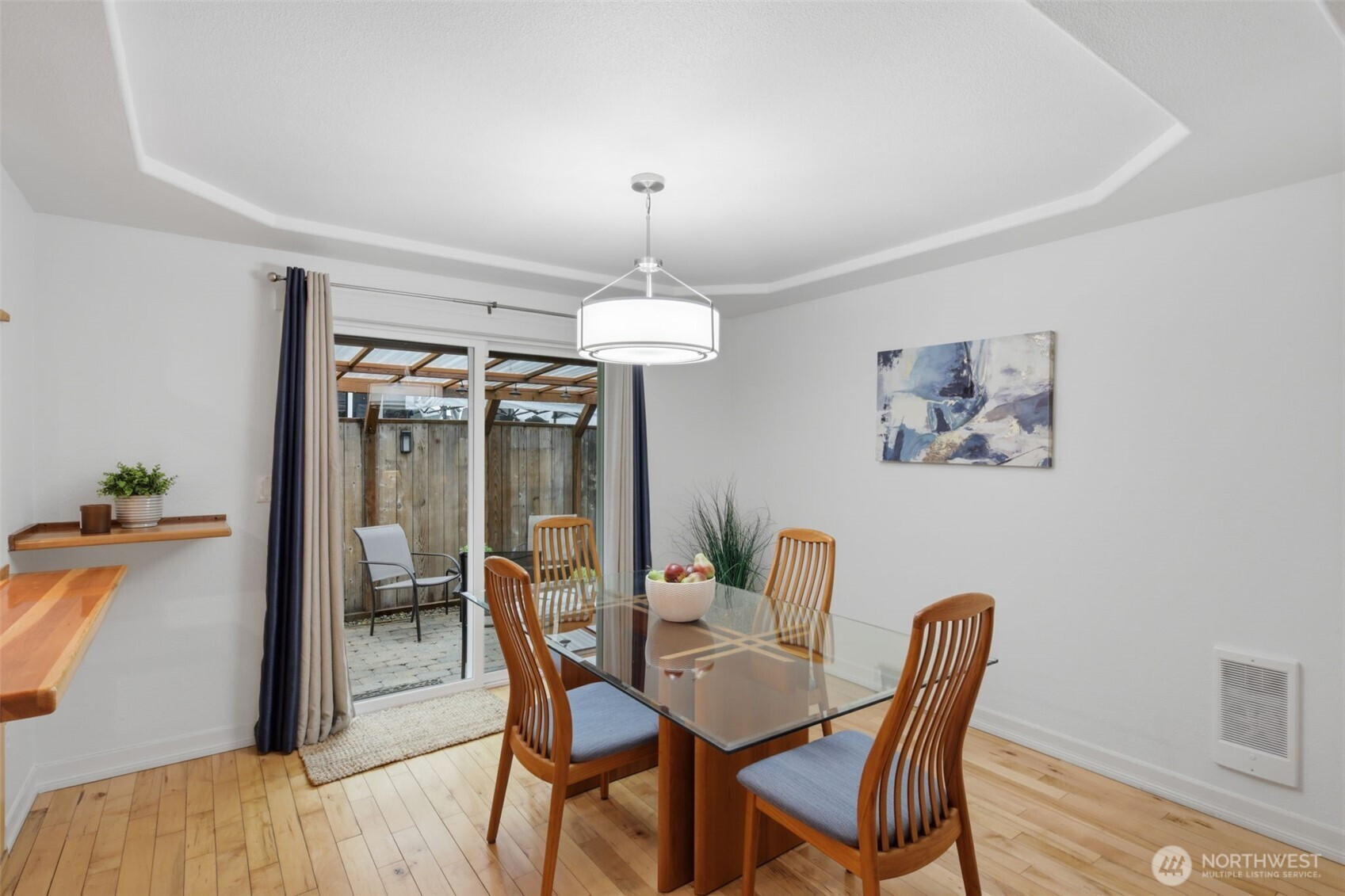 A perfect opportunity for first-time buyers or anyone seeking low-maintenance living, this bright & refreshed townhome is tucked away in a quiet community of only 8 homes. Fresh paint throughout creates a crisp, welcoming feel while the open living room with cozy fireplace invites relaxing evenings or gatherings with friends. The kitchen features warm butcher block countertops, quality cabinetry & appliances that stay, blending style with everyday functionality. Generous bedrooms provide comfortable living space while thoughtful storage includes valuable extra attic storage rarely found in townhomes. Step outside to your private outdoor space featuring a spacious patio with a covered section—perfect for year-round BBQs, outdoor dining or relaxing in any season. Residents also enjoy access to a large shared park-like yard ideal for playtime, pets or simply enjoying the peaceful setting. Attached finished 1-car garage & driveway parking add everyday convenience. Prime location with easy access to I-5, Hwy 99, shopping, dining & major commuter routes, making this an excellent choice for commuters or those ready to step into homeownership.