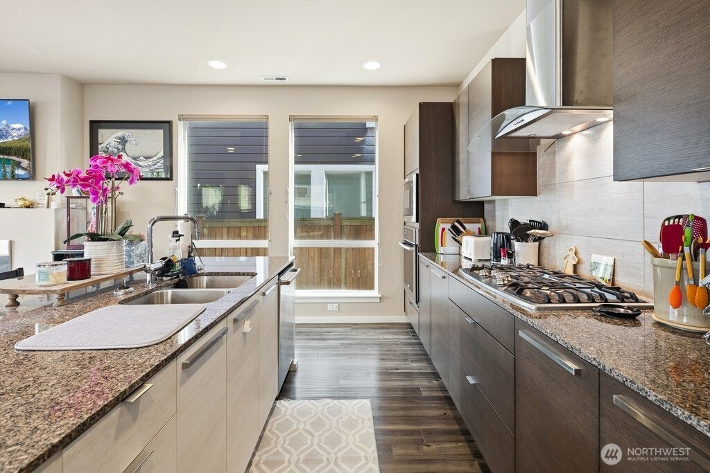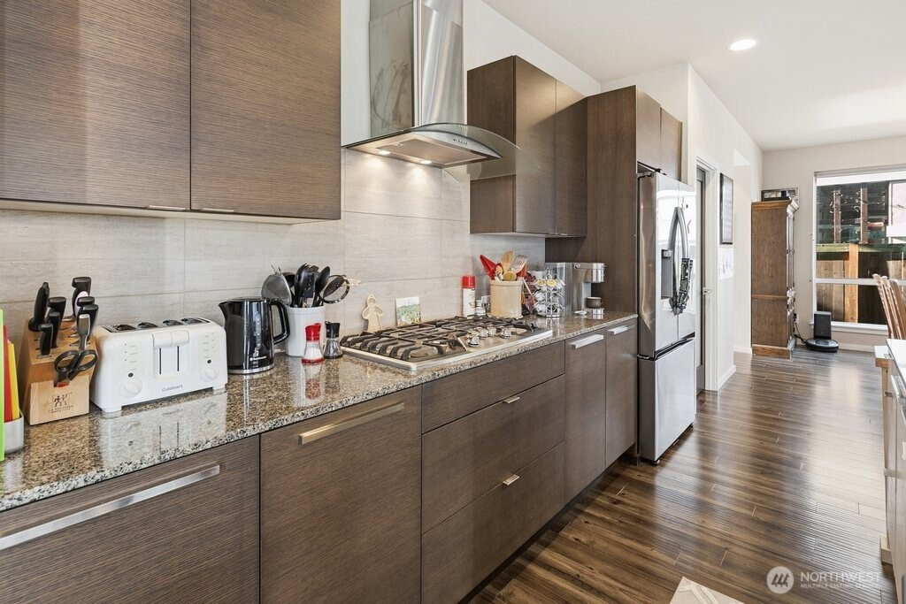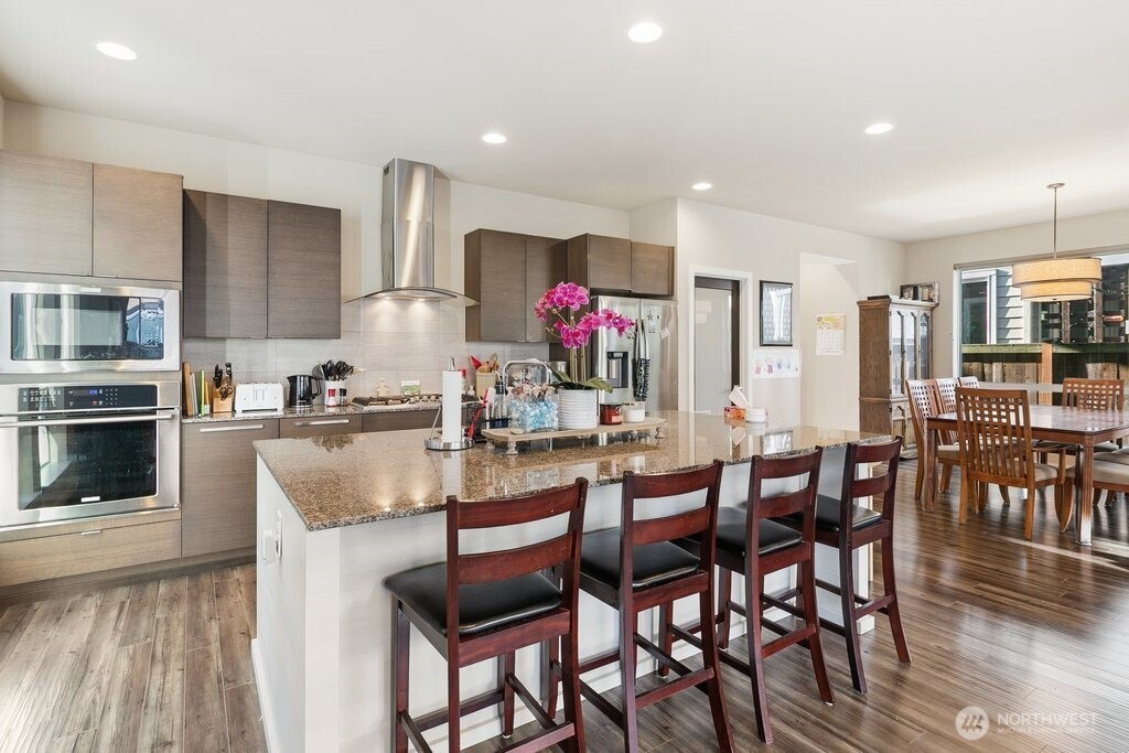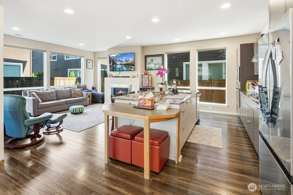 Stunning Bothell/North Creek 2-story home offering the perfect blend of modern comfort, functional design, and prime location! Built in 2015, this beautifully maintained 4-bedroom + bonus / 3-bath home features a light-filled open-concept floorplan with spacious living areas ideal for everyday living and entertaining. The chef’s kitchen is the heart of the home, complete with quartz countertops, large island, stainless steel appliances, and walk-in pantry, flowing seamlessly into the expansive great room with cozy fireplace and abundant natural light. A main-level bedroom and bath provide flexibility for guests, home office, or multi-generational living. Upstairs, enjoy a generous primary suite with ensuite bath and walk-in closet, plus additional bedrooms and a versatile bonus room perfect for media, play, or work-from-home space. Step outside to a fully fenced yard, patio, and outdoor entertaining space, ideal for summer BBQs and year-round enjoyment. Nestled in a desirable community with sidewalks and curb appeal, this home offers both privacy and convenience. Located just minutes to Mill Creek, Canyon Park, and Alderwood amenities, with easy access to I-405, I-5, and major tech corridors (Bellevue, Seattle, Redmond) making it a commuter’s dream. Top-rated schools, nearby parks, and trails complete the package.