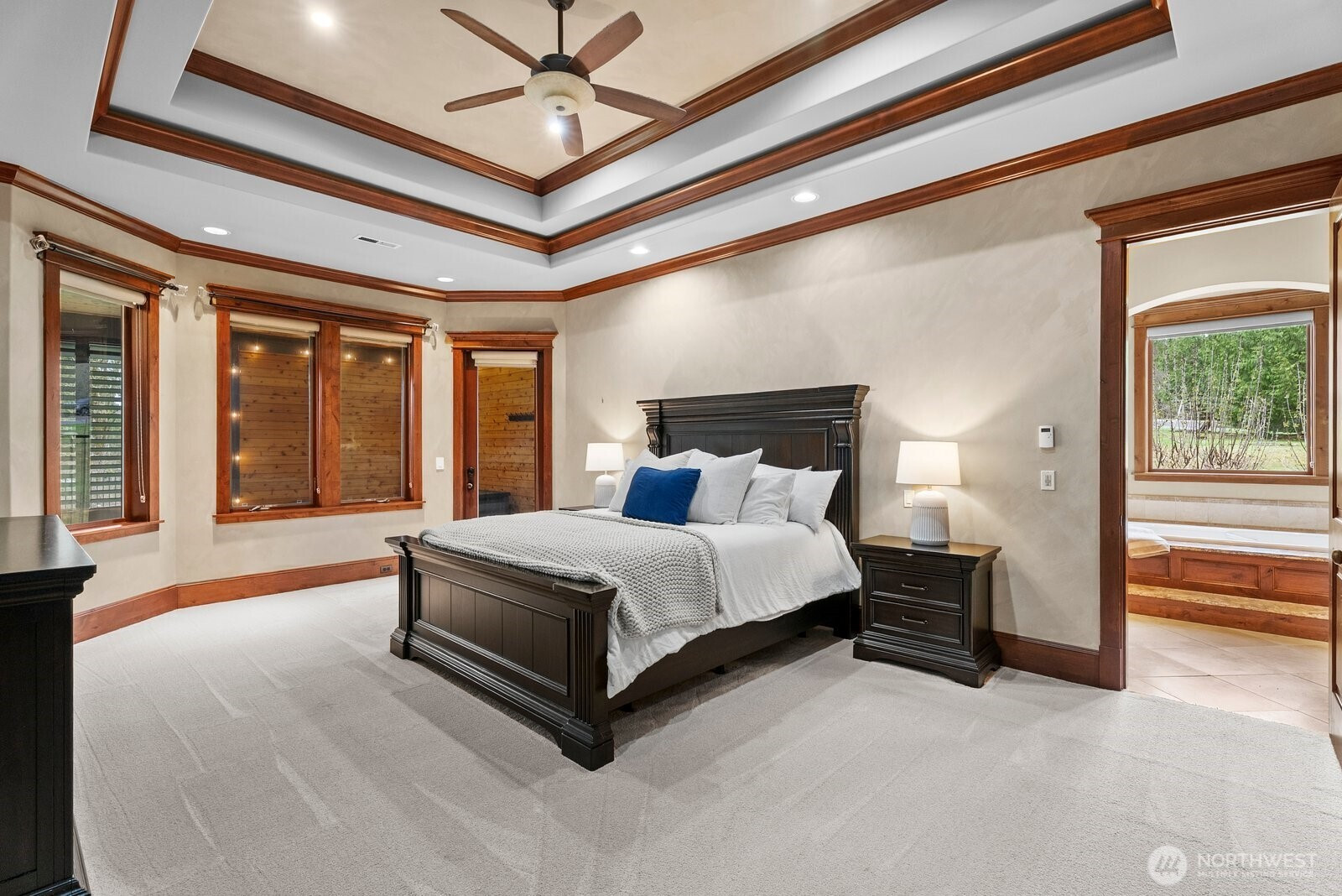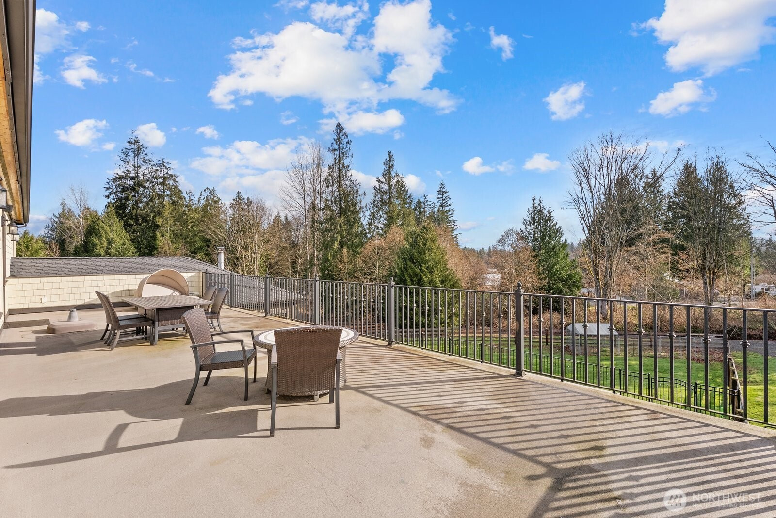 Gated Holly Ranch Estate | Timeless Luxury on Private Acreage. Nestled on just under 5 private acres in Snohomish, this exceptional estate offers nearly 5,000 sq ft of thoughtfully designed living space with 5 bedrooms, 5 baths, and a versatile bonus room with wet bar. Built with quality and comfort in mind, the home features radiant heated floors, geothermal heating and cooling, soaring 12-foot ceilings, and 8-foot custom doors throughout. Gourmet dream kitchen! Complete with a commercial gas stove and an additional built-in Thermador fridge/freezer located in the prep pantry for added convenience and storage. Expansive living spaces flow seamlessly to the outdoors, where you’ll find a custom-built garden with drip beds, tranquil entertaining areas, and a private hot tub retreat with a dedicated outdoor bathroom just steps from the primary suite. Additional features include dual laundry rooms, a luxurious primary suite with spa-like amenities, and both his-and-hers garages offering ample space for storage, hobbies, or car enthusiasts. The property is enhanced by a custom retaining wall, remote controlled outdoor privacy screens, second floor terrace overlooking flowing lake, and a layout that offers both functionality and flexibility. A rare opportunity to own a private, fully-equipped estate combining modern efficiency, thoughtful design, and peaceful surroundings—A truly complete estate!