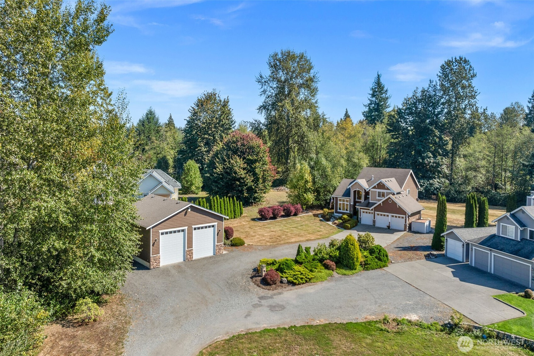 One-owner home on 2.95 acres offers the perfect blend of privacy, seclusion, and convenience close to everything. Supremely well cared for, this home features a smart layout, soaring entry ceilings, abundant natural light, great storage, and A/C. Ideal for entertaining with three bedrooms on the same floor plus a versatile flex room downstairs. The primary suite boasts a five-piece bath and walk-in closet. A 36 x 36 wired shop with office space accommodates RVs, commercial vehicles, a business or hobbies. Tucked back from the road and hidden from sight, the parklike setting provides level usable space, gardening and a surplus of parking. Recent updates include a new furnace, heat pump, and exterior paint. A true gem!