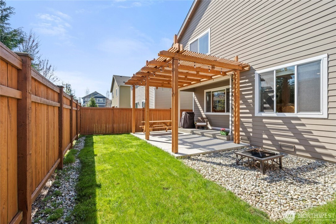 Welcome to this beautifully refreshed Bothell home offering comfort, style, and inviting outdoor living. Fresh interior paint and brand new carpet create a bright, move-in ready feel throughout. The spacious layout features open living and dining areas flowing into the kitchen, ideal for everyday living and entertaining. Upstairs, the generous primary suite offers a private retreat with ensuite bath and walk-in closet, while additional bedrooms provide flexibility for guests or a home office. Enjoy the charming backyard with a stunning pergola, perfect for relaxing or entertaining. Located steps from Tambark Creek Park and sports fields and within top rated schools including Tambark Creek Elementary and Jackson High. Minutes to Mill Creek Town Center, parks, shopping, dining, and easy commuter access. Preinspected for peace of mind.