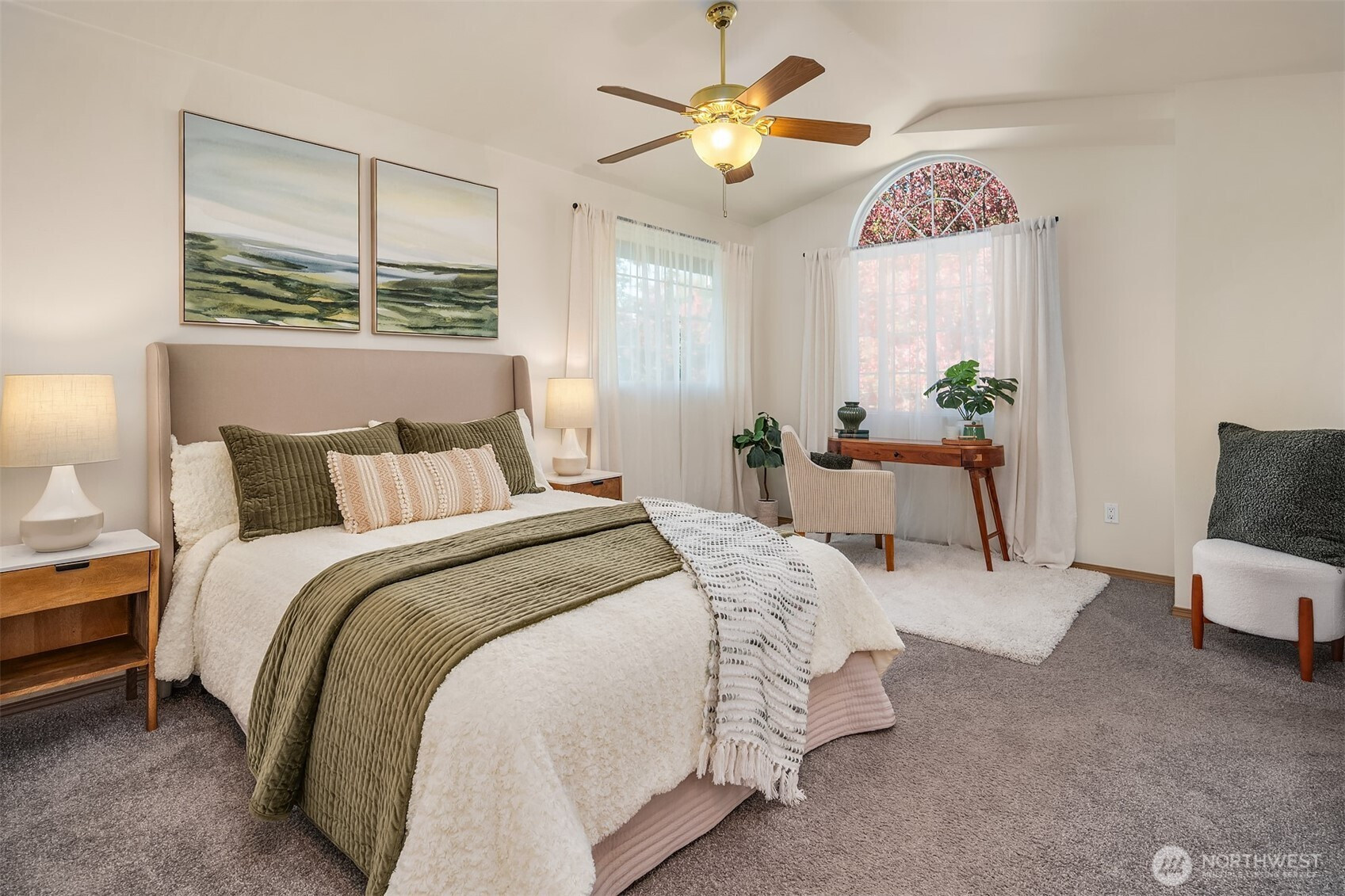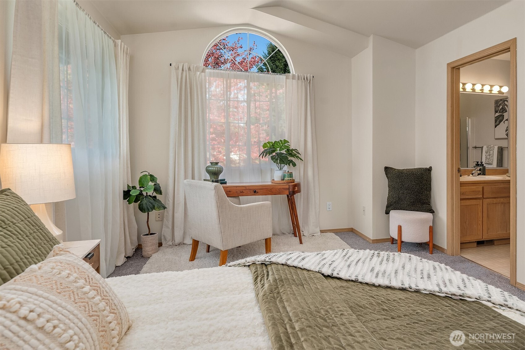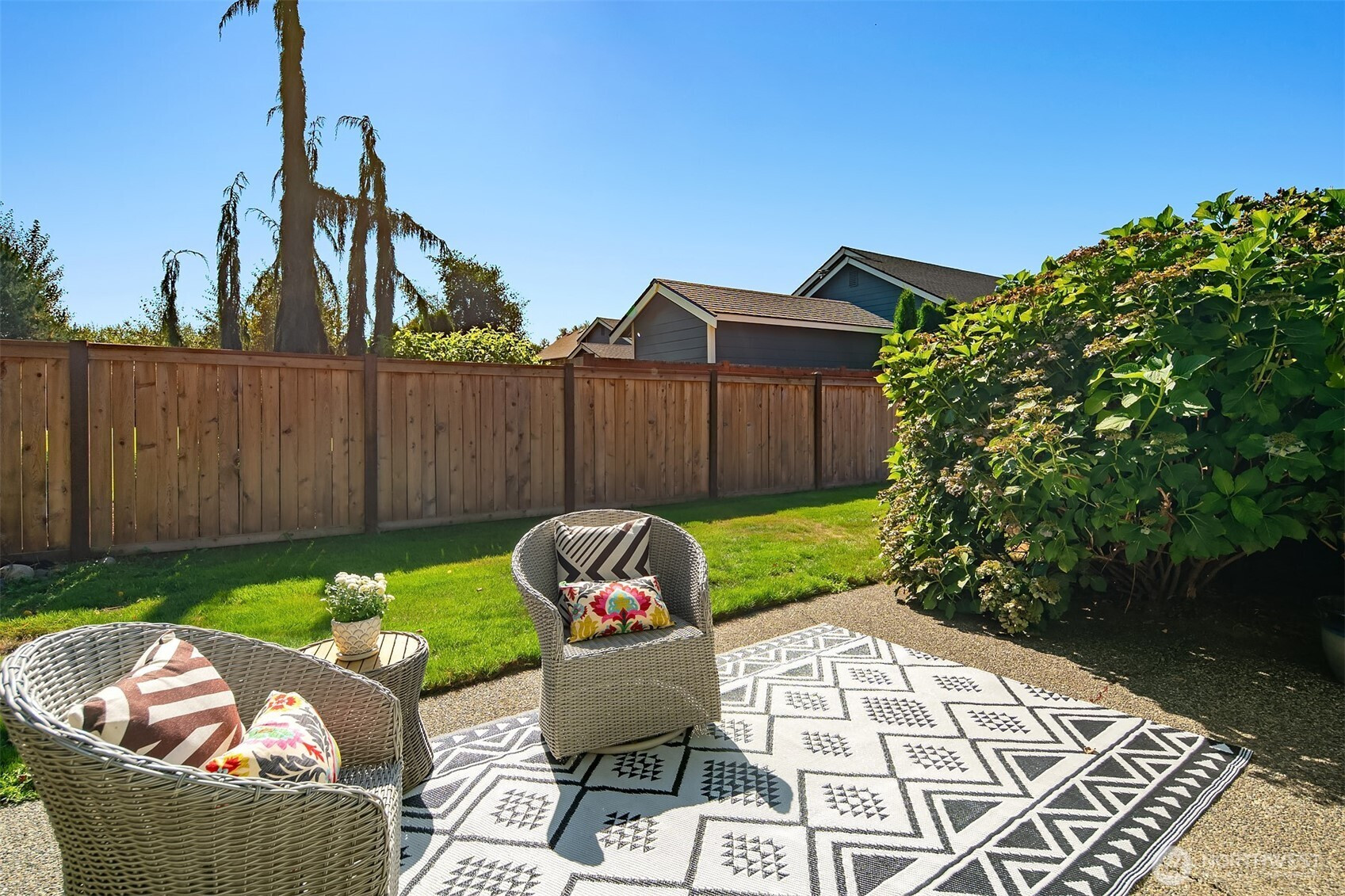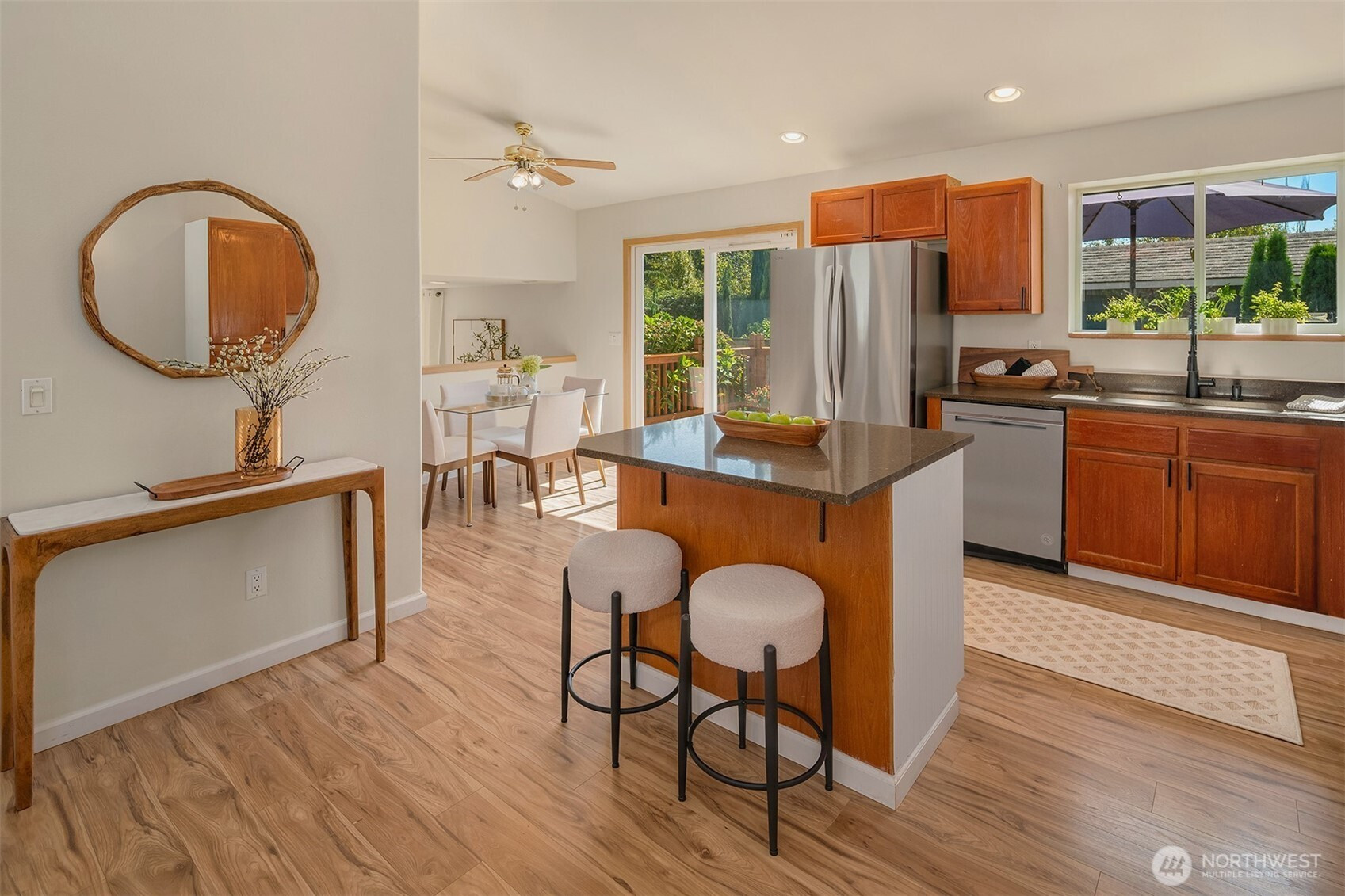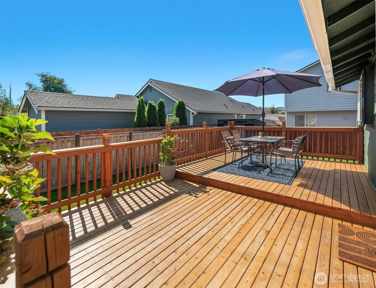 Price Reduced! Storybook charm & convenience await. Lovely tri-level home in the Fryeland's Mountain View community. Bright & inviting great room, vaulted ceilings, gas fireplace. Open-concept kitchen with sleek stone countertops. 3 spacious bedrooms, primary with peaked ceilings & ensuite. Spacious 2nd living space w/powder rm. Patio, oversized deck, outbuilding & a fully fenced yard with the 'just right' balance of play space & low maintenance. Prime Location: Quiet, tree-lined street adjacent to parks & miles of trails. Minutes to Lake Tye, Lords Lake, playgrounds, sports courts, schools, dining & easy commutes! 2025-New decking, fence, washer, fridge. 2022/23-New roof, exterior paint, LVP. Peace of mind-1yr home warranty, pre-inspected.