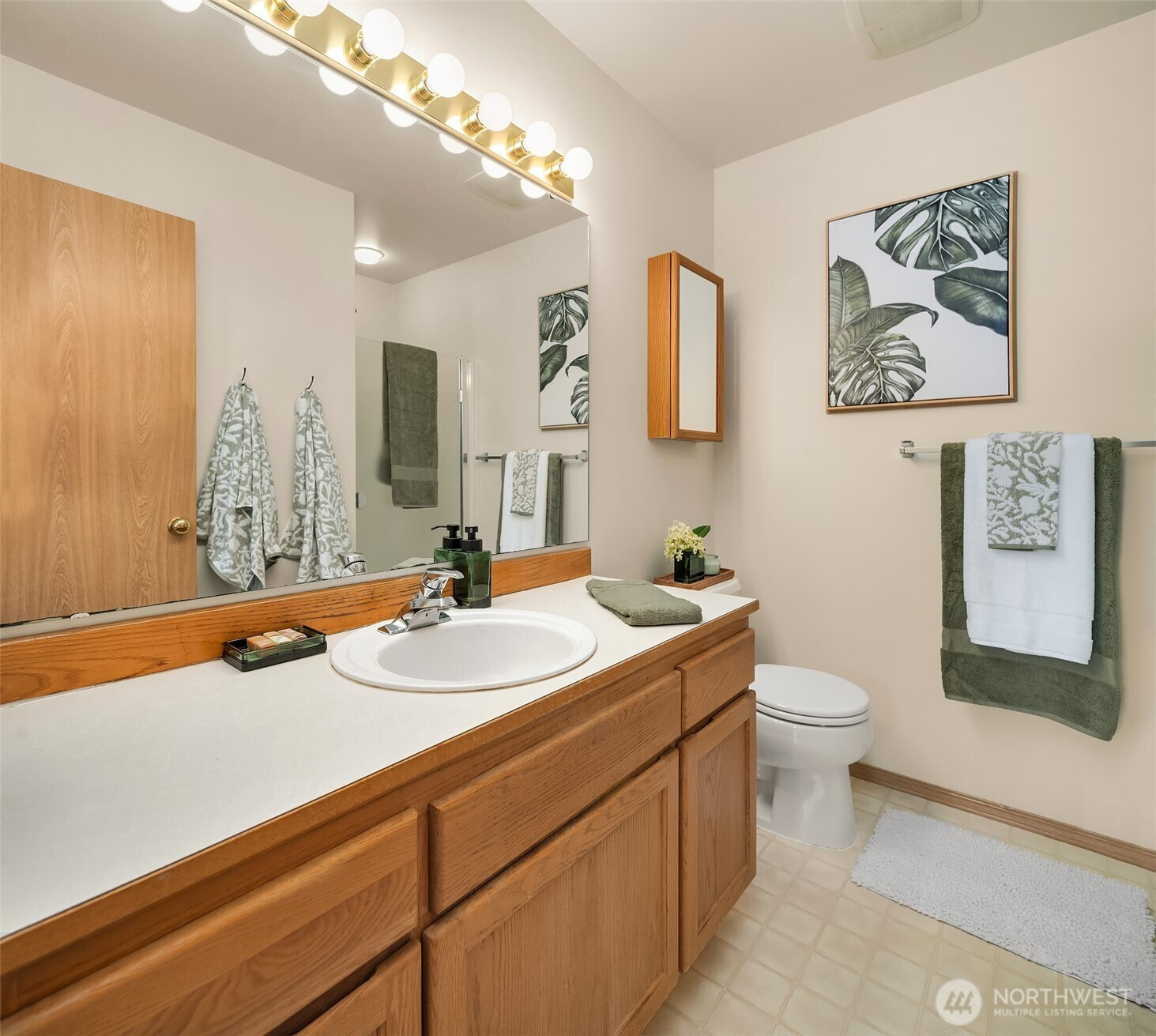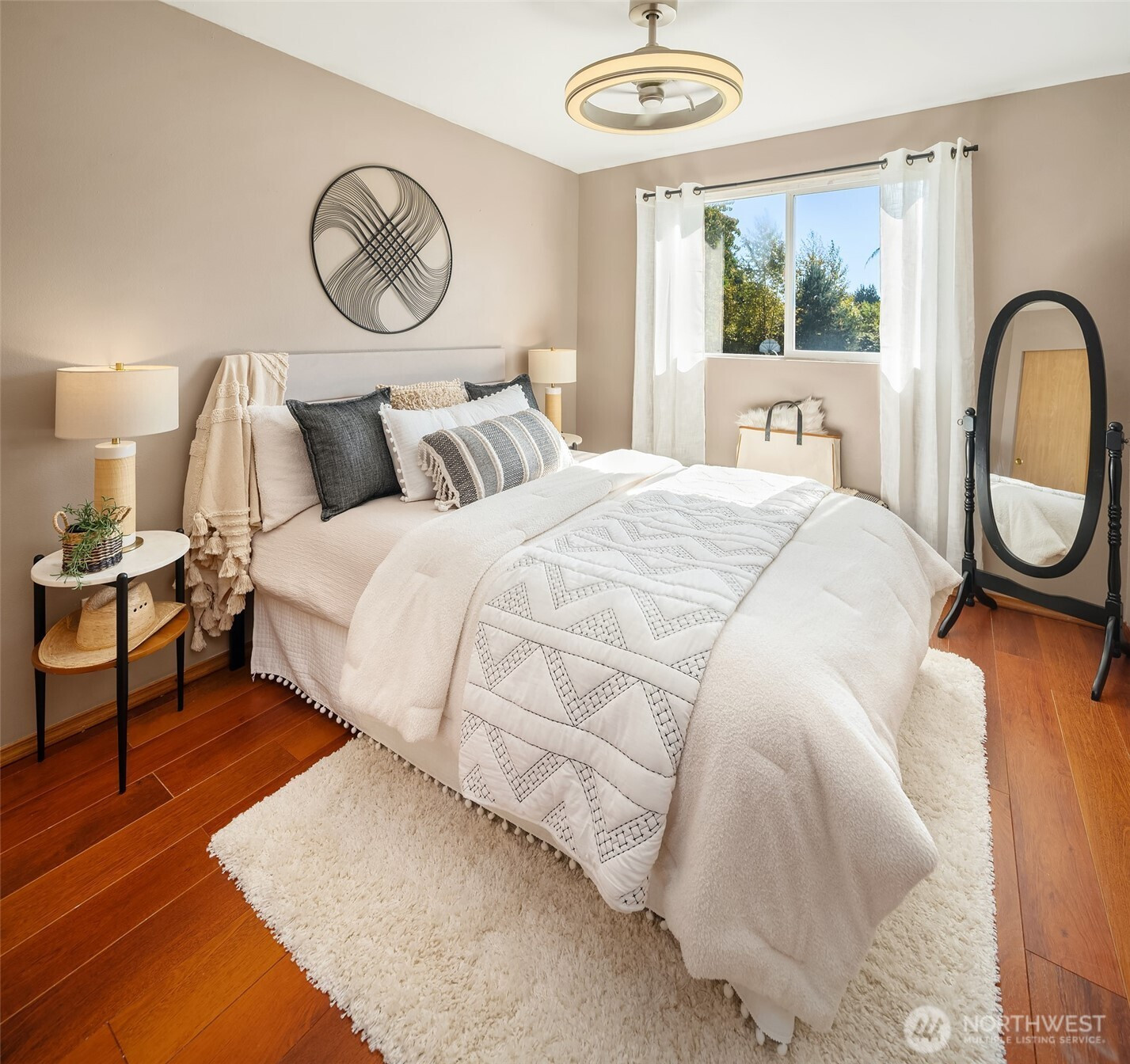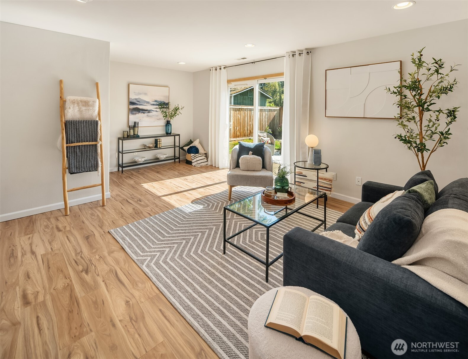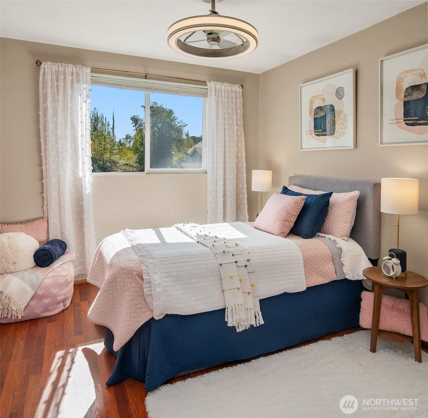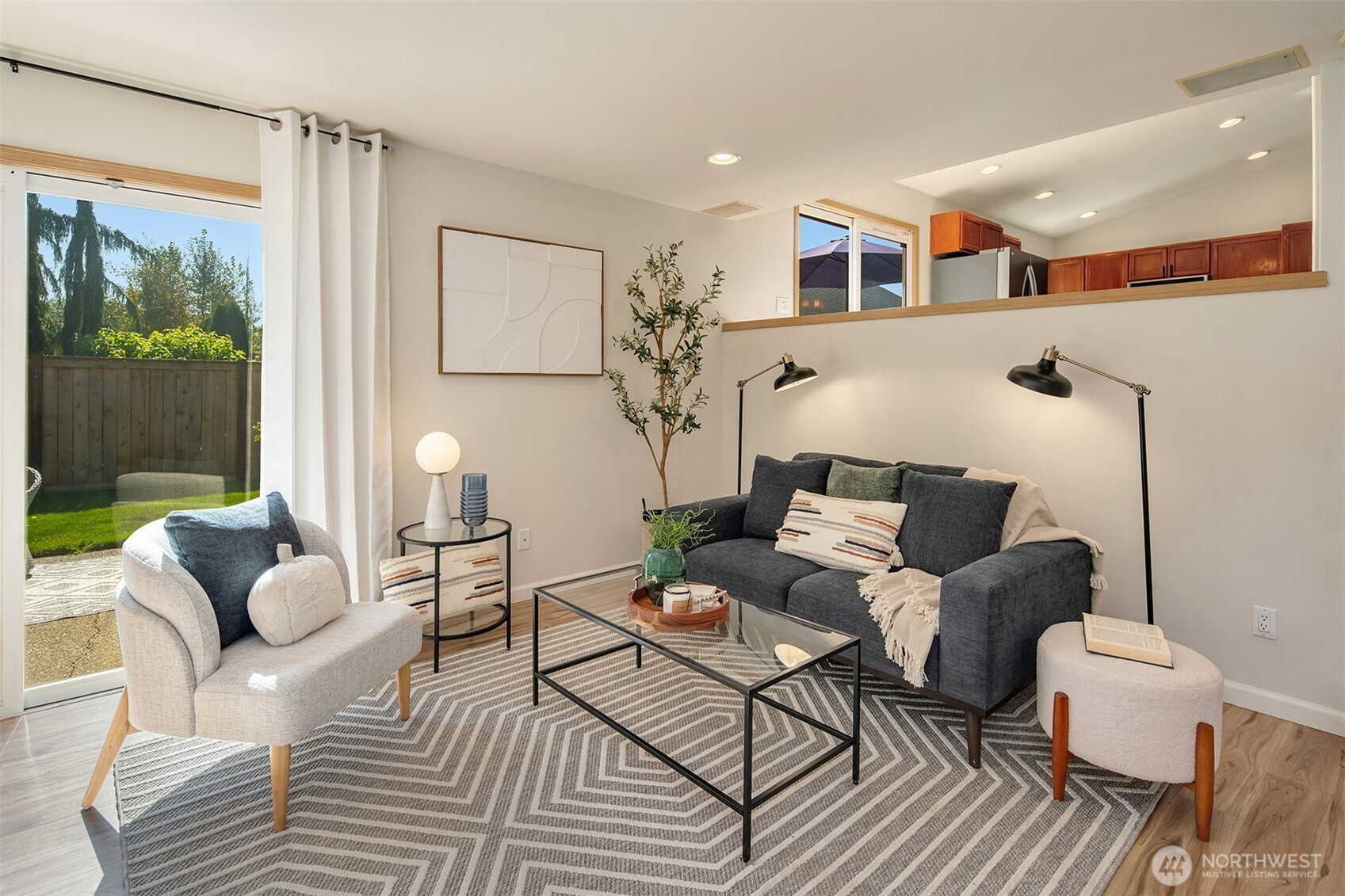 Price Reduced! Storybook charm & convenience await. Lovely tri-level home in the Fryeland's Mountain View community. Bright & inviting great room, vaulted ceilings, gas fireplace. Open-concept kitchen with sleek stone countertops. 3 spacious bedrooms, primary with peaked ceilings & ensuite. Spacious 2nd living space w/powder rm. Patio, oversized deck, outbuilding & a fully fenced yard with the 'just right' balance of play space & low maintenance. Prime Location: Quiet, tree-lined street adjacent to parks & miles of trails. Minutes to Lake Tye, Lords Lake, playgrounds, sports courts, schools, dining & easy commutes! 2025-New decking, fence, washer, fridge. 2022/23-New roof, exterior paint, LVP. Peace of mind-1yr home warranty, pre-inspected.