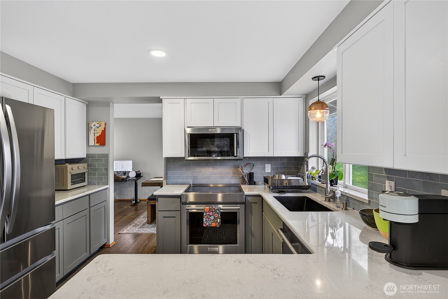 Welcome home to this beautifully updated and well-maintained property set on an oversized lot, just minutes from the new elementary school. Inside, you’ll find a bright, open-concept layout with durable flooring, fresh finishes, and a cozy living area anchored by a gas fireplace—perfect for everyday living and entertaining. The fully updated kitchen features quartz countertops, stainless steel appliances, modern cabinetry, and a breakfast bar that flows seamlessly into the dining and living spaces. Upstairs offers spacious bedrooms, including a generous primary suite with ample closet space, while additional rooms provide flexibility for guests, a home office, or hobbies. This home has been thoughtfully cared for with major updates including a new roof in 2019 and a brand new crawlspace, offering peace of mind for years to come. Step outside to your fully fenced backyard—ideal for pets, play, or hosting gatherings on the expansive deck. The large lot provides plenty of space to garden, relax, or create your own outdoor retreat. Additional highlights include a dedicated laundry area, attached garage, and ample parking. Conveniently located near parks, schools, and everyday amenities, this move-in ready home offers the perfect blend of updates, location, and livability.