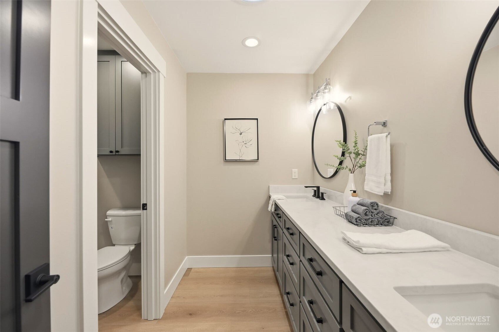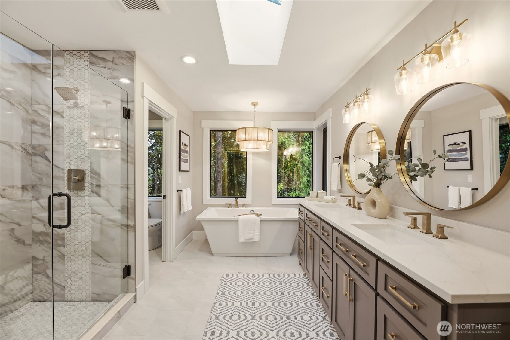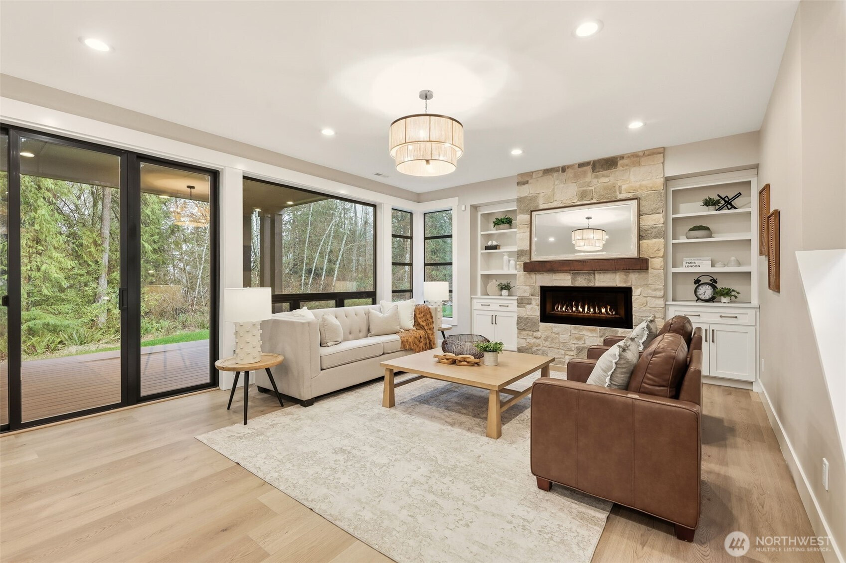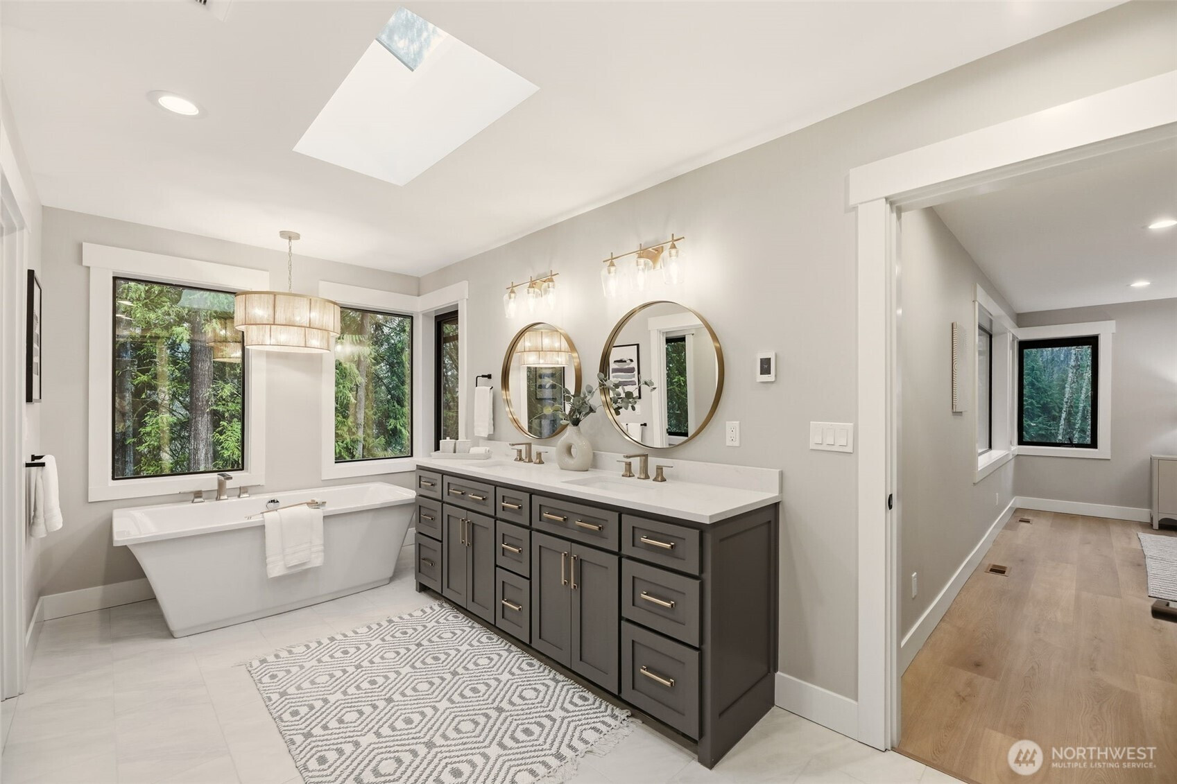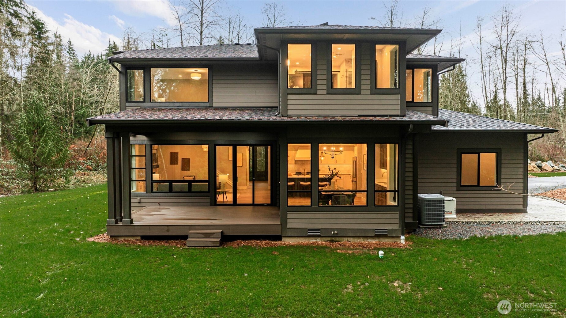Welcome to this beautiful new construction home with fully finished 3-car garage and epoxy flooring, whole house generator, Tesla universal charger, and RV/boat parking on a peaceful lot with acreage. Enjoy a welcoming mudroom with built-ins, and a bright dining room with wet bar and amazing forest views. In the family room, a natural gas fireplace is surrounded by beautiful stone work. The gourmet kitchen offers a walk-in pantry, quartz counters, and high-end finishes. The private office or bedroom on the main floor has French doors, storage space, and adjoining bath. Upstairs the spacious primary suite includes a spa-style bath with heated floors, freestanding tub, and a large walk in closet with custom closet cabinetry. Also upstairs is a bonus room perfect for a gym, studio, or playroom. The laundry room is filled with cabinets and a convenient utility sink. Gorgeous LVP flooring throughout! Property backs to public land for privacy and outdoor enjoyment. Approx. 10 minutes to Lake Stevens boat launch and about 30 to Boeing.