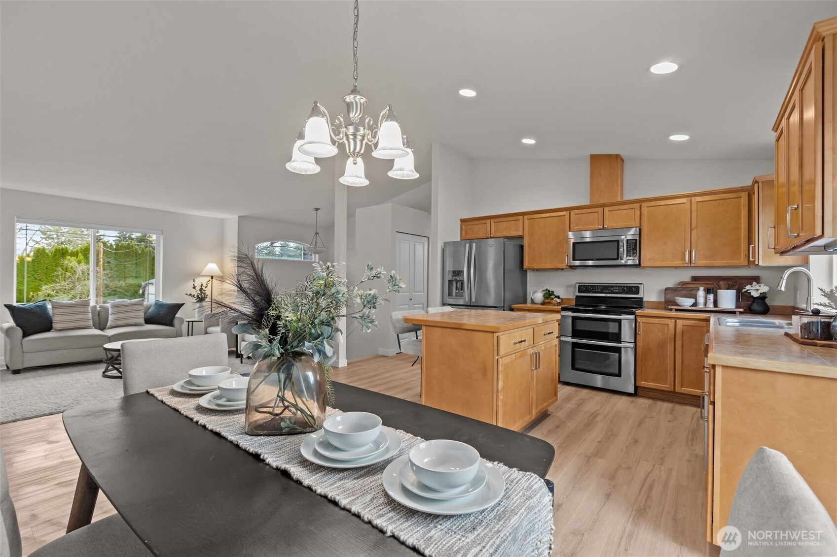 This beautifully refreshed 4 bedroom, 2.5 bath home offers 1,588 sq ft of living space on a spacious 6,099 sq ft lot – perfect for comfortable living in a quiet neighborhood. The bright, modern interior shines with fresh new paint throughout, all-new carpet and lvp throughout, refreshed bathrooms, and sleek new cabinet pulls. The kitchen features warm maple cabinets and stainless-steel appliances for a contemporary touch. Exterior upgrades include new exterior paint, brand-new garage door, professional roof/gutter cleaning, and revitalized landscaping for instant curb appeal. Recently serviced furnace ensures worry-free comfort. Turnkey and ready for you – no projects needed! Conveniently located near parks, amenities, and commuter routes.