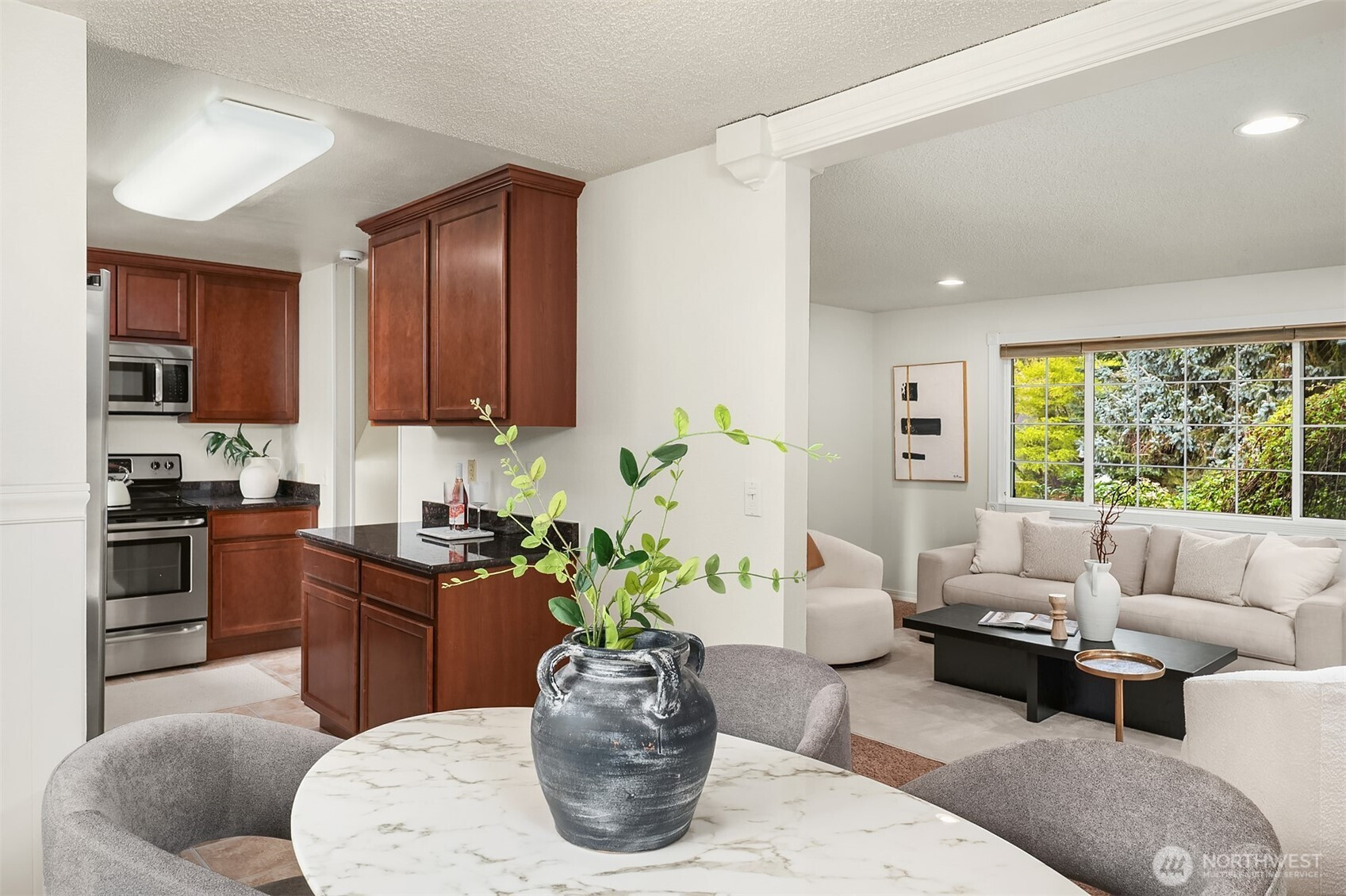 Updated and charming, this 3 bed, 1.75 bath home in Bothell's sought-after May Ponds community checks every box! Enjoy the neighborhood pool, clubhouse, and a brand new community park right across the street. Inside, fresh interior paint and a wood-burning fireplace set the tone in the main level family room, while the kitchen is complete with granite countertops and stainless steel appliances. All three bedrooms are conveniently located upstairs, including the primary, plus a full bath. The lower level offers incredible flexibility with a bonus room perfect for a home office, gym, lounge or craft space, plus laundry and a half bath. Step outside to hardscaped patios ideal for entertaining, overlooking a private grass backyard with garden beds and a fire-pit area. Minutes to Mill Creek Town Center, top schools, shopping, and easy commute access.