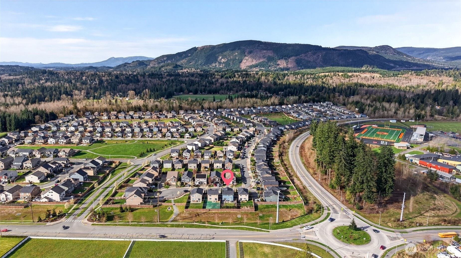 Spread out in bright, well-cared-for home situated in quiet, and coveted cul-de-sac in the convenient Suncrest Farms neighborhood. Enjoy this immaculately maintained property featuring a comfortable open-concept living space, a main-floor den/office, A/C and mint-condition LVP flooring throughout the entire home - ideal for those w/ pets or allergies. Great room is anchored by new, custom built-ins and a modern fireplace, leading out to a sunny, landscaped, private backyard. Kitchen offers S/S appliances, pantry food storage, ample counter space, and the ability to easily host sunset meals on the patio or BBQ steps from your kitchen. Mature, landscaped backyard is summer-ready for badminton, slip-in-slides or pet play. Wonderful layout upstairs features a convenient laundry room and 4 bedrooms, including the primary suite with an en-suite bathroom and a generous walk-in closet. Minutes from walking trails, Granite Falls restaurants and shops, schools and backdoor access to hiking in the gorgeous Cascade foothills. Plus! Quick access to HWY 92 for commuting. Pre-inspected, turn-key and ready for new owners to enjoy this outstanding neighborhood!