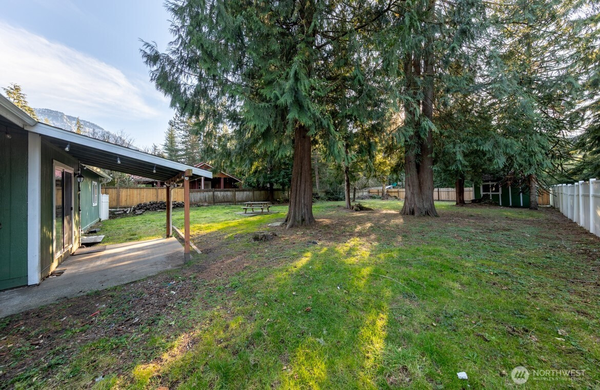 NEW Carpets and updates! Quiet and Private Gold Bar Rambler right by Skykomish River and boat launch/ trails. Simple layout with 3 Bed, 1.75 Bath (4th Bedroom/Office). LVP Floors, Newer Roof, updated windows. The Kitchen futures SS Appliances, Soft Close Cabinets, Quartz Counters, with built in wooden breakfast bar. East facing home with circular driveway which provides lots of parking/ RV parking. Large back yard, .27acres with covered back Porch/ patio, Fully Fenced yard with shed. Conveniently close to Gold bar shopping. Pre-inspected with a good report!