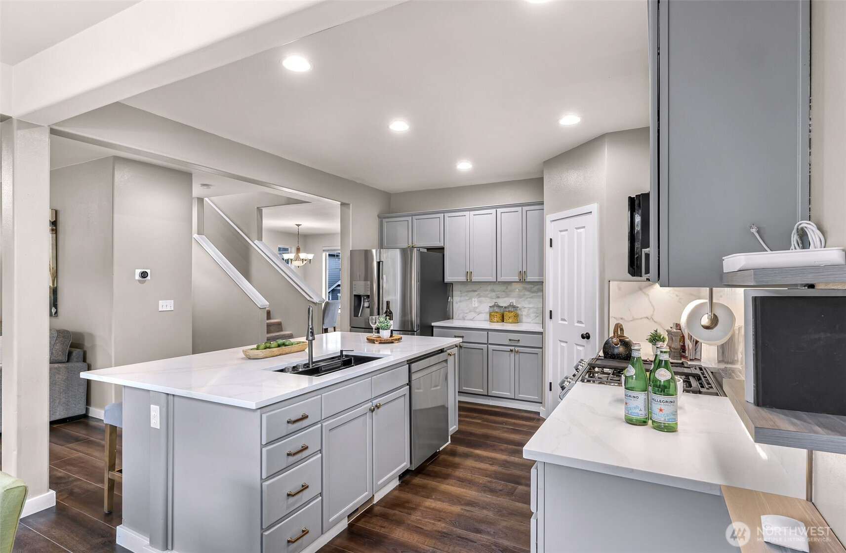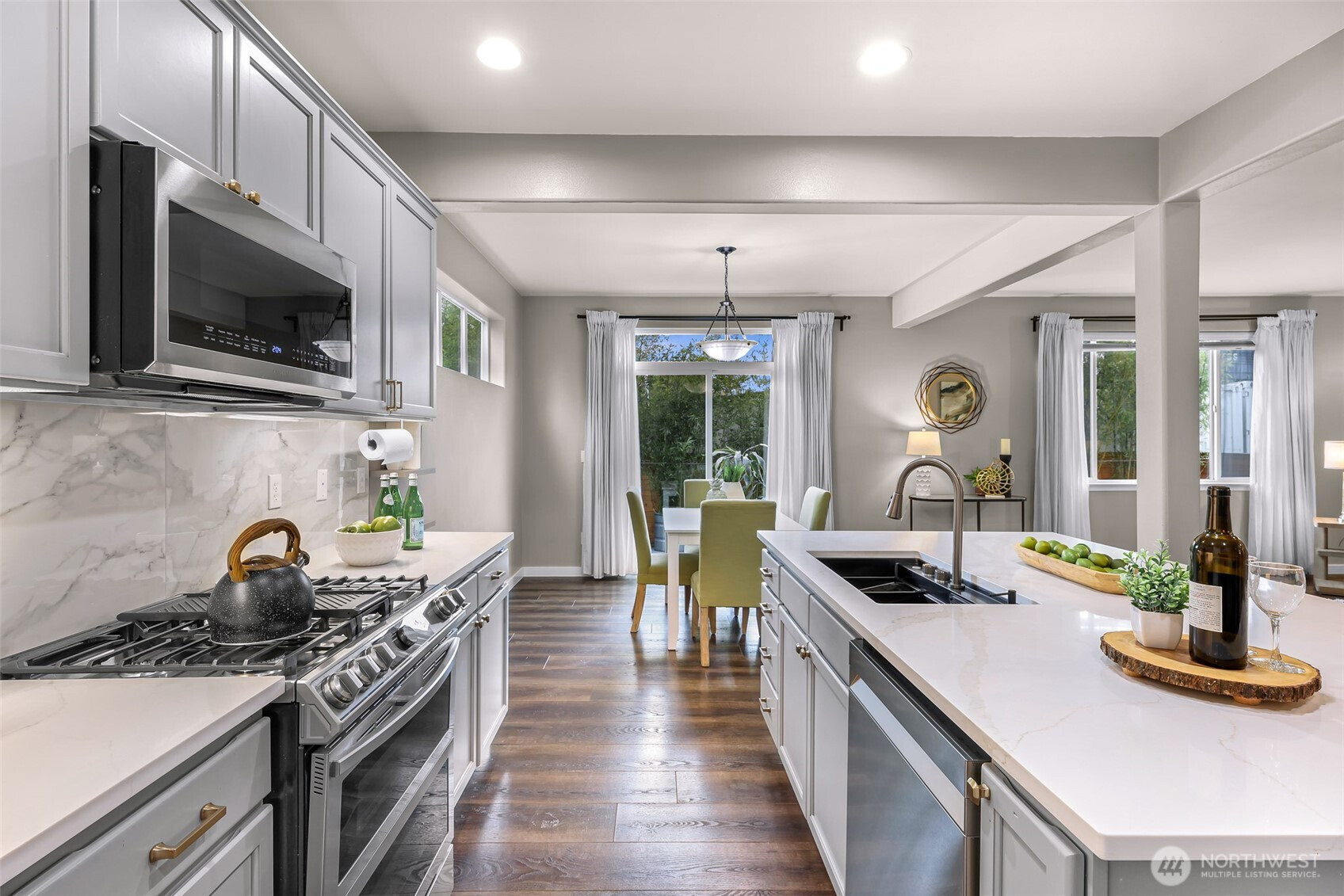 (503) 893-8874Tucked in the heart of Bothell, this inviting east-facing home offers warmth, light, and thoughtful updates throughout. The remodeled kitchen features elegant cabinetry, high-end counters, and stainless steel appliances—perfect for gathering and creating memories. Fresh carpet and updated hardwoods add comfort and flow, while new tile brings a modern touch to the bathrooms and laundry room. Equipped with commercial-grade electrical infrastructure, including a 110 kV transformer and 400 AMP 2-phase service, it’s ideal for EV fast chargers or high-demand systems. A peaceful bamboo-framed yard and epoxy-finished three-car garage complete this cared-for home.