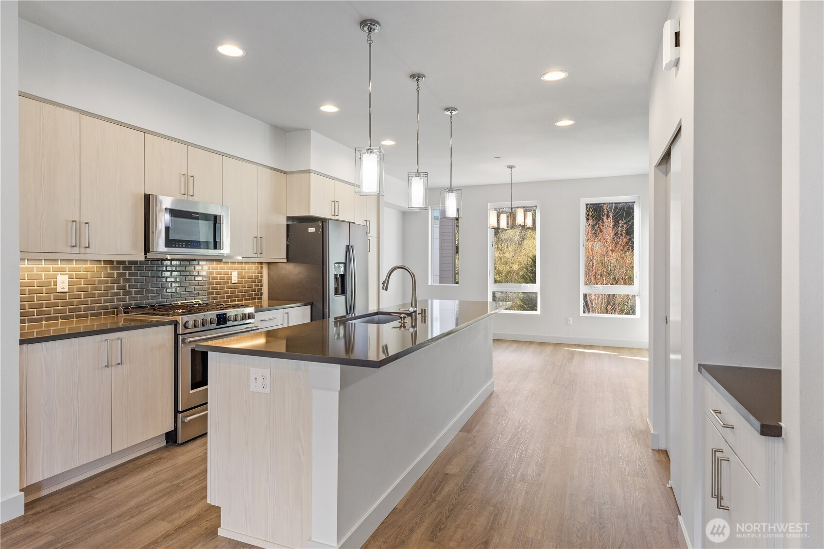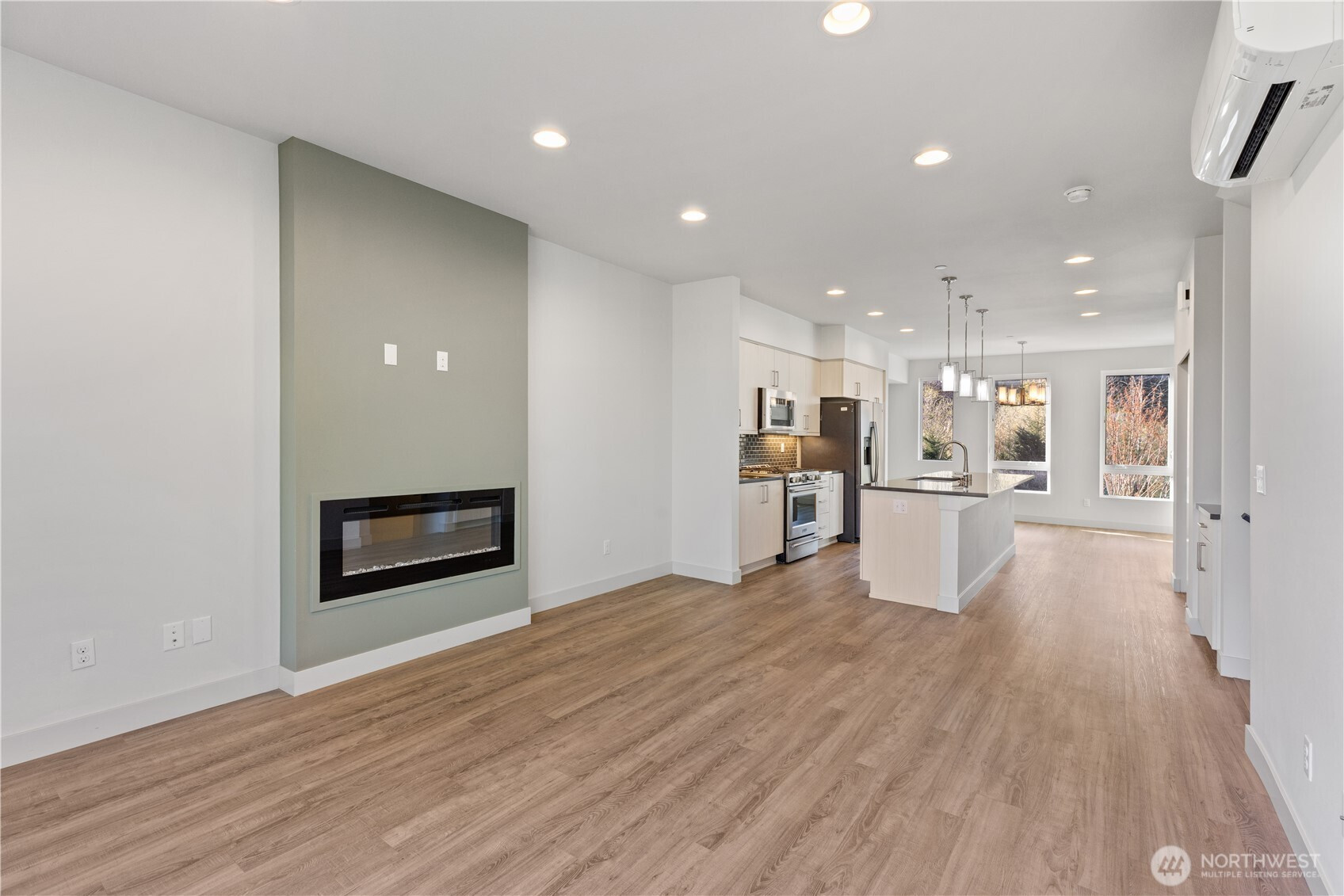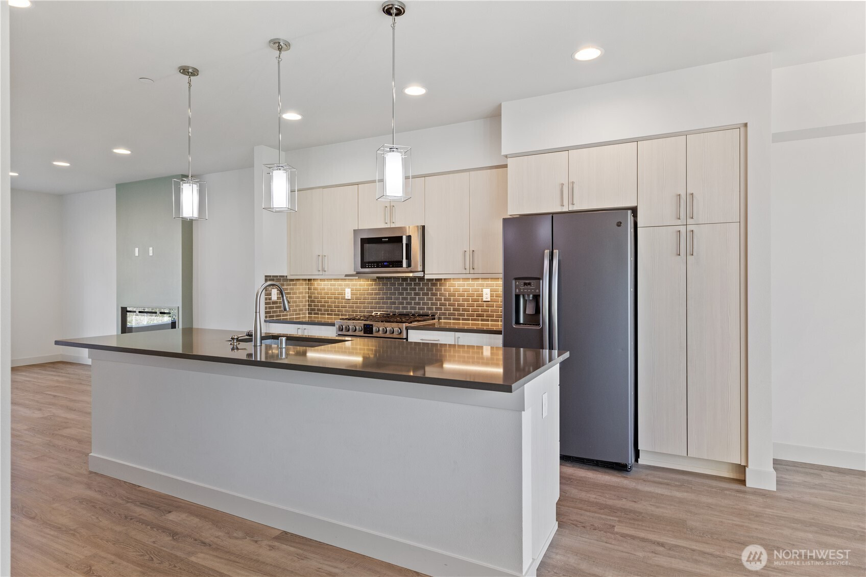Modern, Like-New Fee Simple Townhome Steps from Tambark Creek Elementary Experience modern comfort in this beautifully maintained 3 bed, 2.5 bath townhome, ideally located just a short walk from top-rated Tambark Creek Elementary. Thoughtfully designed with quality craftsmanship and upscale finishes, this home offers both style and functionality. The bright, open living area features a SimpliFire Allusion electric fireplace with customizable LED flame and ember settings, paired with an energy-efficient heat pump for year-round comfort. The gourmet kitchen includes quartz slab countertops, a full-height tile backsplash, stainless steel Frigidaire appliances, and elegant Belmont cabinetry with under-cabinet lighting—perfect for everyday cooking and entertaining. Upstairs, the spacious primary suite includes a generous walk-in closet, while two additional bedrooms provide flexibility for guests, work, or hobbies. The rare 607 sq. ft. tandem 2-car garage comes equipped with a built-in EV charger, supporting convenient, eco-friendly living. Move-in ready and designed for today’s lifestyle, this home offers the privacy and long-term benefits of fee-simple single-family ownership—not a condo