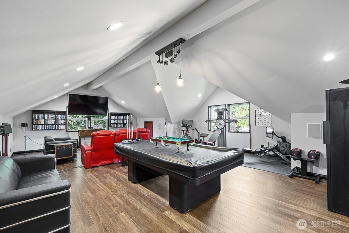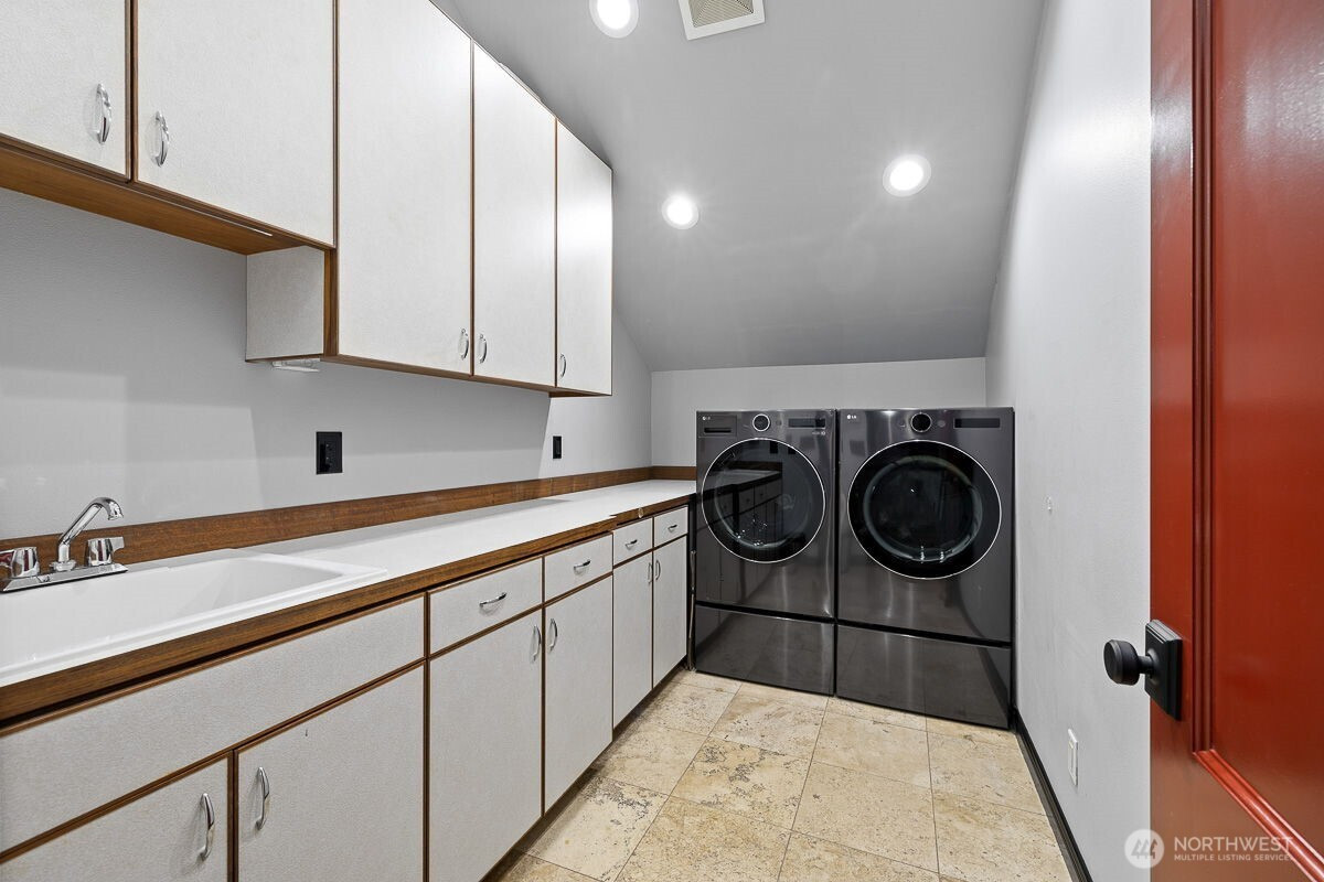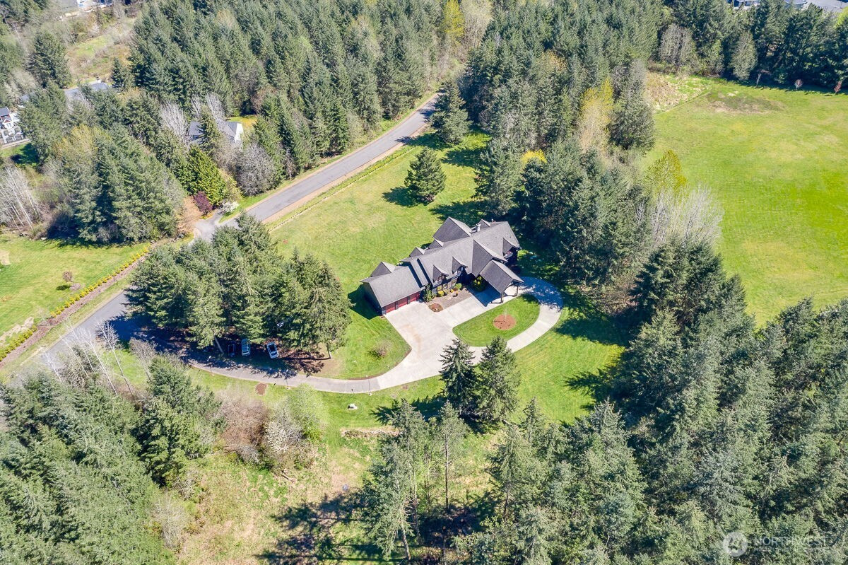 Two-story 6594 sq ft estate on approx. 5.4 acres with a grand circular drive that forms a loop in front of a home, allowing vehicles to enter and exit without needing to turn around and a covered front entry drop off area. This estate home features 6 bedrooms and 5.5 bathrooms with two primary suites, including one on the main level. Interior includes Bolivian Momoqui exotic hardwood flooring, glass stair banister, handmade chandelier, and a bonus game room. The kitchen offers double islands, walk-in pantry, two Miele dishwashers, and new disposal. Home upgrades include brand new central heating and A/C, ultraviolet air scrubbers, whole-house LED lighting system, and integrated whole-house stereo system. Both primary bathrooms include heated floors and upgraded shower systems. Additional features include meticulously designed wine cellar with ambient lighting, four smart toilets (two with bidets), custom shelving in both primary suites, and hidden LED lighting under step down to the living room. Helps provides modern subtle lighting. Property also includes TESLA wall charger, 20KW automatic whole-house generator, new Wi-Fi garage door openers, new security system, solar-powered driveway lighting, and Wi-Fi washer and dryer, and RV Hookup. Approximately 5.5 miles to downtown Granite Falls amenities and access to Mountain Loop Highway recreation corridor.