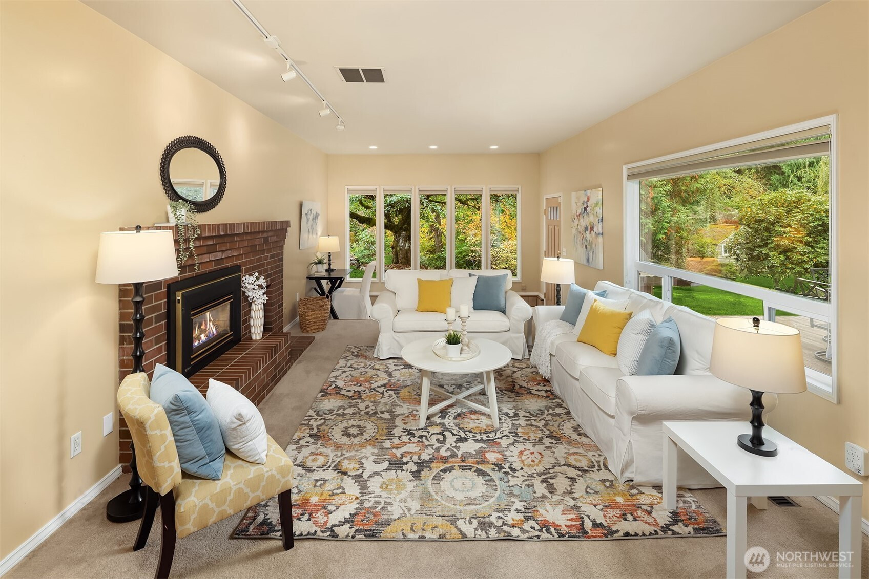 Beautiful, serene setting for this hard to find rambler on a shy acre in sought after Clearview! The property features attached two-car garage, plus a fantastic 30 x 40 sq ft heated detached shop, a full-sized covered RV pad & an additional outbuilding—ideal for storage or hobby space. Updated floorplan has a living room featuring a cozy gas fireplace w/ brick surround. Bright kitchen & open dining area. Primary bedroom has a huge walk-in closet & attached .75 bath. Entertain on the large, private deck overlooking the seasonal creek! New gas furnace, vinyl windows. A secluded yet convenient retreat nestled in nature, just minutes from Mill Creek, Woodinville and top-rated Snohomish Schools. You’ll love the peace & comfort this home offers!