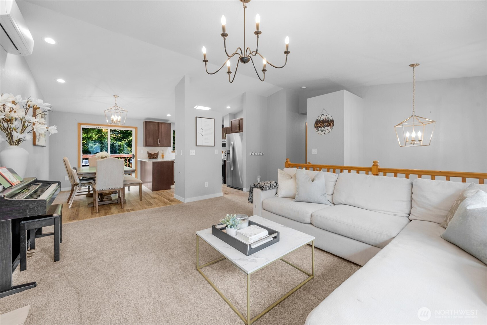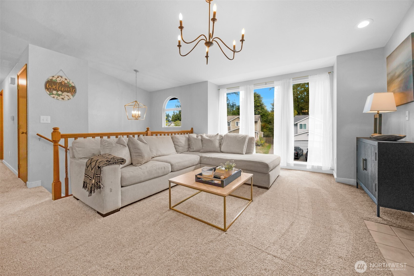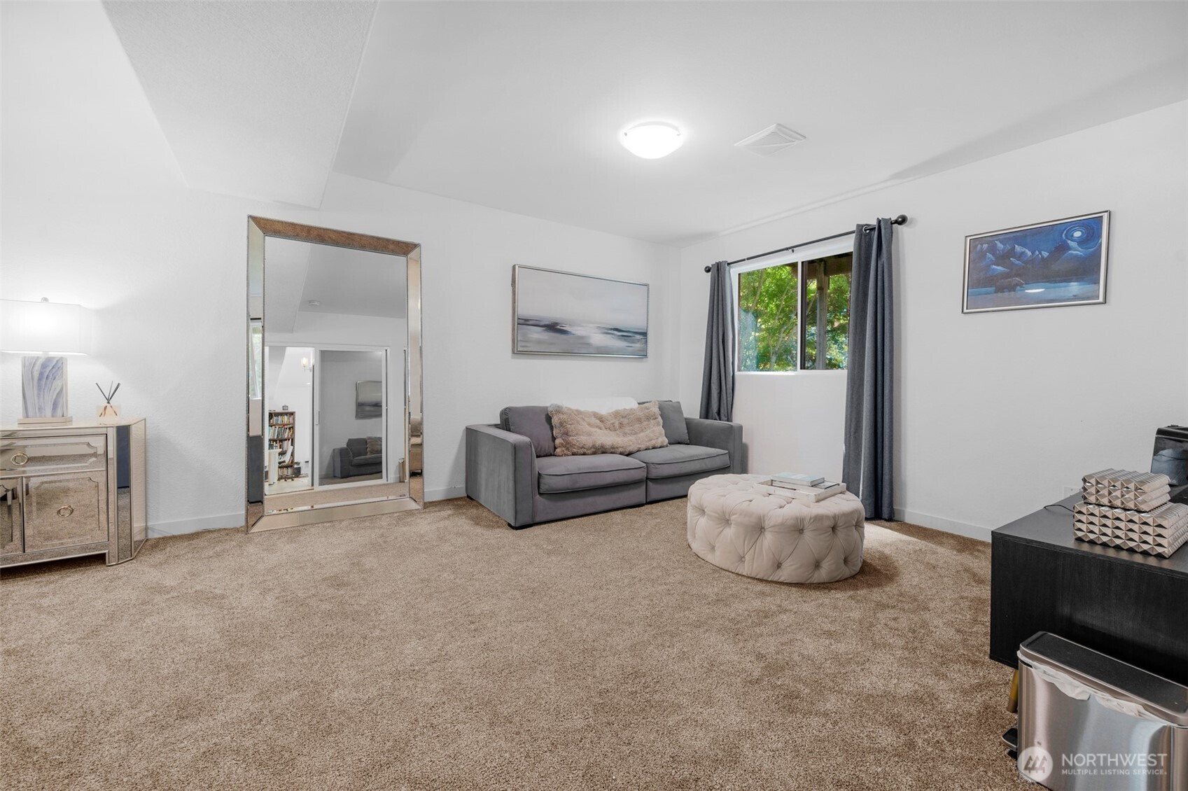Just steps from the Centennial Trail, Frisbee Park, Boat launch, The Mill Town Center & the Lake! This private creekside setting has trees as your backdrop. Upper level features an updated kitchen with skylights, newer marble countertops, cabinets & newer appliances. The great room has vaulted ceilings with floor-to-ceiling windows & a gas fireplace. Large primary suite, 2 full baths & 2 additional bedrooms up stairs. Lower level lives large! 2nd primary/bedroom with sitting area has ADU potential. A nice size bonus room leading out back & 3/4 bath. 3 living areas! Newer roof, carpet & fixtures—move-in ready! Located in a cul de sac. Large terraced yard backing to NGPA & the creek. You can't beat the location! New mini splits for AC & heat!