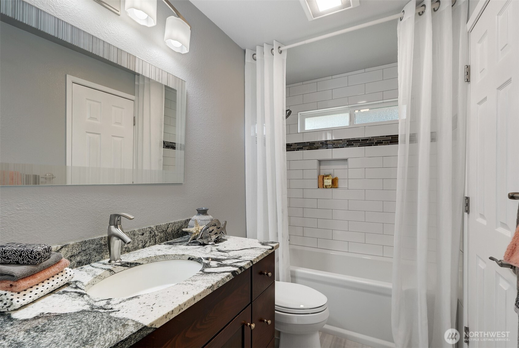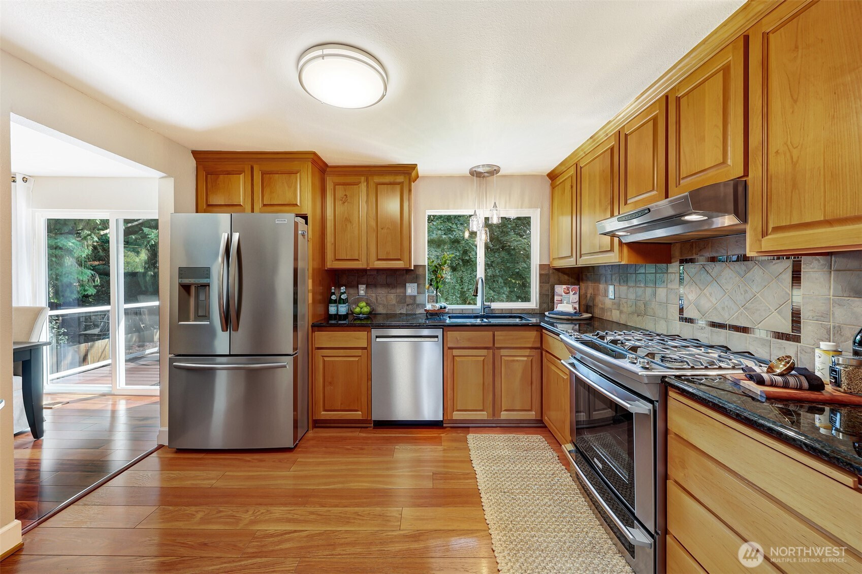 Beautifully updated and move-in ready, this lovely home in the coveted Edmonds school district offers stylish comfort and everyday convenience. Enjoy gorgeous Brazilian hardwood floors, a fully remodeled kitchen with modern finishes, stone counters, and stainless appliances, plus beautifully remodeled bathrooms. This home features not one but two spacious living areas - one upstairs, one down - and both have a cozy gas fireplace. Downstairs, an additional flex room is perfect for a home office or 4th bedroom (with closet). Stay comfortable year-round with efficient tankless water heater & central AC! Outside features a sunny upper deck, expansive lower poured concrete patio, and vibrant, mature gardens & trees, creating a true outdoor oasis for gardeners and entertainers alike. Fully fenced and secure for your pets, and has room for an RV or boat parking as well as a basketball hoop! Located on a dead-end street (no through traffic!) close to transit, top-rated grocery, restaurants, & shops - this home truly has it all. Even a brand new roof installed in 2025 and a security system for peace of mind. Welcome home!
