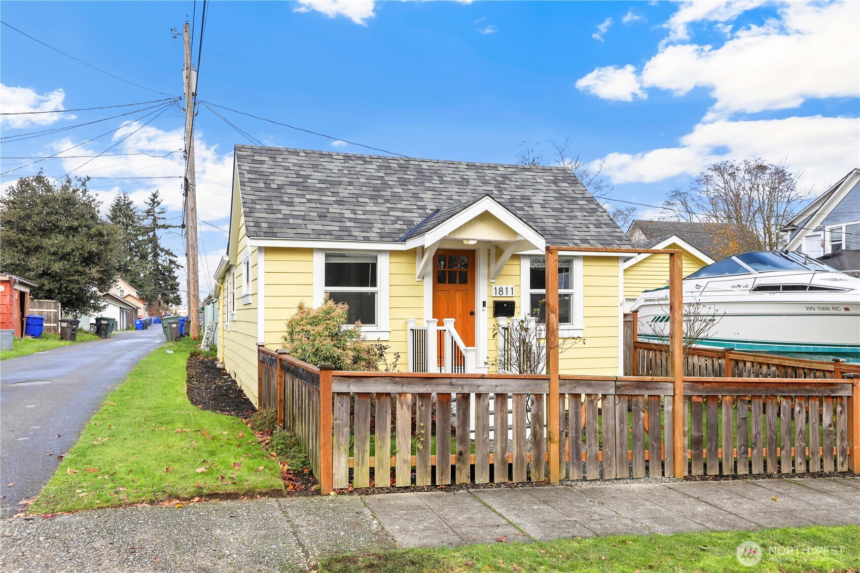 Charming 1910 Craftsman bungalow brimming with warmth and character! Perfectly positioned on a sunny corner lot in the heart of Everett—steps to downtown, across from picturesque Clark Park, & near all schools—yet tucked into a peaceful, tree-lined neighborhood. This light-filled home features fresh exterior paint, new windows and siding, new insulation, new plumbing, new electrical, bamboo & tile floors, a spacious kitchen w/darling dining nook, pantry, and all appliances included. Enjoy a whimsical laundry room, two generous bedrooms, & easy indoor-outdoor flow. Fully fenced property w/oversized one-car garage, shop space, and ample parking for RV/boat. Listed as a condo due to lot size, but truly a standalone single-family home—no HOA!"