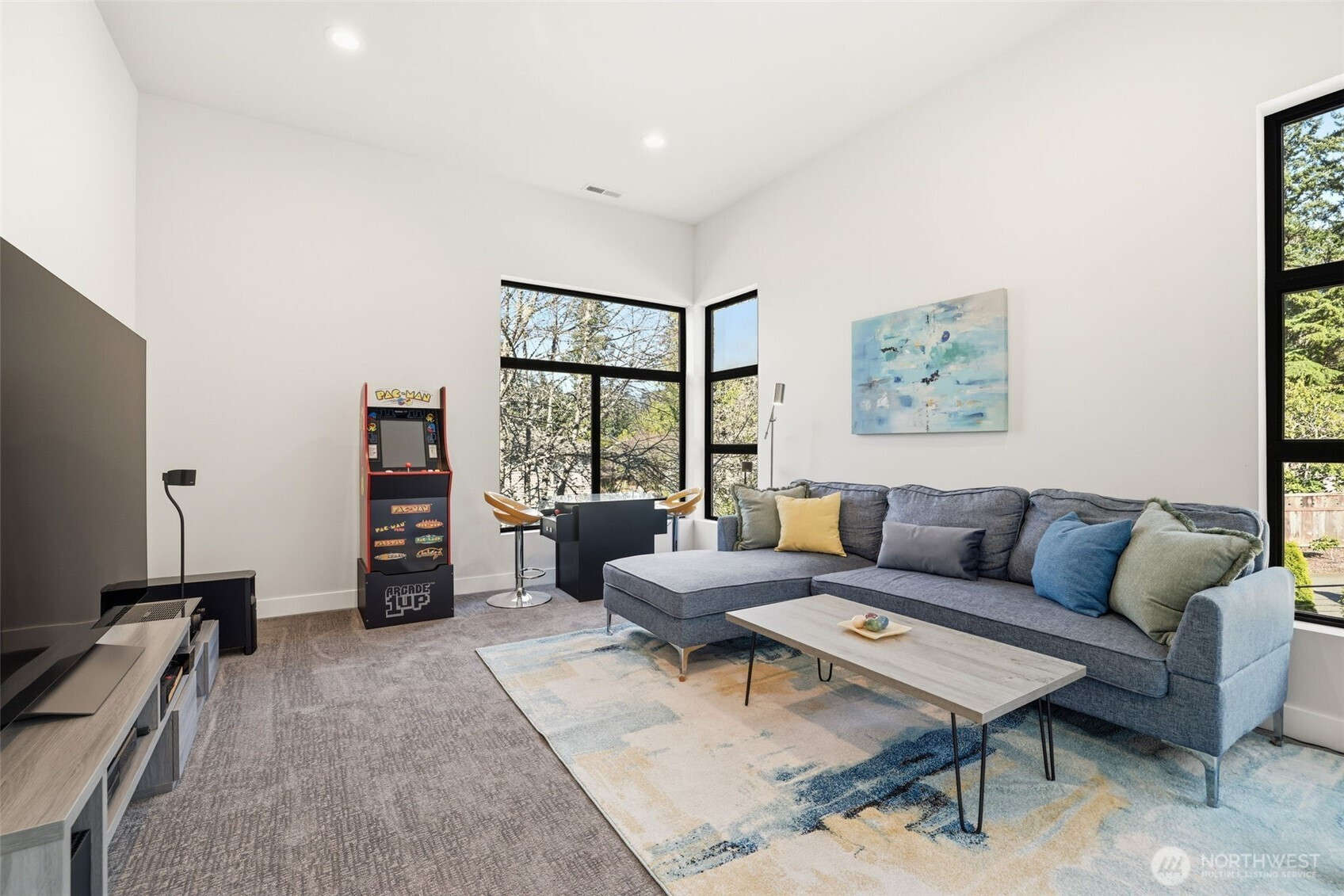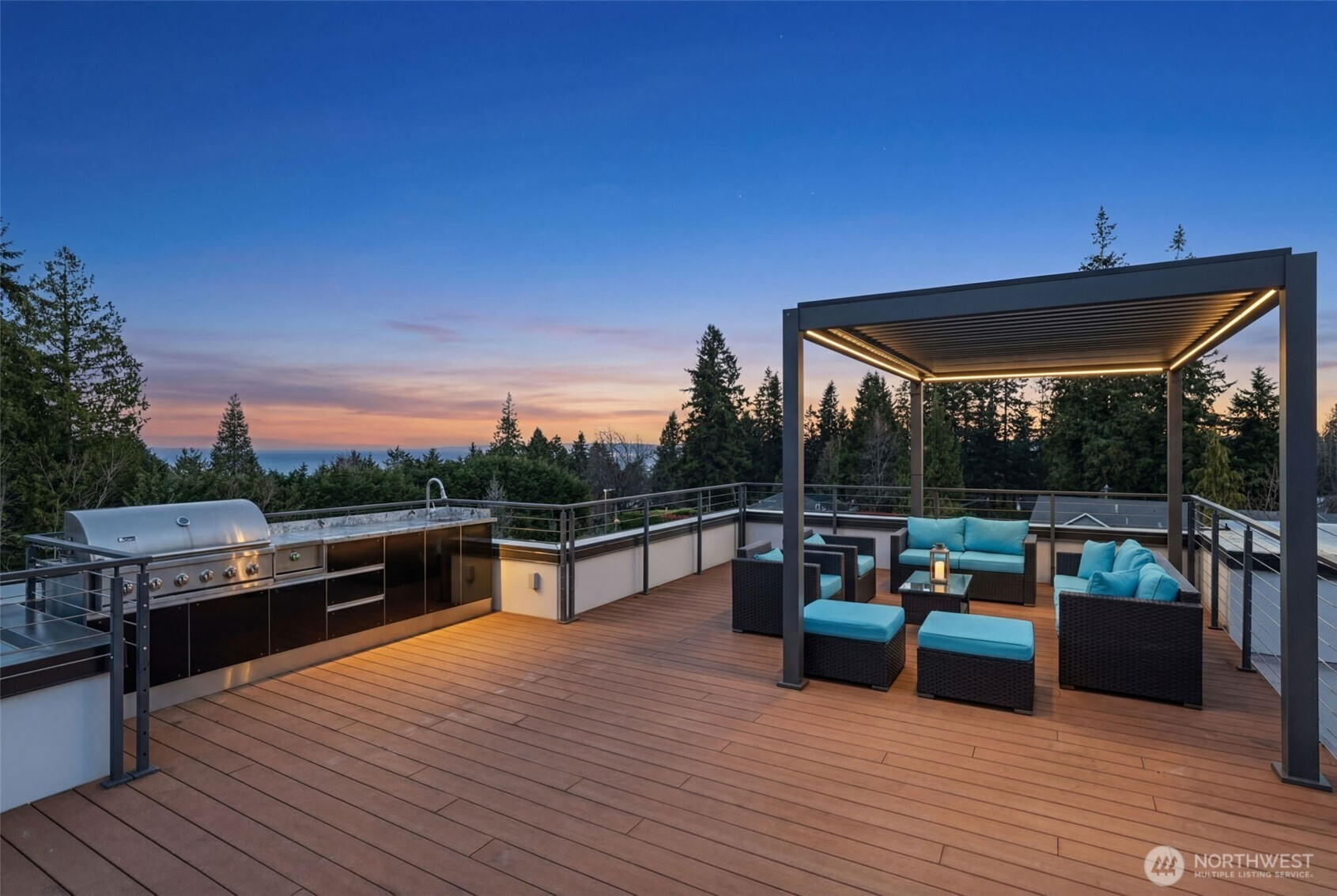 Modern elegance meets effortless living in this light-filled 2020-built home in Seaview. A spacious open-concept layout centers around a stunning great room and chef’s kitchen, complemented by a thoughtfully placed interior wet bar for seamless entertaining. Walls of glass invite natural light throughout, enhancing the home’s clean, modern design. Folding doors open to a covered deck, extending the living space outdoors with ease. Above, the rooftop deck with built-in BBQ captures sweeping views of Puget Sound, the mountains, and unforgettable sunsets. Five bedrooms offer flexibility for rest, work, or guests. An attached 3-car garage with EV charging adds convenience. Located moments from parks, this home offers a refined blend of style, comfort, and connection to its surroundings.