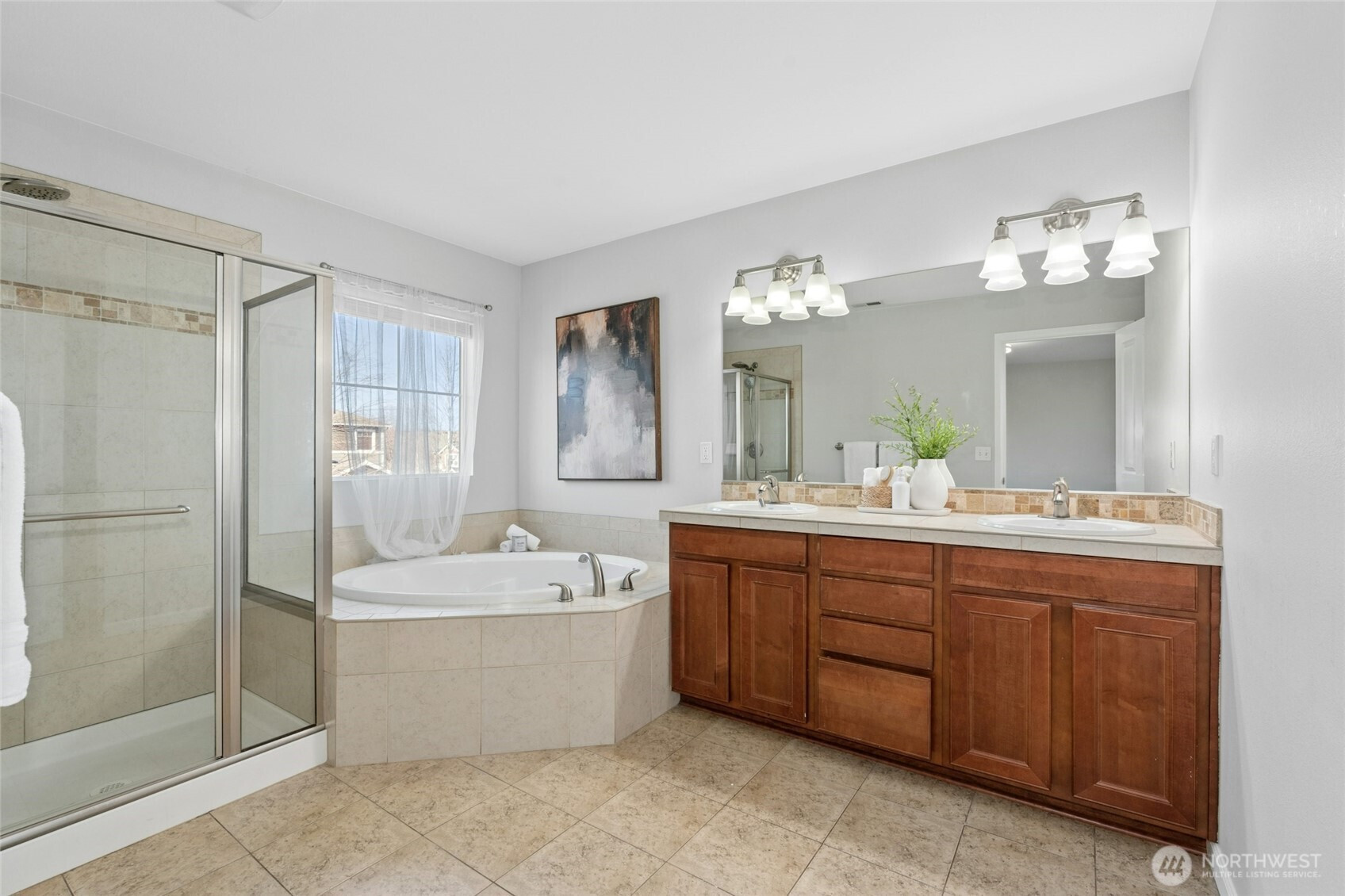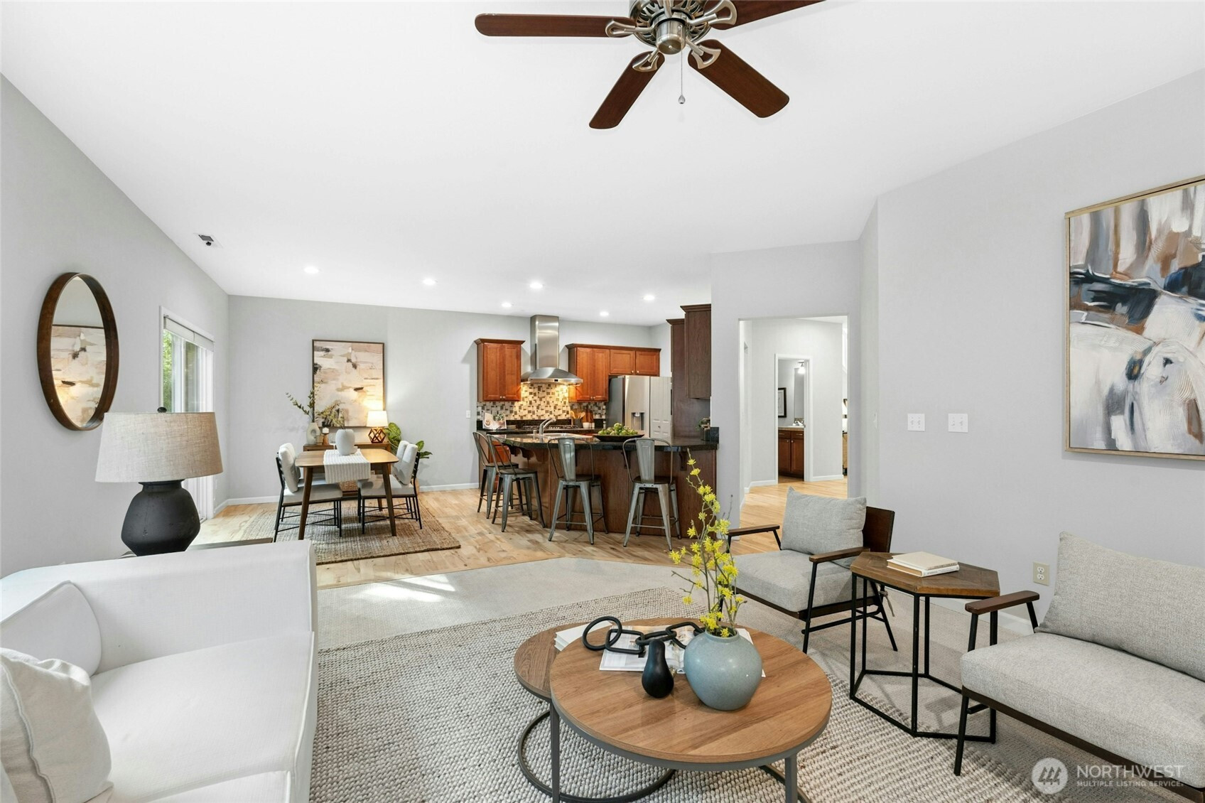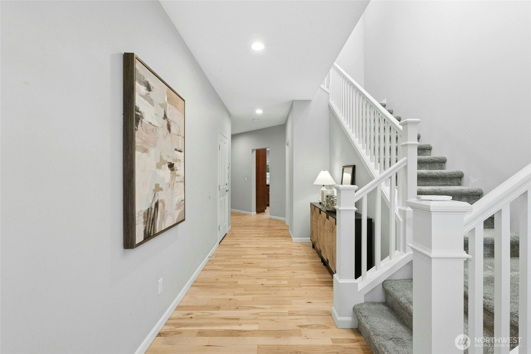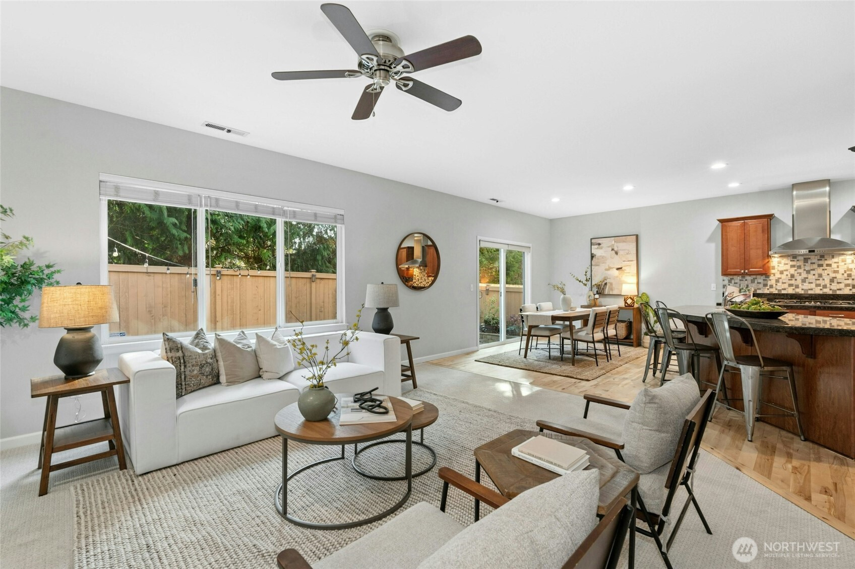 Welcome to this beautifully maintained 5-bedroom, 2.75-bath home offering 2,476 sq ft of comfortable living in the highly sought-after Northshore School District. Nestled in the Laurelcrest community by D.R. Horton, this residence blends thoughtful design with modern finishes and a peaceful setting. Backing to a secluded green space, the home offers privacy and tranquil views. Inside, you’ll find an open-concept layout ideal for everyday living and entertaining. Extended hardwood floors, granite tile countertops, and stainless steel gas appliances highlight the well-appointed kitchen, which flows seamlessly into spacious living and dining areas. Upstairs, the generous primary suite features a luxurious five-piece bath and dual walk-in closets, creating a true retreat. Three additional bedrooms and flexible living space provide room for guests, work, or play. Located in the desirable Laurelcrest neighborhood, residents enjoy access to a 1.5-acre community park, athletic court, and pea patch. With a fully fenced yard and mature landscaping, this home offers the perfect balance of comfort, community, and convenience in a prime Bothell location.