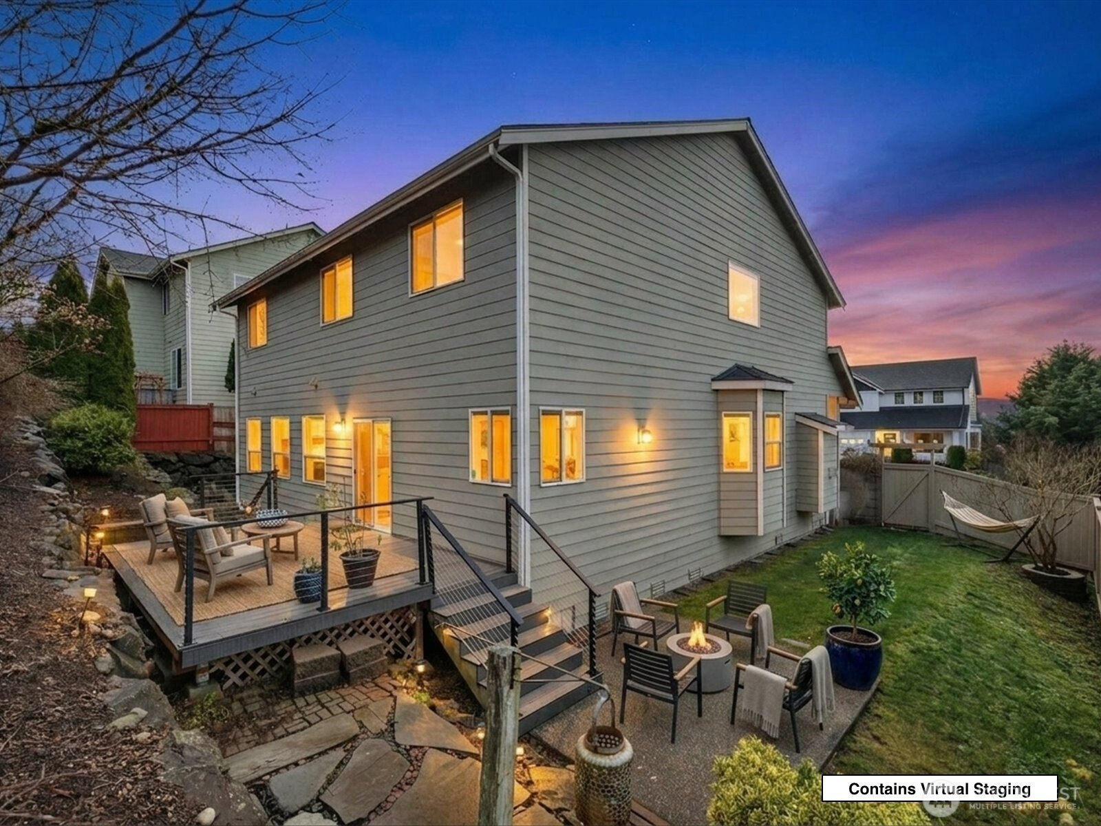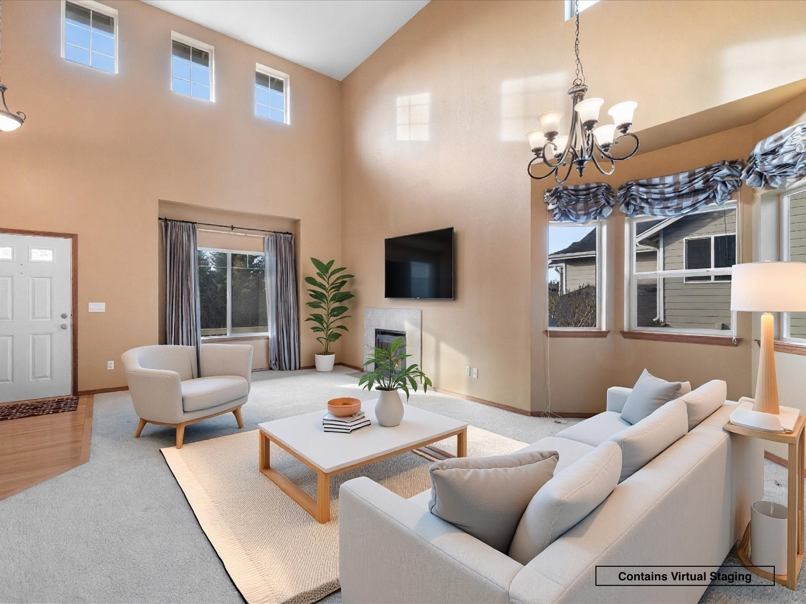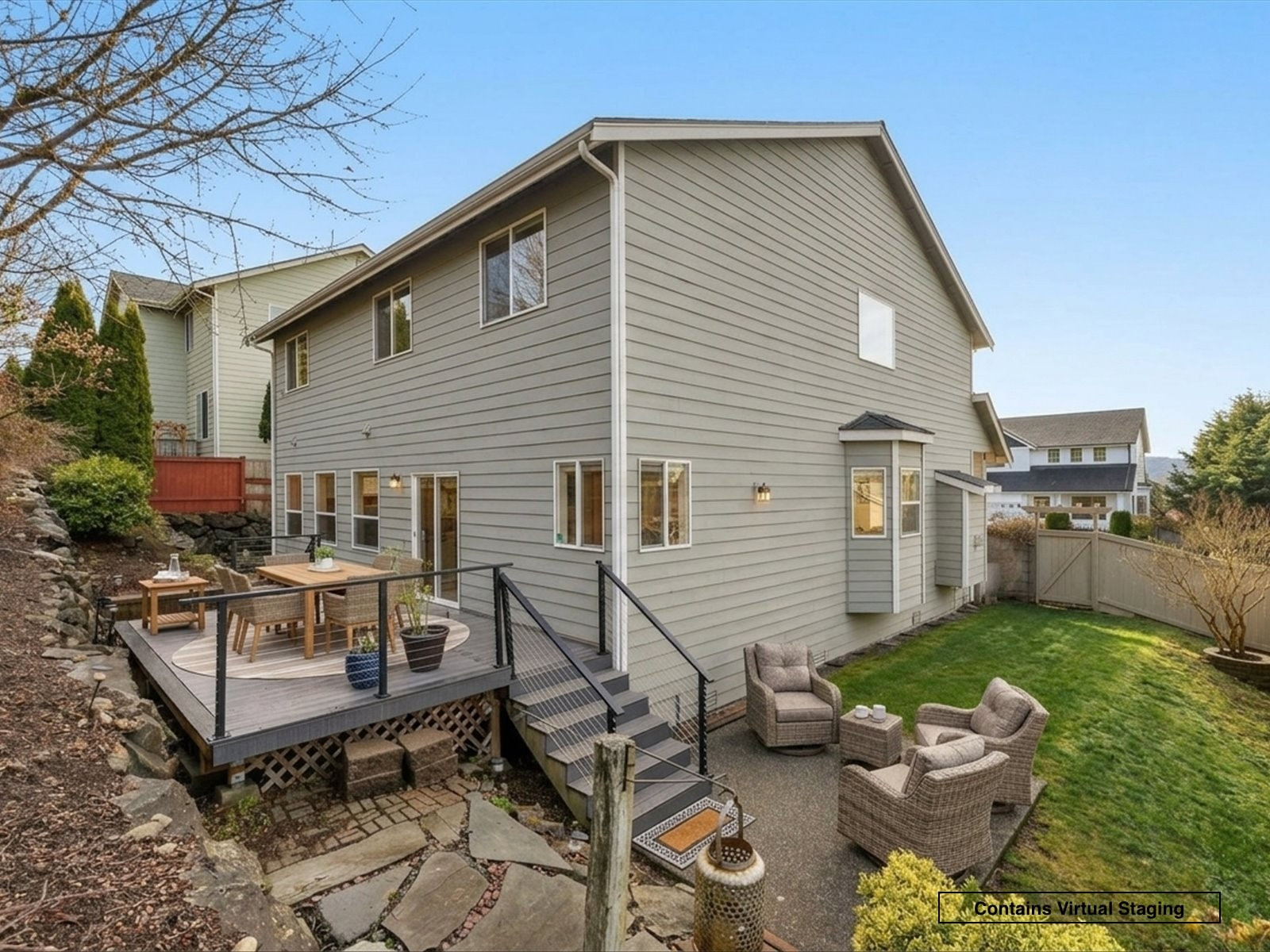 (503) 893-8874**Spacious Living & Thoughtfully Designed Yard Near Downtown Snohomish** Just minutes from historic downtown Snohomish, this light-filled 4-bedroom, 2.5-bath home features soaring ceilings, abundant natural light, and a flexible layout with multiple living spaces ideal for everyday living and entertaining. The main living area showcases vaulted ceilings, elevated windows, and a cozy fireplace that anchors the room. The open layout flows into the kitchen and dining area, where an island with seating creates a natural gathering space and sliding doors lead to the backyard deck for easy indoor–outdoor living. Upstairs, the primary suite offers vaulted ceilings, a large arched window, and a five-piece bath with soaking tub and a custom walk-in closet with built-in storage. Outside, thoughtfully designed spaces include a Trex deck, seating areas, and garden beds. A blooming cherry tree adds spring color, while newly planted Portuguese laurels will grow to enhance privacy over time. Additional plantings include hydrangeas, roses, fruit trees, and maple trees. Highlights include central A/C, a newer roof, two fireplaces, and an oversized two-car garage with extra storage or workshop space. Located near shops, restaurants, parks, and the scenic Snohomish riverfront, this home offers a comfortable blend of character, space, and convenience—best appreciated in person.