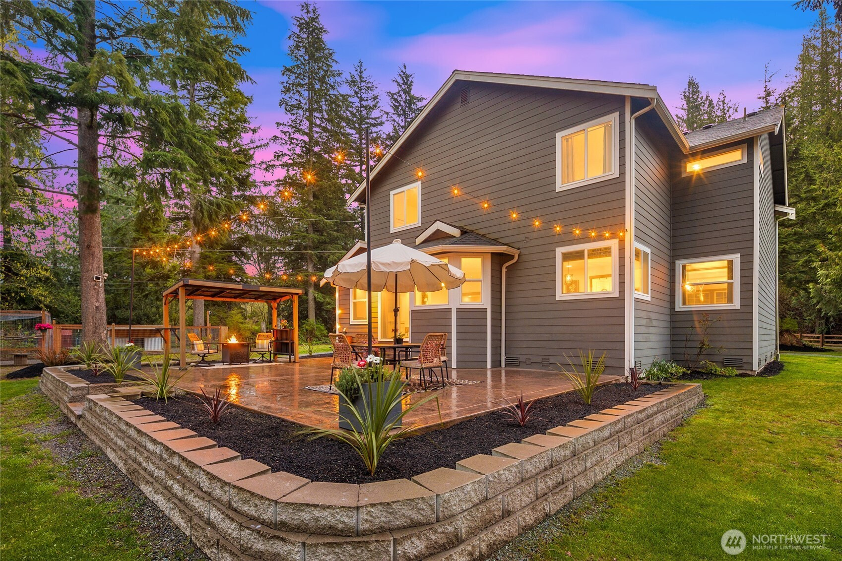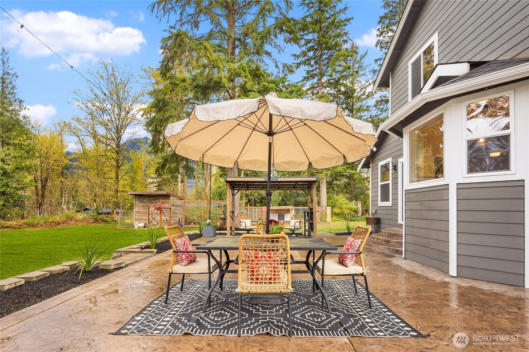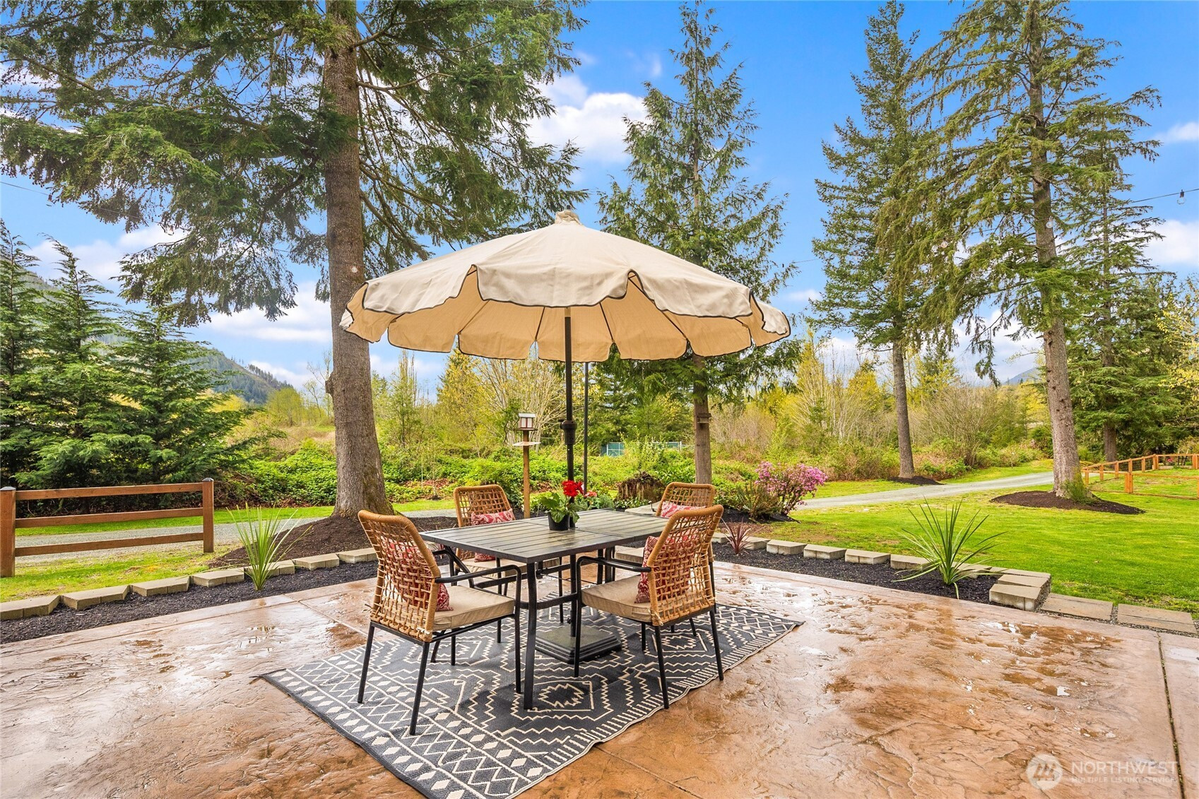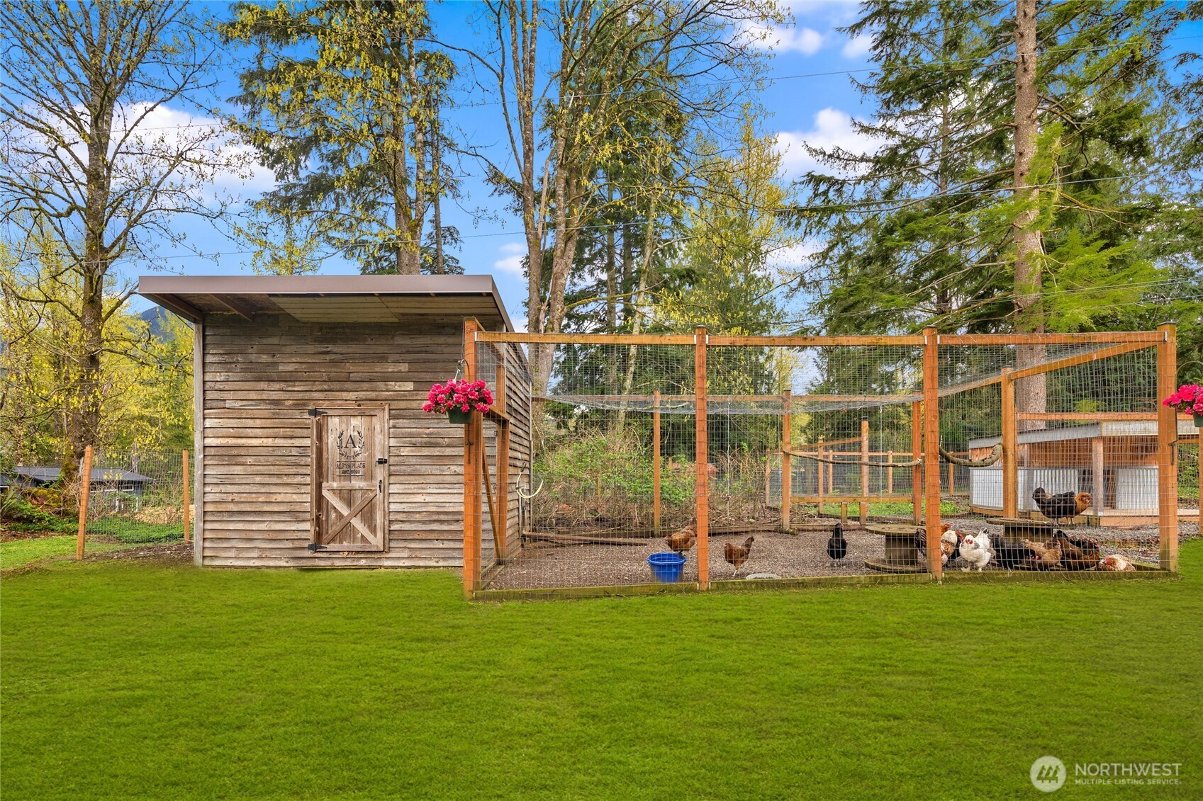 Surrounded by breathtaking mountain views and set on 4.7 impeccably landscaped acres in Gold Bar, this exceptional 4-bedroom, 3-bath home offers refined Northwest living with a versatile main floor office featuring a closet for possible guest space or 5th bedroom. The beautifully appointed open-concept kitchen flows into the main living area and features dual ovens, including one built into the oversized island, making it ideal for everyday living and entertaining. A propane fireplace adds warmth and ambiance. The spacious primary suite is a true escape with French doors, vaulted ceilings, and a spa-inspired bath with a jetted soaking tub and tiled shower. Outdoors, enjoy a stamped concrete patio surrounded by lush landscaping, a fully fenced garden with greenhouse and plumbed water, private creekside access, and a fire pit perfect for summer nights. Additional features include a custom chicken coop, a powered dog run with a heated doghouse, a 3-car garage with EV charger, an RV pad with 50-amp power, water, and a separate meter for future shop or guest quarters, a tankless water heater, new A/C heat pump installed in 2022, and a generator capable of powering the entire home. Pre-inspected with all items addressed. Minutes to skiing, hiking, fishing, rafting, and more.