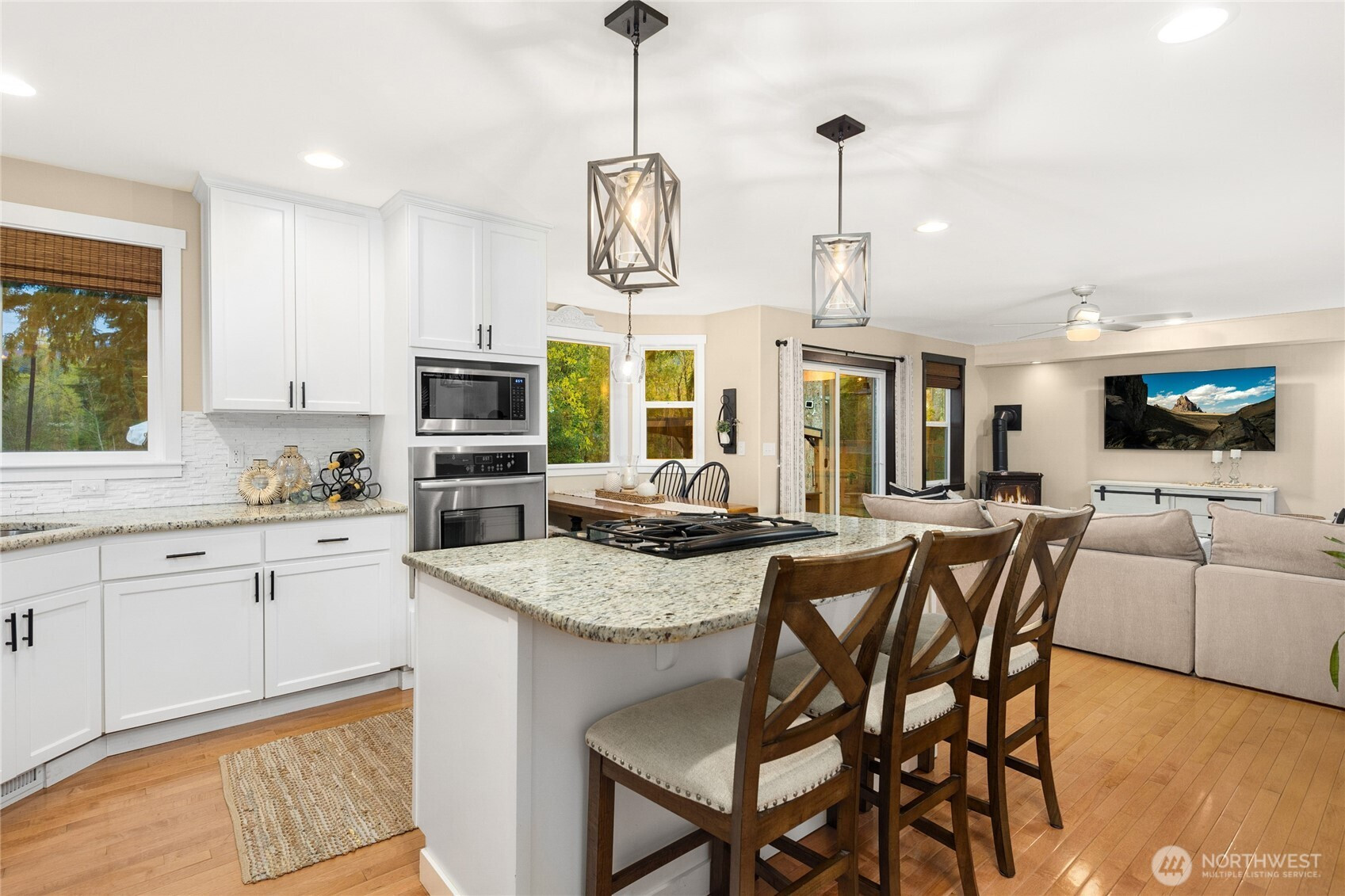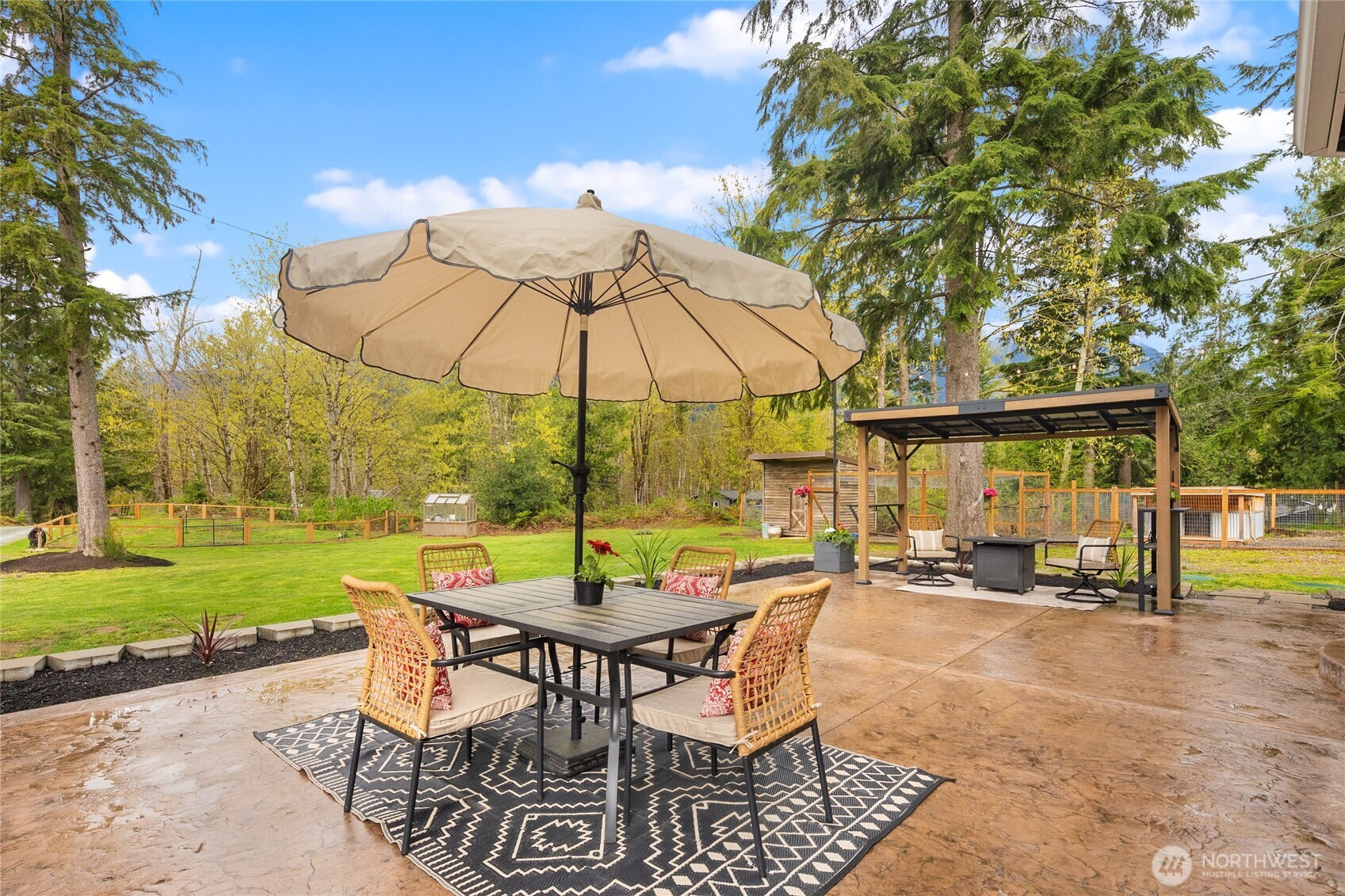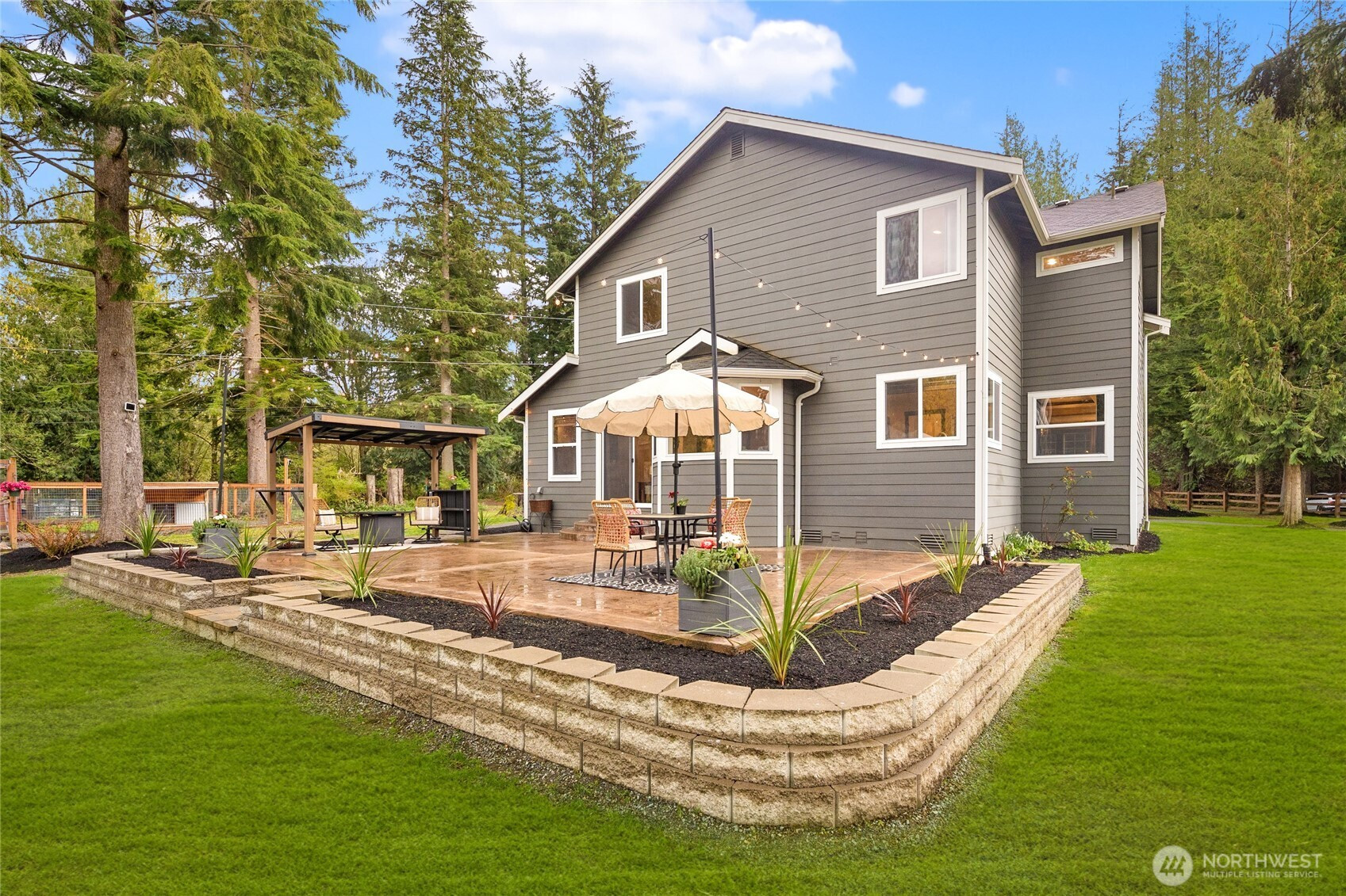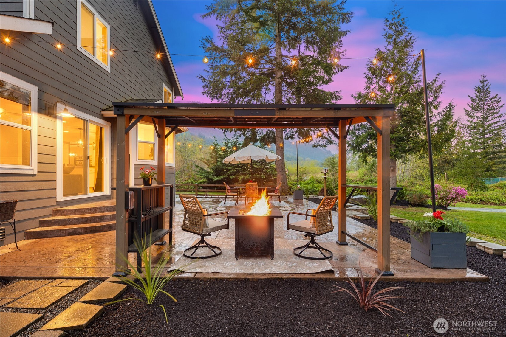 Surrounded by breathtaking mountain views and set on 4.7 impeccably landscaped acres in Gold Bar, this exceptional 4-bedroom, 3-bath home offers refined Northwest living with a versatile main floor office featuring a closet for possible guest space or 5th bedroom. The beautifully appointed open-concept kitchen flows into the main living area and features dual ovens, including one built into the oversized island, making it ideal for everyday living and entertaining. A propane fireplace adds warmth and ambiance. The spacious primary suite is a true escape with French doors, vaulted ceilings, and a spa-inspired bath with a jetted soaking tub and tiled shower. Outdoors, enjoy a stamped concrete patio surrounded by lush landscaping, a fully fenced garden with greenhouse and plumbed water, private creekside access, and a fire pit perfect for summer nights. Additional features include a custom chicken coop, a powered dog run with a heated doghouse, a 3-car garage with EV charger, an RV pad with 50-amp power, water, and a separate meter for future shop or guest quarters, a tankless water heater, new A/C heat pump installed in 2022, and a generator capable of powering the entire home. Pre-inspected with all items addressed. Minutes to skiing, hiking, fishing, rafting, and more.