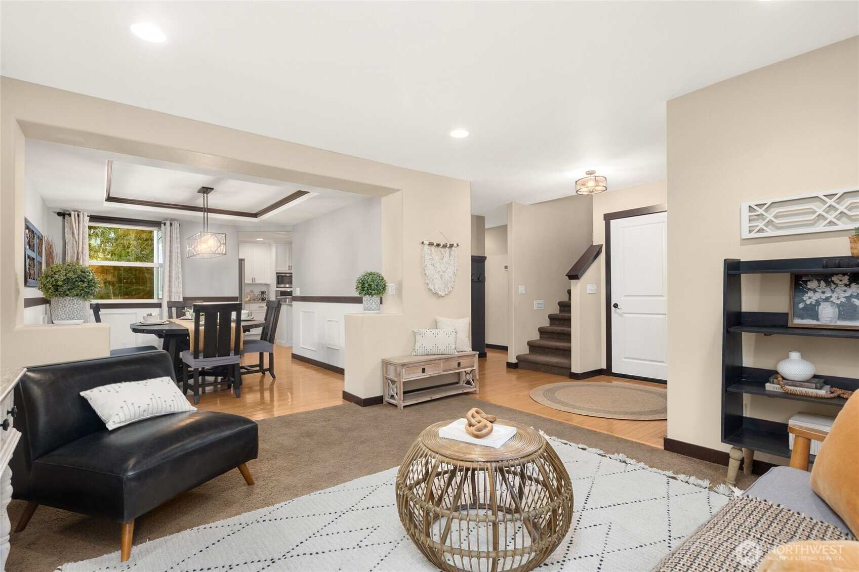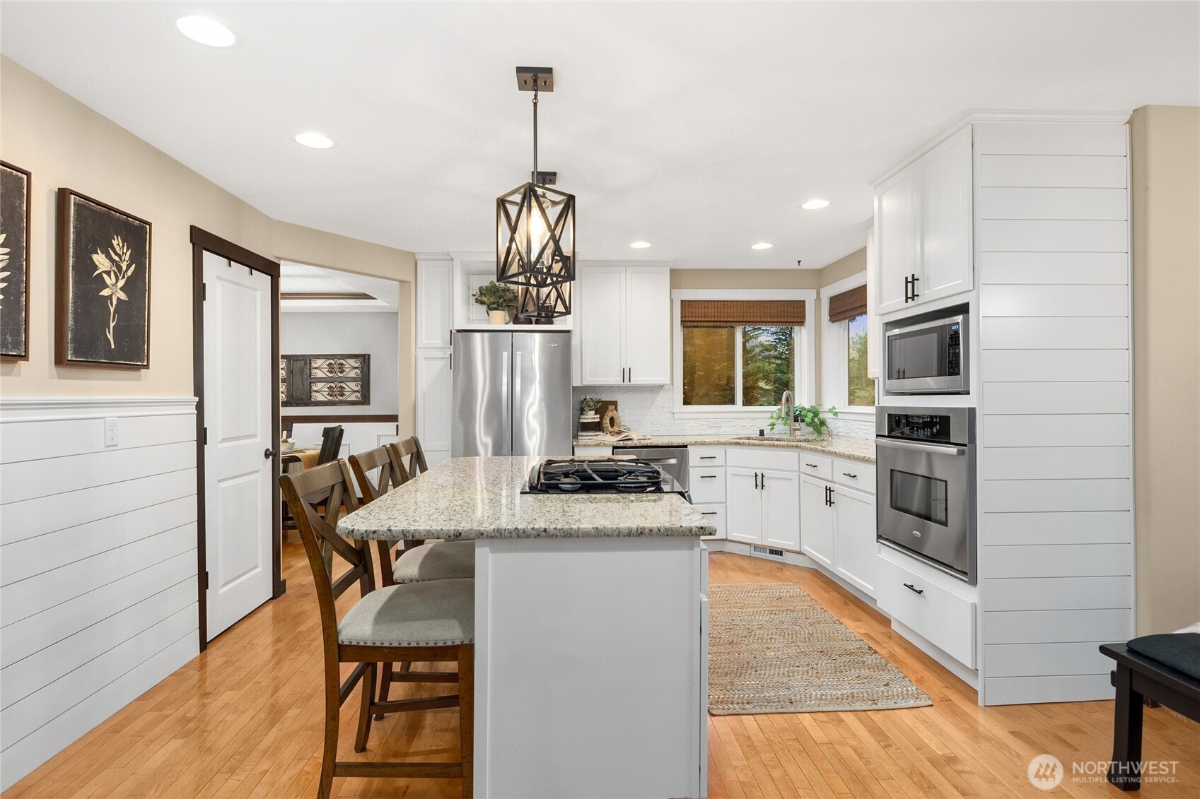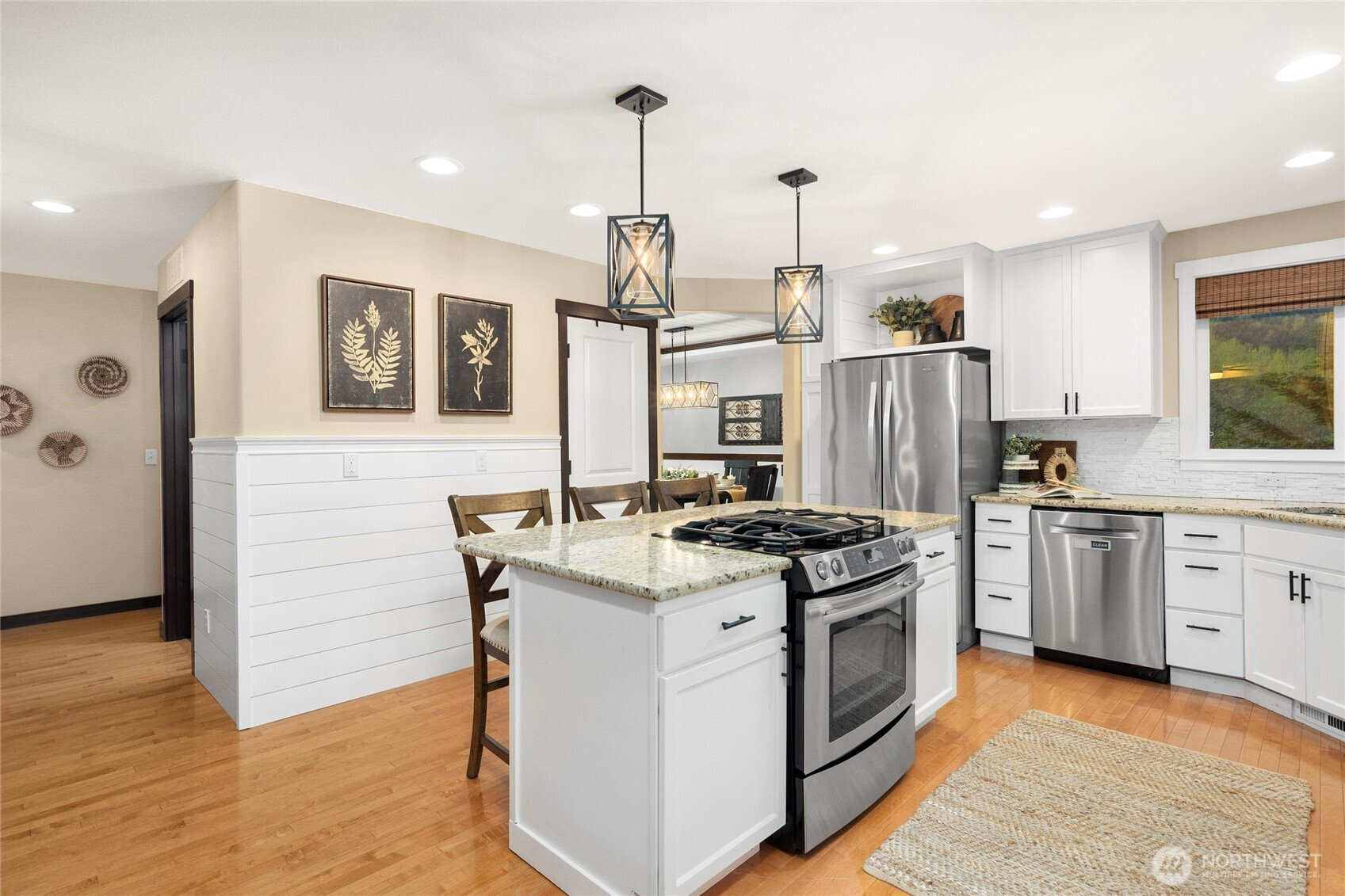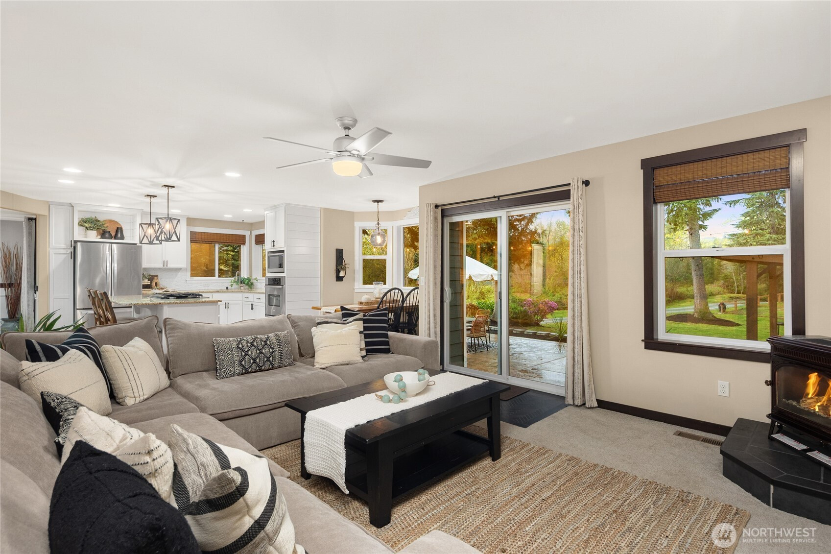 Surrounded by breathtaking mountain views and set on 4.7 impeccably landscaped acres in Gold Bar, this exceptional 4-bedroom, 3-bath home offers refined Northwest living with a versatile main floor office featuring a closet for possible guest space or 5th bedroom. The beautifully appointed open-concept kitchen flows into the main living area and features dual ovens, including one built into the oversized island, making it ideal for everyday living and entertaining. A propane fireplace adds warmth and ambiance. The spacious primary suite is a true escape with French doors, vaulted ceilings, and a spa-inspired bath with a jetted soaking tub and tiled shower. Outdoors, enjoy a stamped concrete patio surrounded by lush landscaping, a fully fenced garden with greenhouse and plumbed water, private creekside access, and a fire pit perfect for summer nights. Additional features include a custom chicken coop, a powered dog run with a heated doghouse, a 3-car garage with EV charger, an RV pad with 50-amp power, water, and a separate meter for future shop or guest quarters, a tankless water heater, new A/C heat pump installed in 2022, and a generator capable of powering the entire home. Pre-inspected with all items addressed. Minutes to skiing, hiking, fishing, rafting, and more.