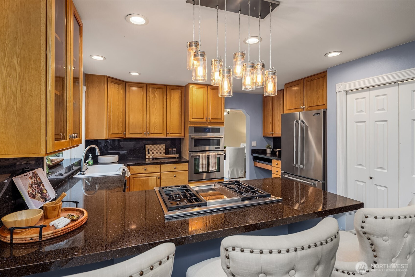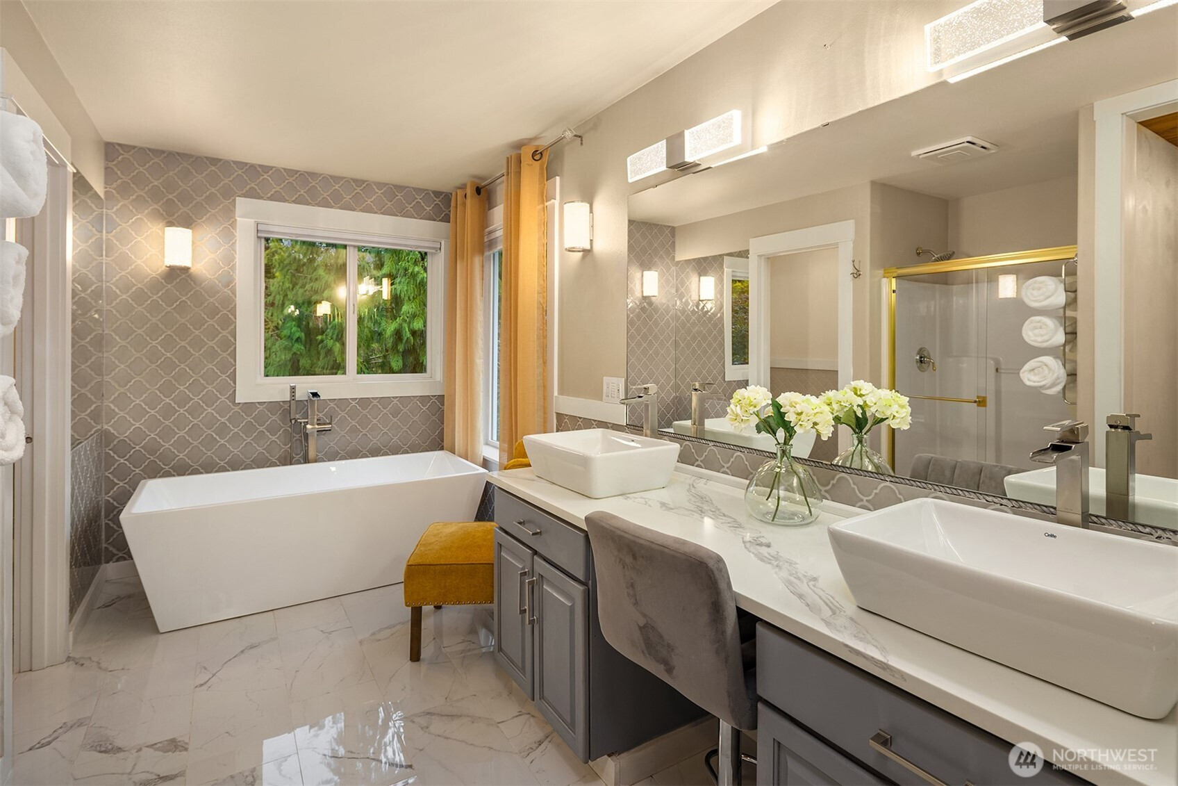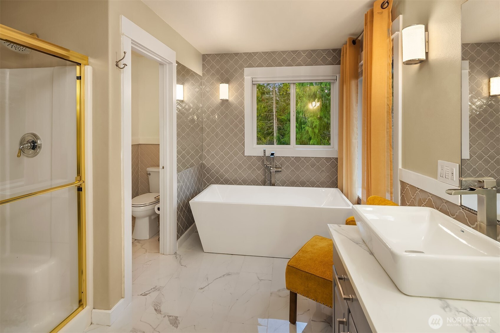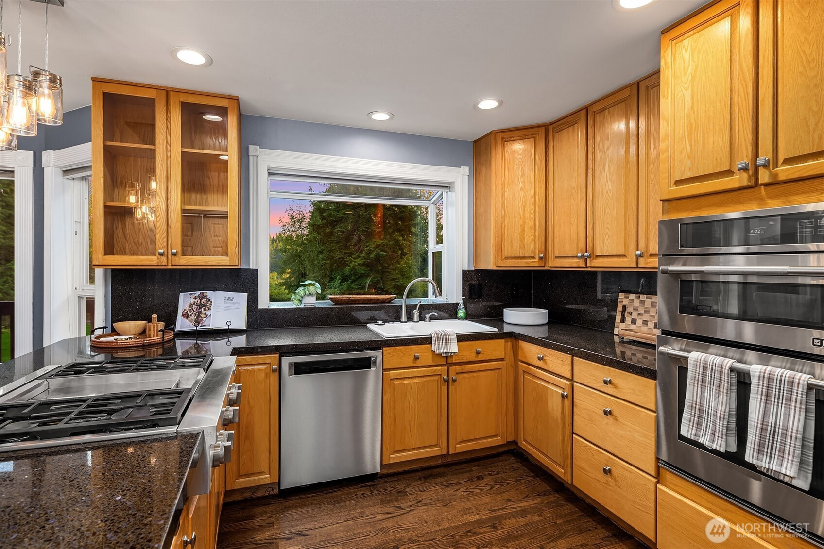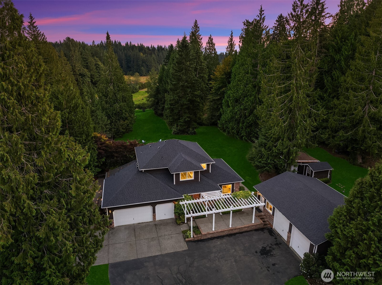 Acreage, privacy, and a detached shop—this Snohomish estate has it all. Set on over 2 acres, the home features new carpet, fresh paint, and fully renovated baths, including a spa-inspired primary suite. The chef’s kitchen offers Jenn-Air appliances, a gas cooktop, and a custom pantry, while a brand-new roof and exterior paint provide peace of mind. Outdoor living impresses with a custom kitchen, fire bar, expansive patio, curated gardens, fruit trees, fire pit, and treehouse. A 30x40 detached shop and 3-car garage provide abundant storage plus a versatile bonus space with potential ADU use. Minutes from lakes, golf, and schools, with convenient access to Highway 2, 522, and 9.