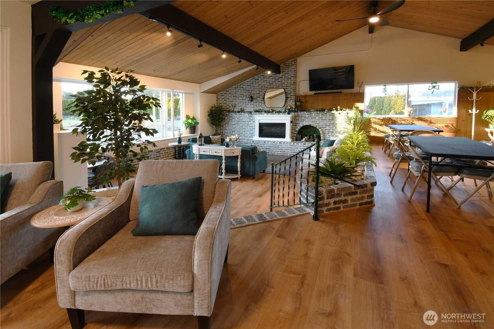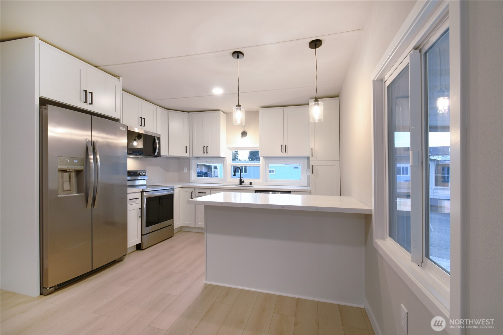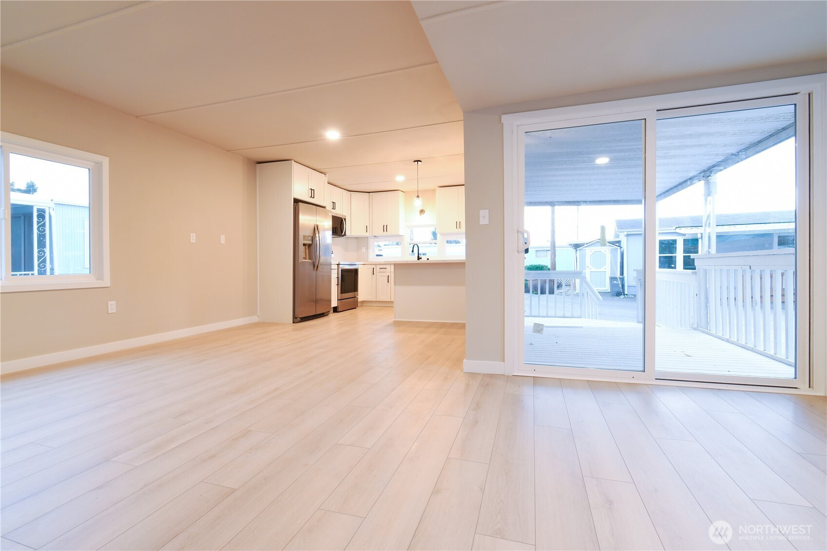 Welcome to easy, stylish living in this beautifully remodeled manufactured home nestled within a secure, gated 55+ community. Thoughtfully redesigned with modern finishes throughout, the open-concept layout creates a bright, airy flow that feels both spacious and inviting. Lots of windows bring in abundant natural light, highlighting the fresh interior paint and clean contemporary aesthetic. The stunning kitchen is a true centerpiece, featuring sleek cabinetry, updated surfaces, and brand-new stainless steel appliances that make everyday cooking feel elevated. The designer bathroom offers refined fixtures and modern detailing, while fresh exterior paint enhances curb appeal. Convenient on-site parking. Residents enjoy access to an impressive, newly renovated clubhouse complete with a full kitchen, fitness center, and game room - perfect for social gatherings and active lifestyles. Beautifully maintained park-like open spaces provide relaxing spots to walk your dog or connect with neighbors. Ideally located near shopping, dining, and with quick access to I-5, this home combines contemporary comfort with convenience in a welcoming, well-maintained community.