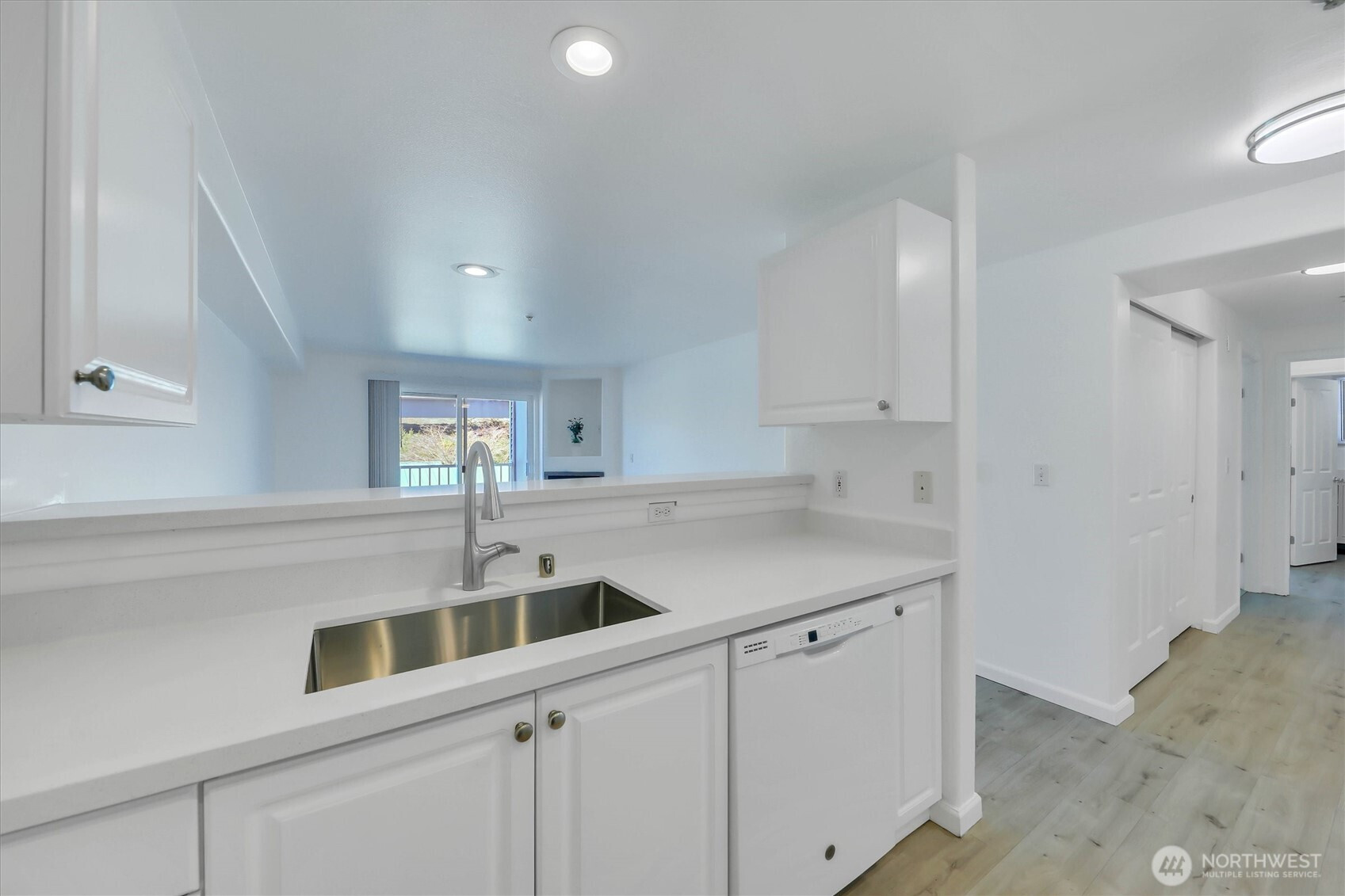 Beautifully updated 2 bedroom, 2 bathroom condo in the heart of Monroe! Quiet corner unit literally shares only one wall with a neighbor, and that wall is just the two bathrooms and the laundry room. This turnkey 885sf home offers comfort, style, and is light and bright and cheery. The open living area has room for living/dining and features a gas fireplace (HOA pays for gas) and a balcony with your own secure storage closet. Recent updates include luxury vinyl plank flooring throughout the main living areas, newer carpet in the bedrooms & fresh interior paint. Kitchen offers new quartz countertops, stylish breakfast bar, plenty of cabinet space, and new and newer appliances. Both bedrooms are generously sized, including a primary suite with an ensuite bathroom. Convenient laundry room offers full sized washer and dryer and room for storage. Tasteful bathrooms have updated vanities with quartz countertops. The secure lobby entry adds comfort and privacy. Parking is a breeze with a private one car garage and an additional uncovered parking spot (and plenty of visitor spots too!). HOA dues include water, sewer, garbage, gas, grounds maintenance, etc. With no rental cap, this property is an excellent opportunity for investors, first-time buyers, or those seeking low-maintenance living. Conveniently located near parks (there is a public playground less than half a mile away), schools, shopping, dining, and easy highway access.